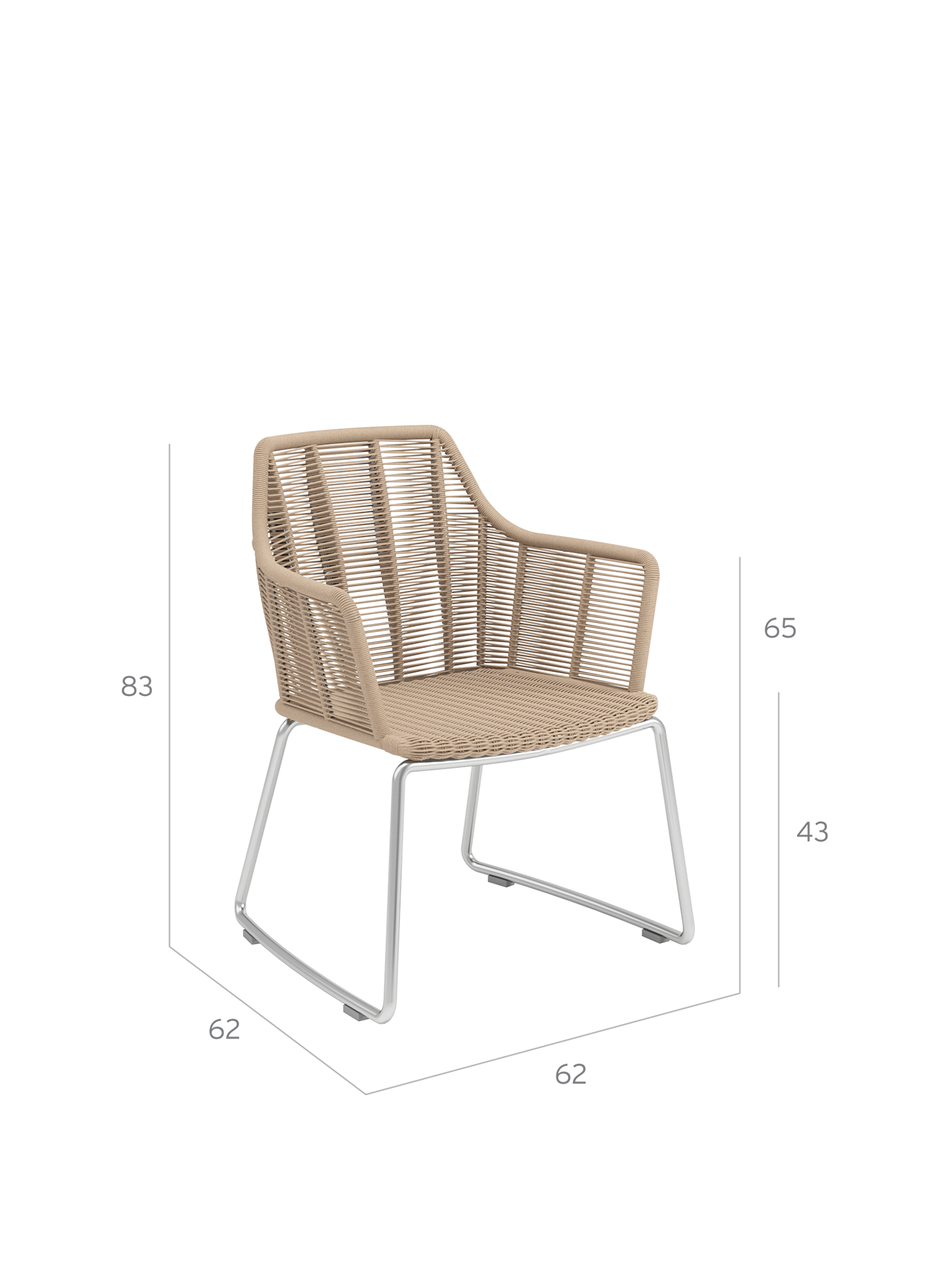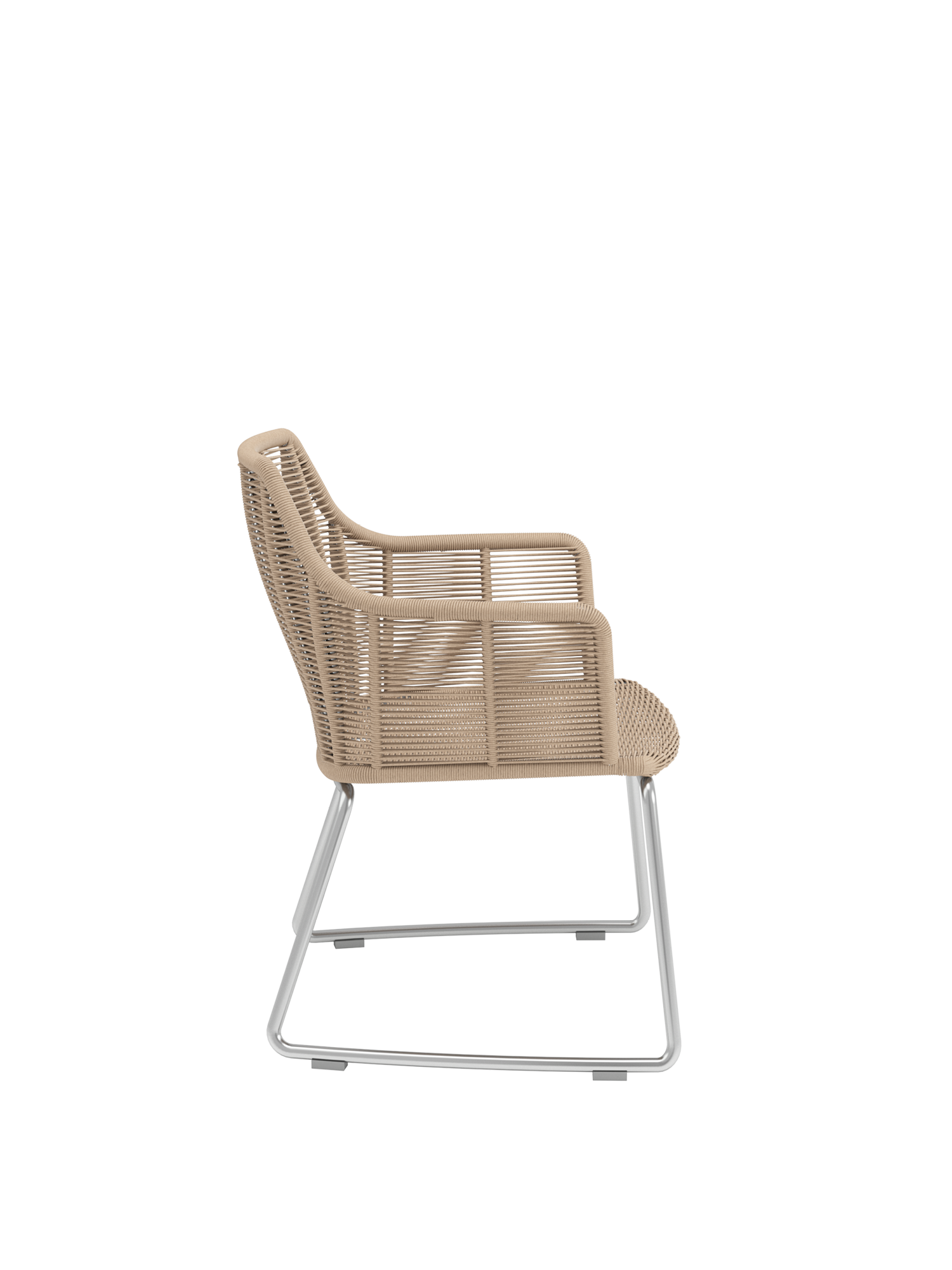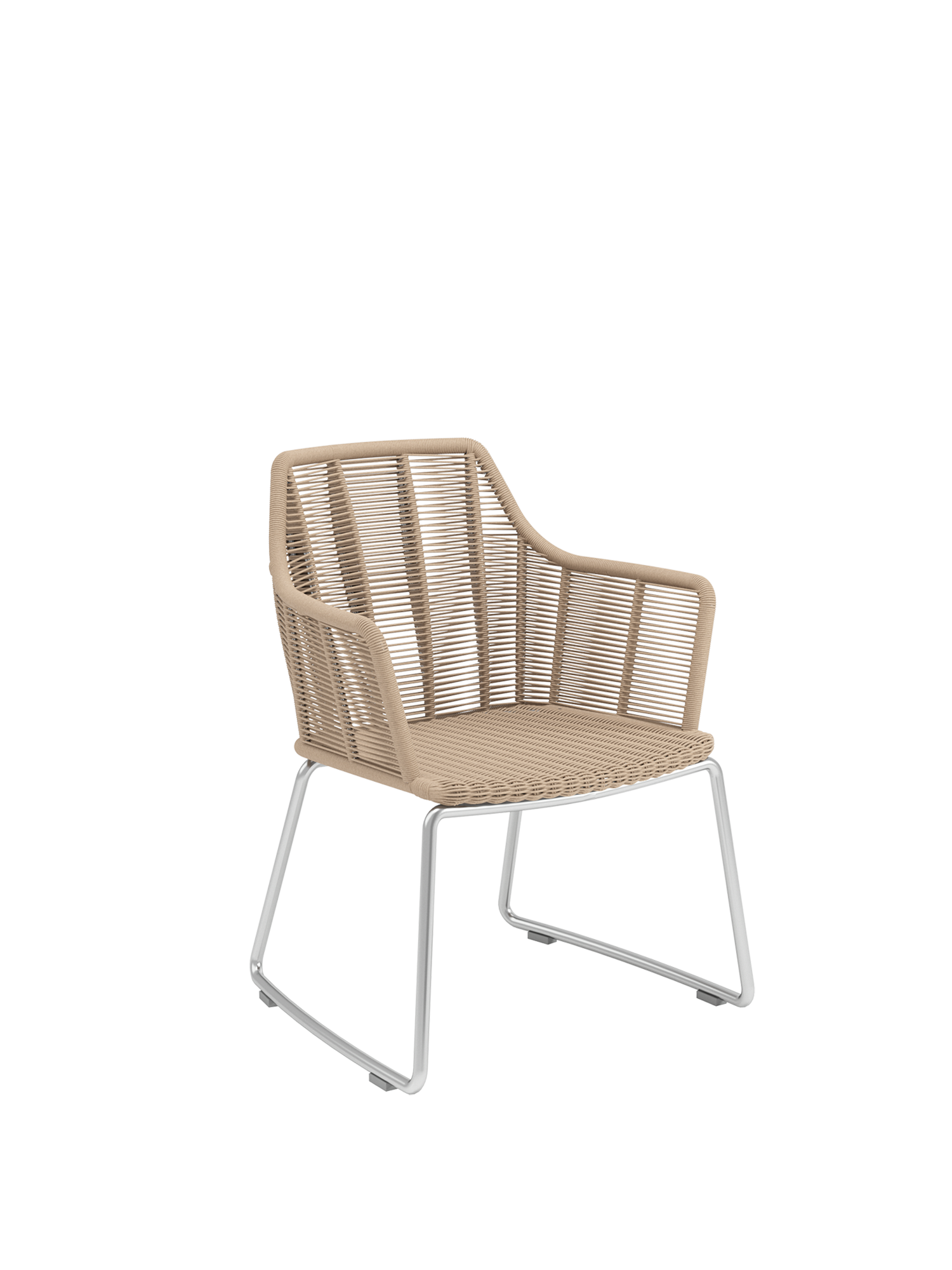 The flawlessly designed armchairs can be enjoyed in the garden and on the terrace all year round. They are made exclusively of weather-resistant and robust materials in unmistakable Garpa quality – particularly easy to clean brushed stainless steel, and polyethylene cord with an attractive natural appearance. Matching seat cushions are optionally available in various designs.