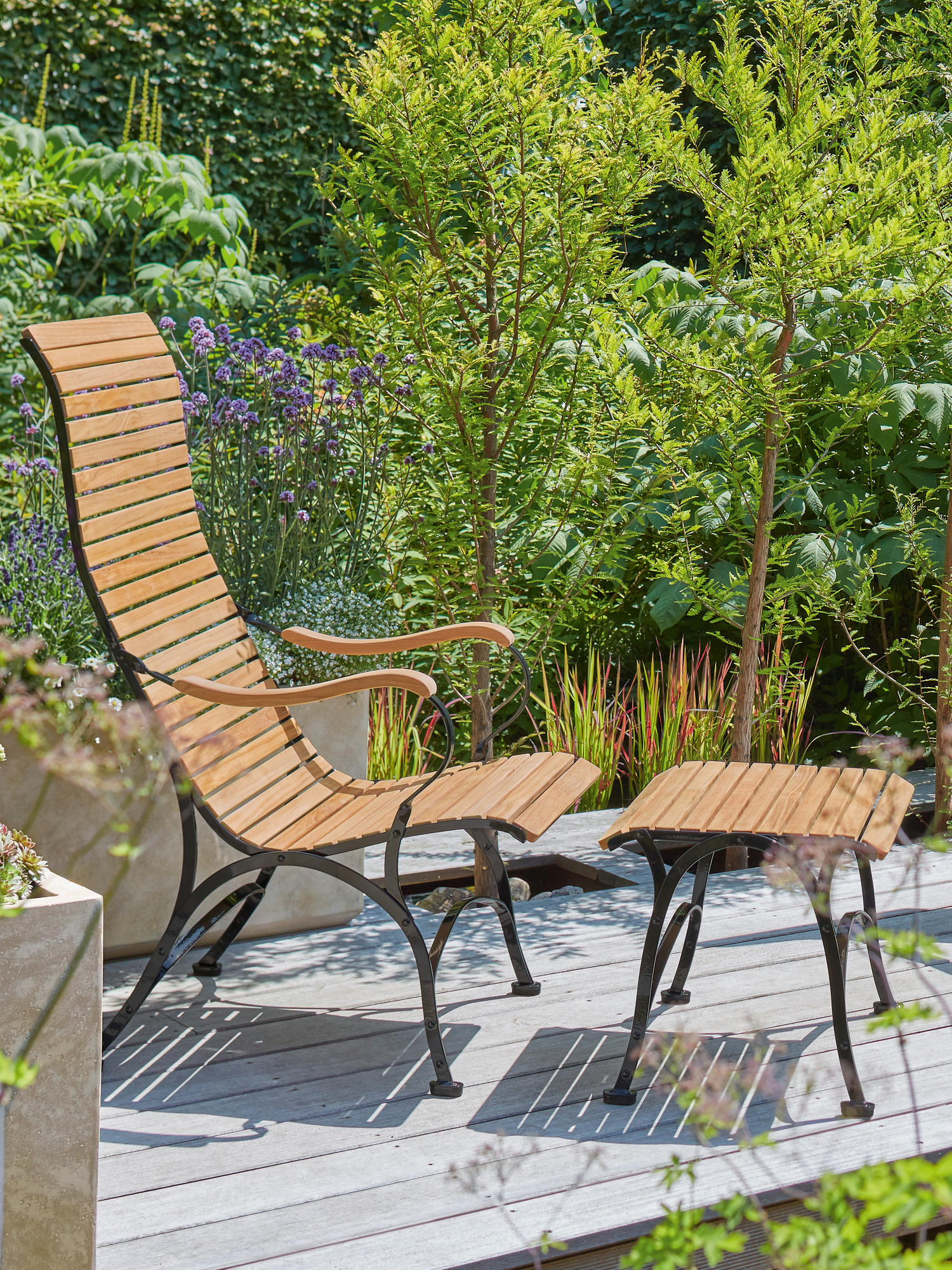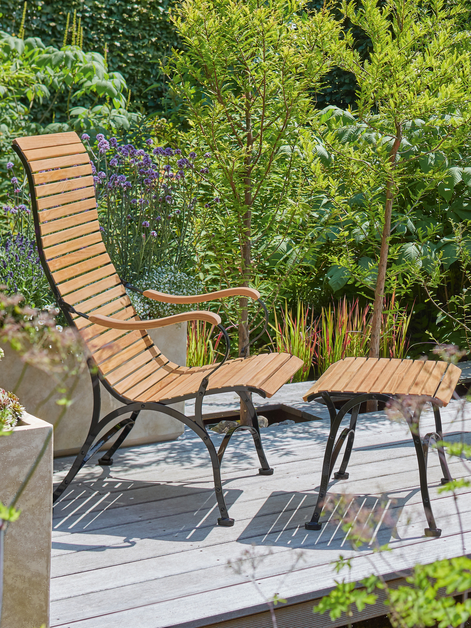 - ergonomically shaped seat made of plantation teak