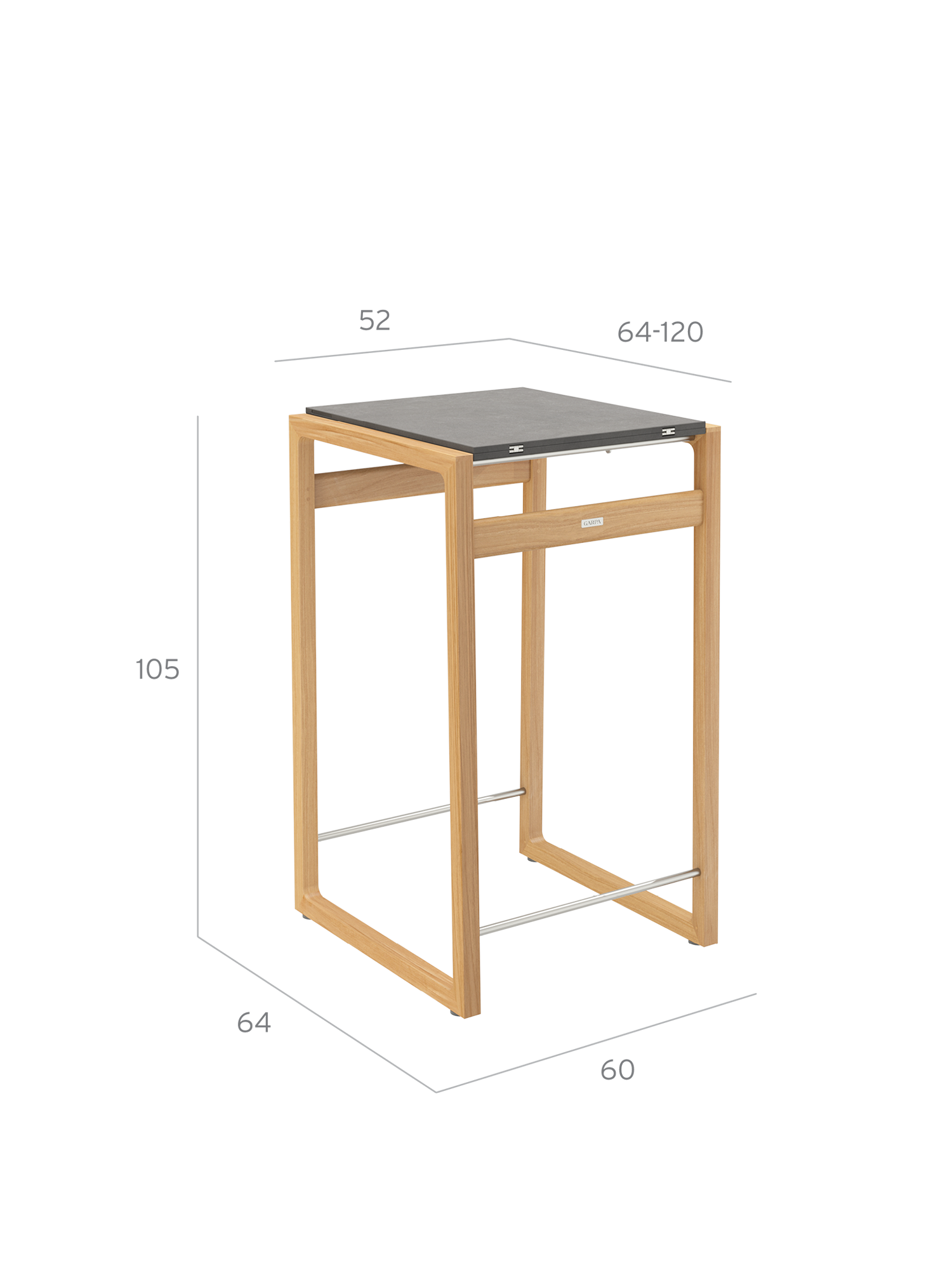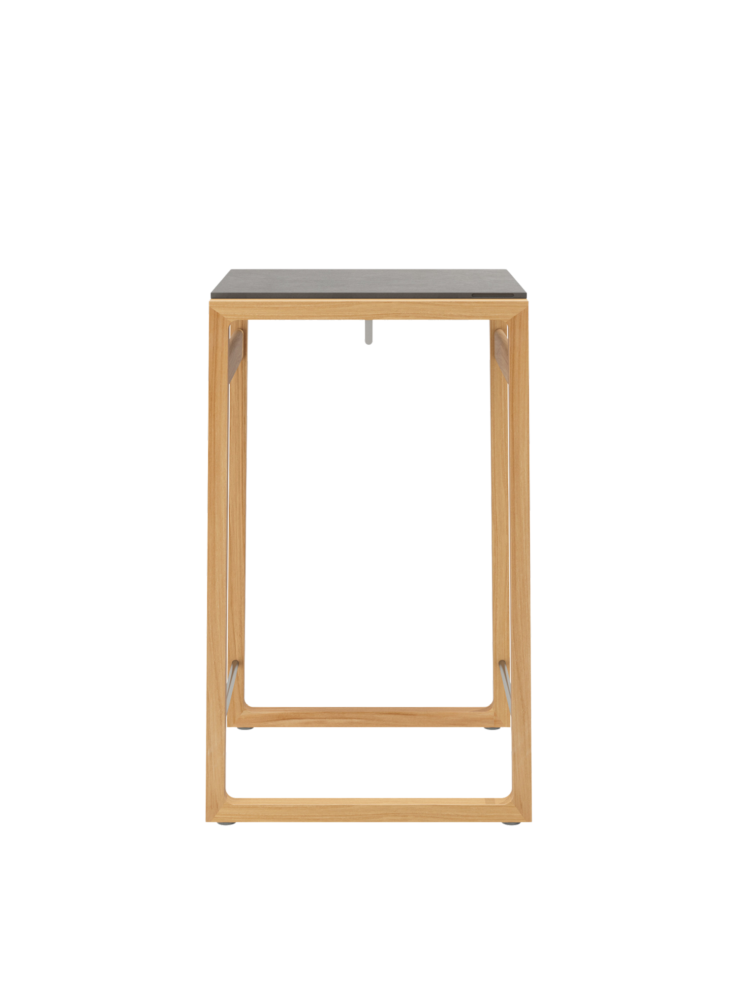 The frame made of high-quality teak harmonizes with the table top made of easy-care synthetic resin. The stainless steel struts provide comfortable foot support.
