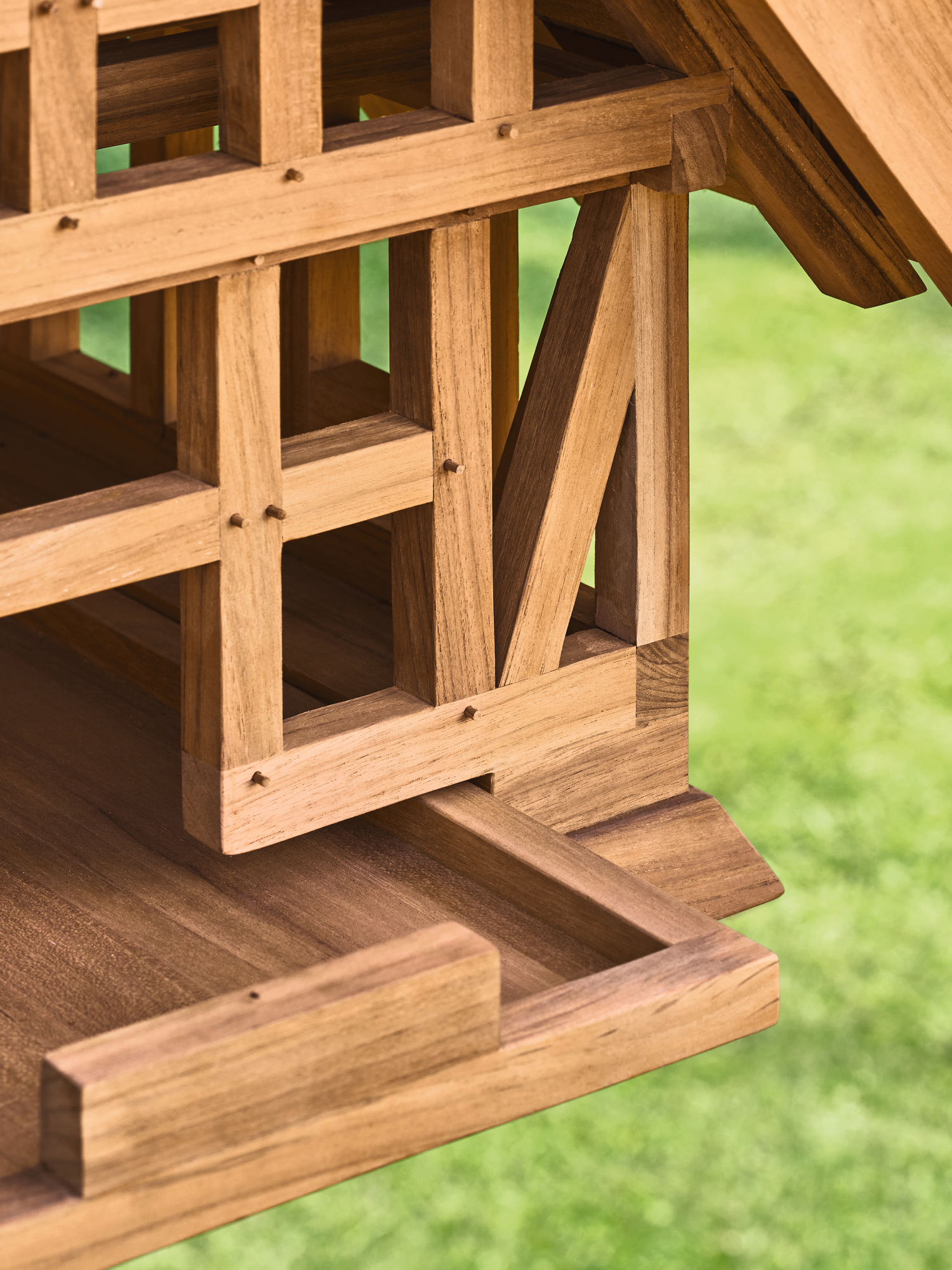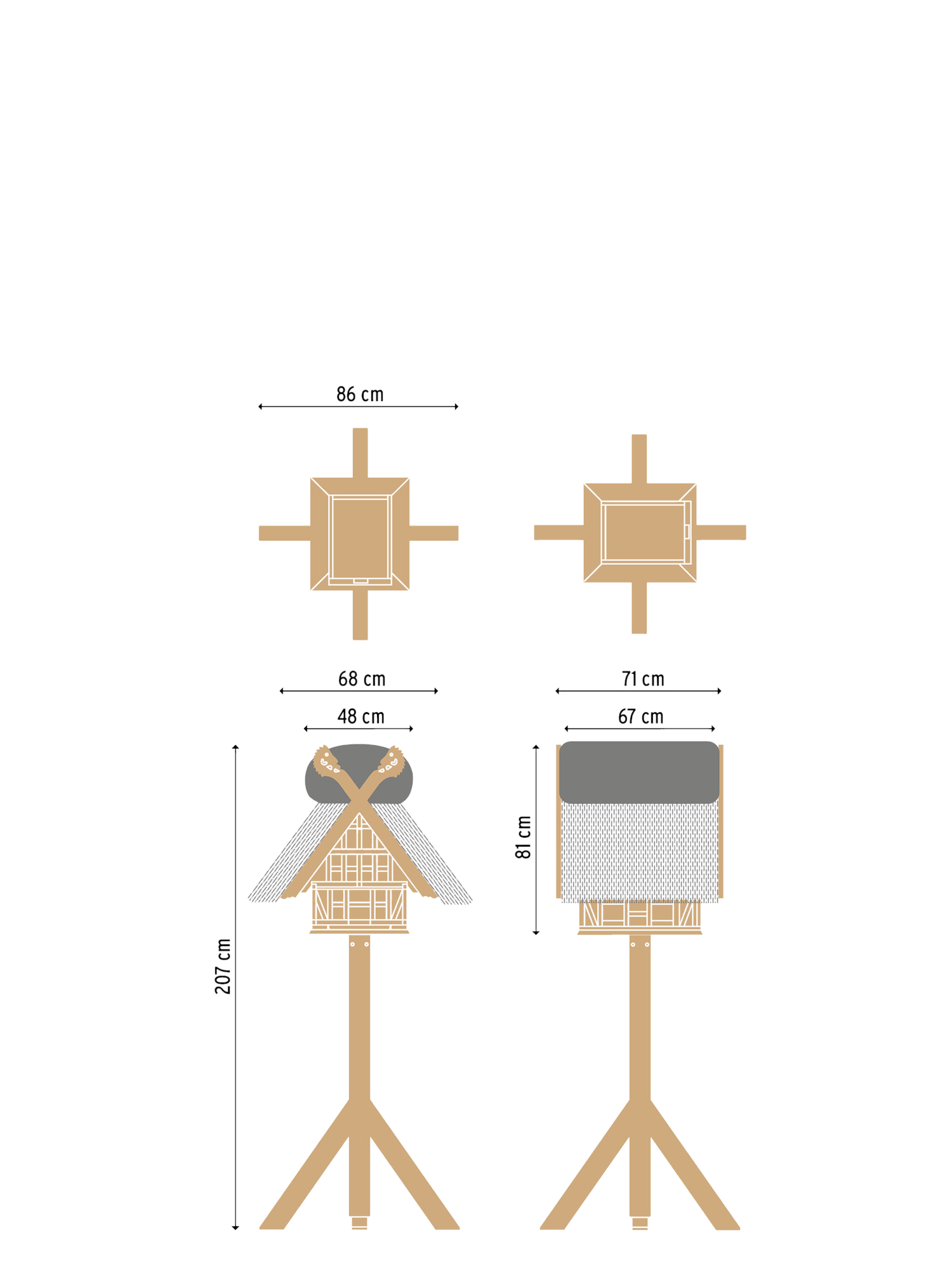 In locations exposed to the wind, the stately bird house can also be anchored to the ground with a ground spike, which you can find below under “Accessories”. Please note: The base develops a gray patina more quickly than the house, which is protected from the weather by the roof.