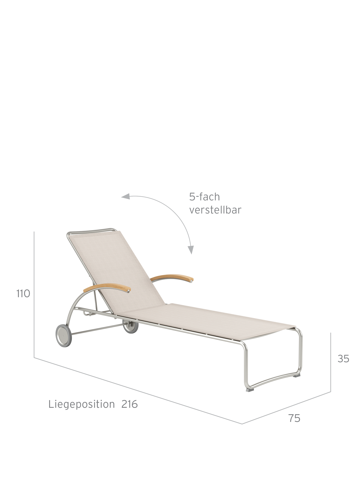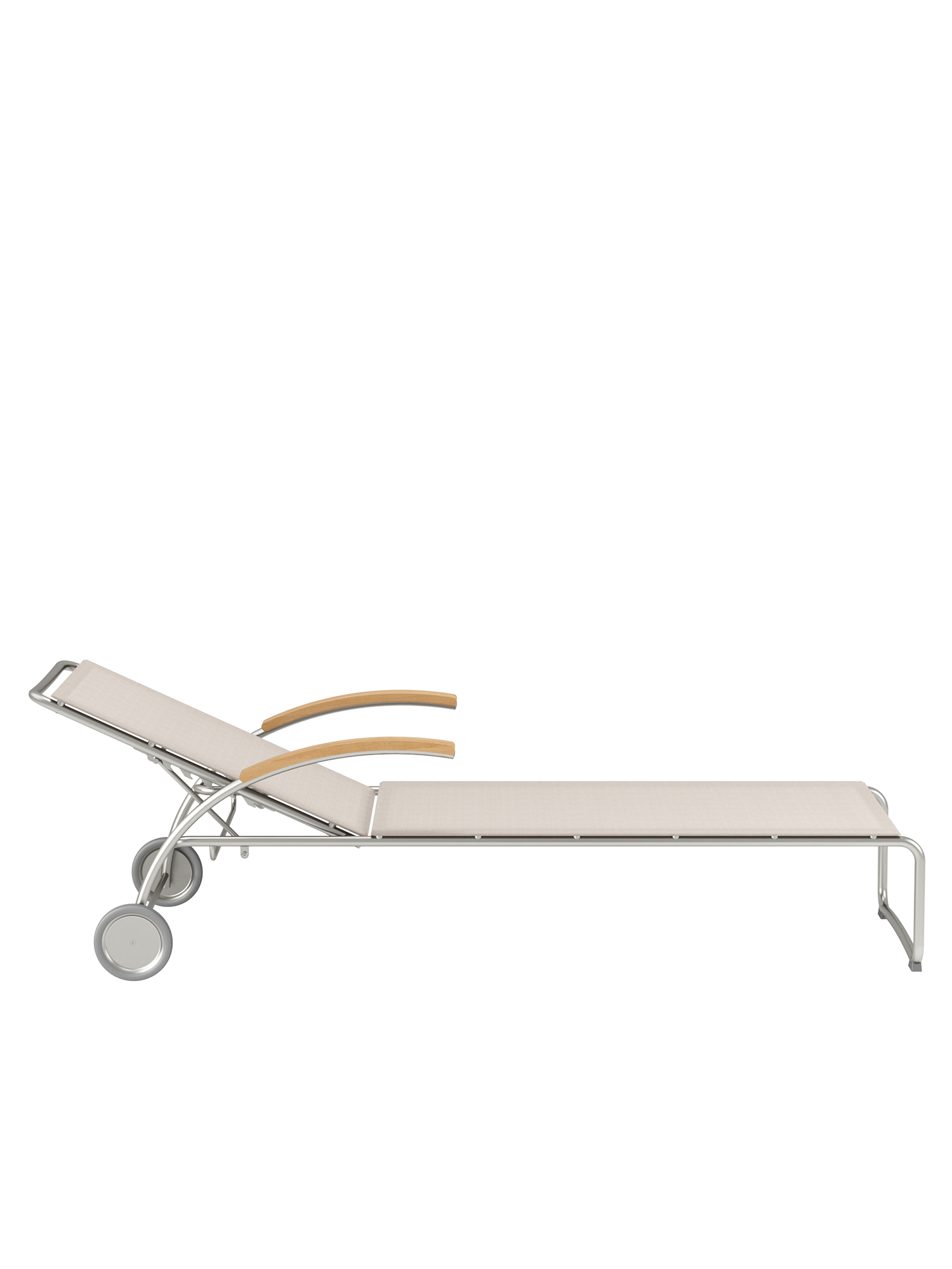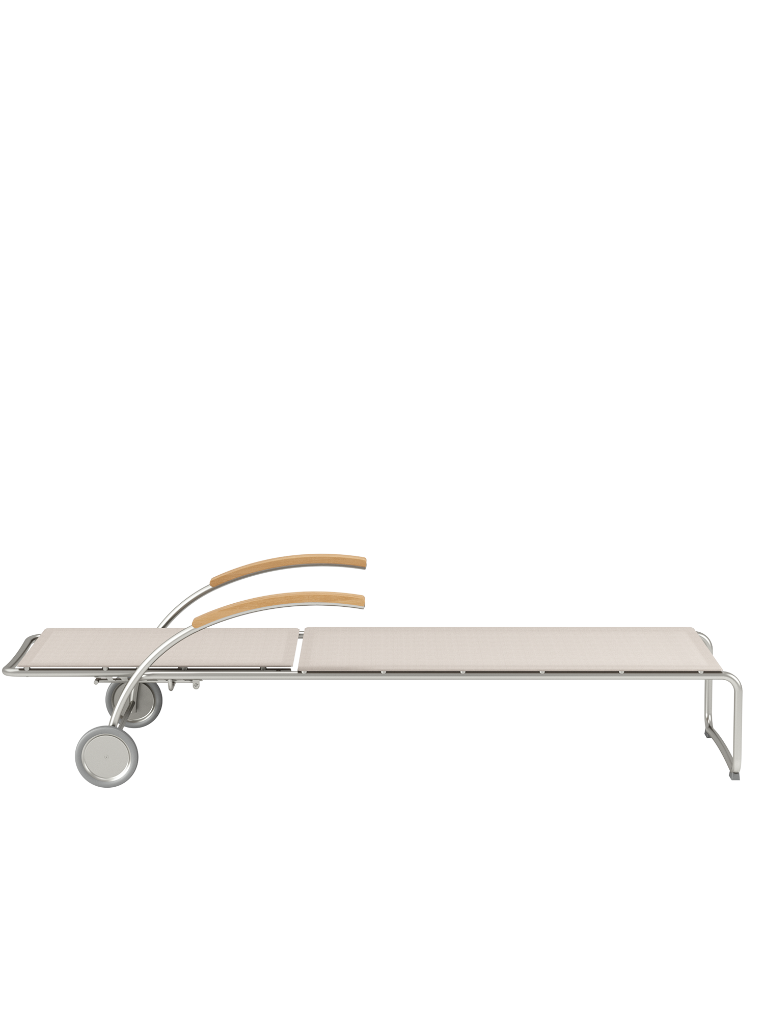 Elegant metal and high-quality polymer sling complement each other perfectly in the Bauhaus inspired lounge chair, and create its lightweight appearance. Thanks to its ergonomic adaptability, it is comfortable with or without upholstery. The fabric is distinguished by a pleasantly natural feel. Its natural colour tone, a mixture between soft brown and pale beige, contributes to the elegance of the furniture. The tubular frame made of stainless steel is a match for all weather.