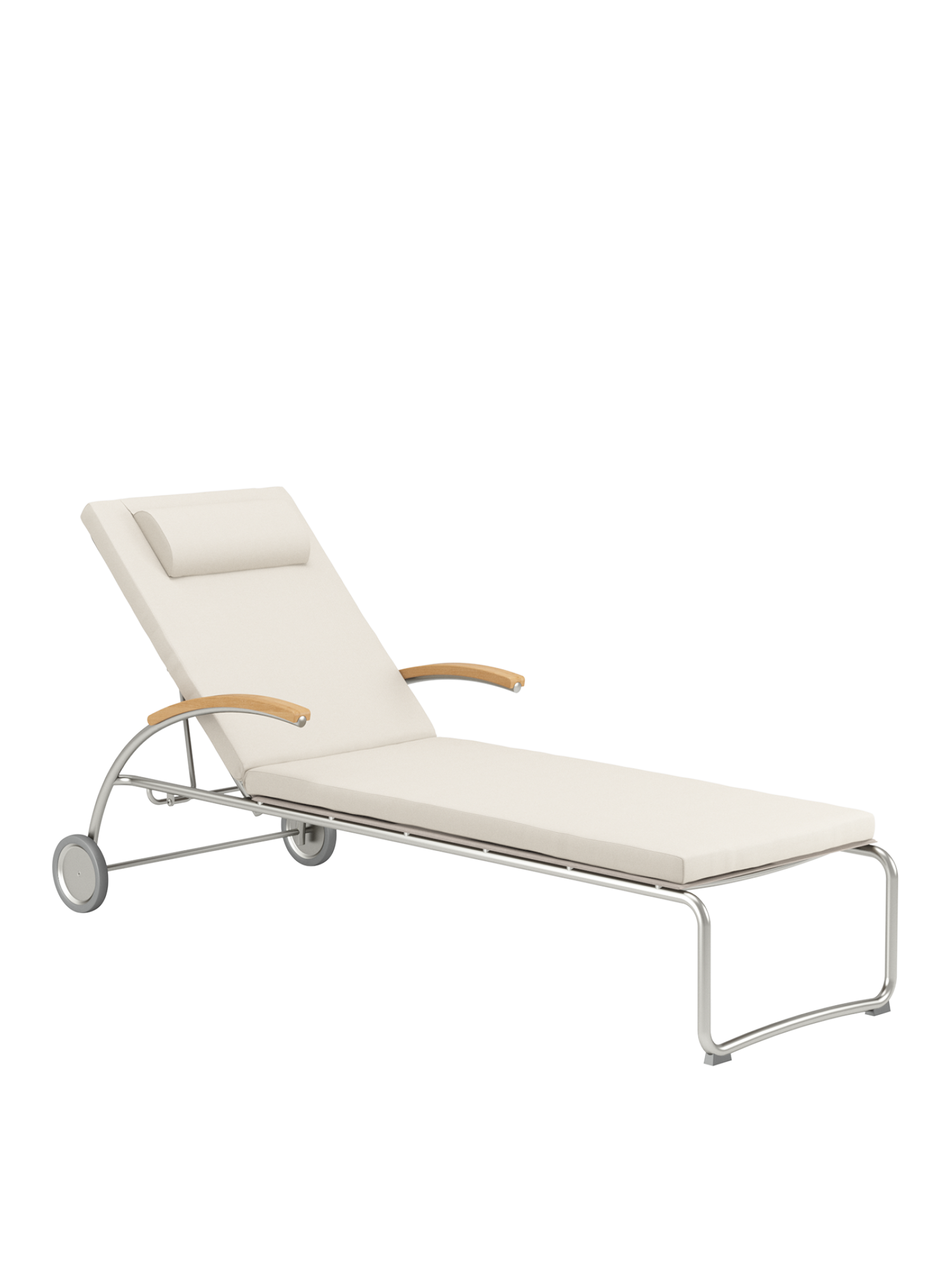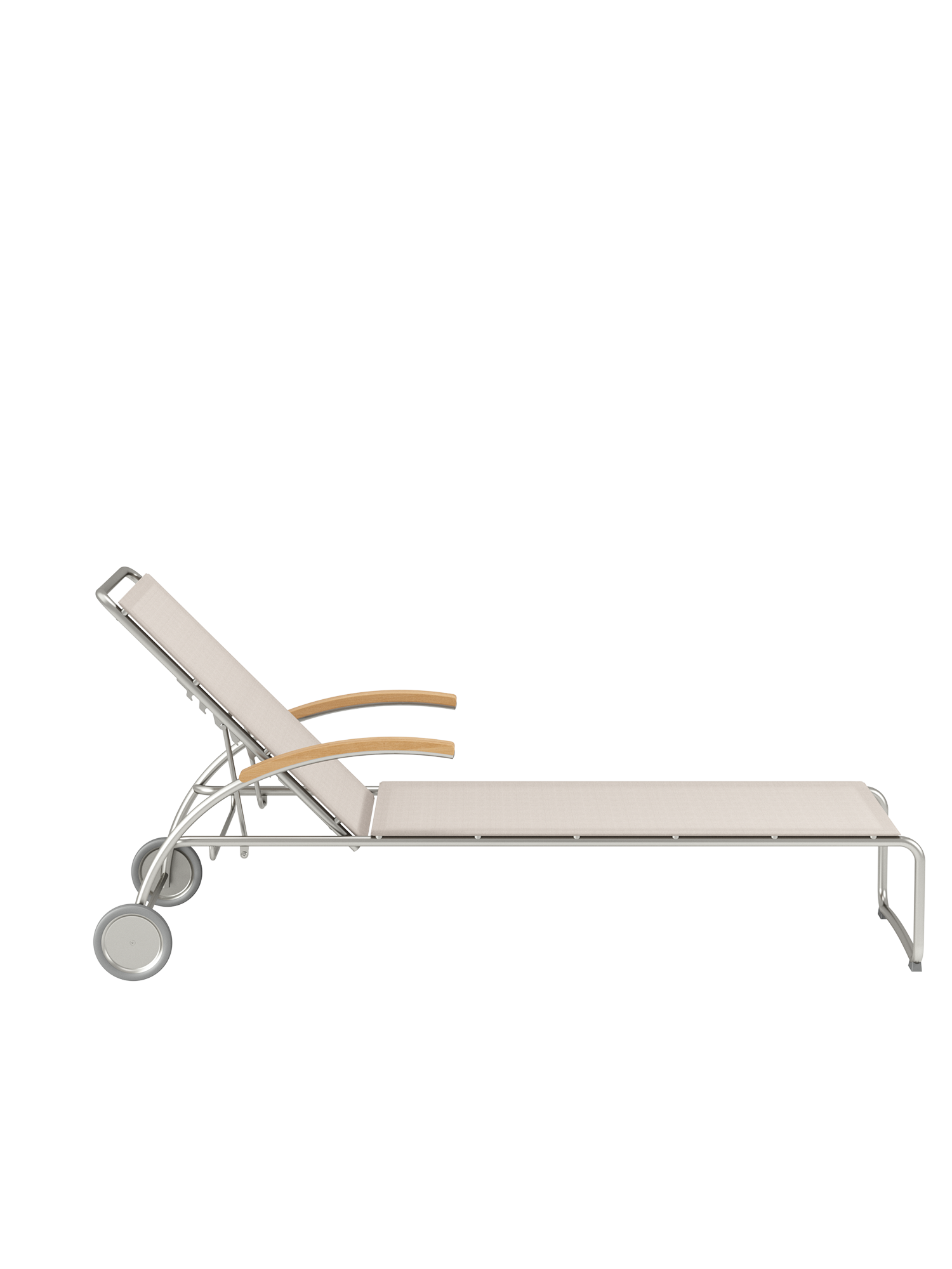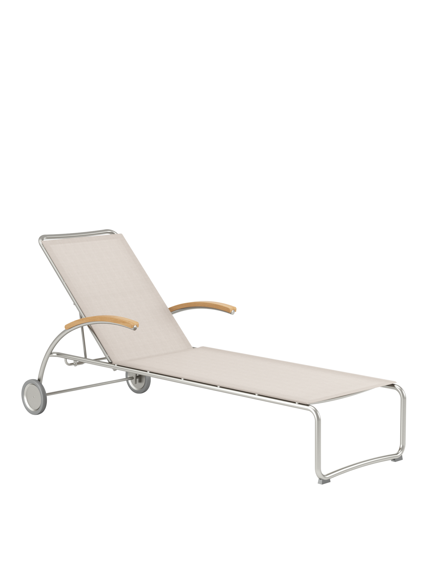 Elegant metal and high-quality polymer sling complement each other perfectly in the Bauhaus inspired lounge chair, and create its lightweight appearance. Thanks to its ergonomic adaptability, it is comfortable with or without upholstery. The fabric is distinguished by a pleasantly natural feel. Its natural colour tone, a mixture between soft brown and pale beige, contributes to the elegance of the furniture. The tubular frame made of stainless steel is a match for all weather.