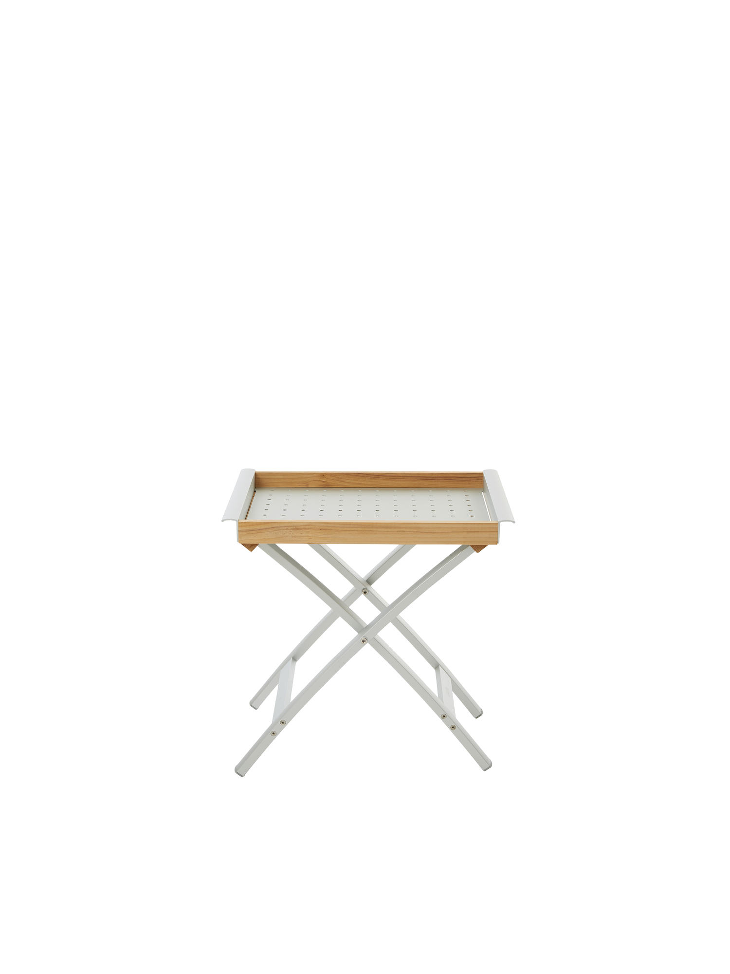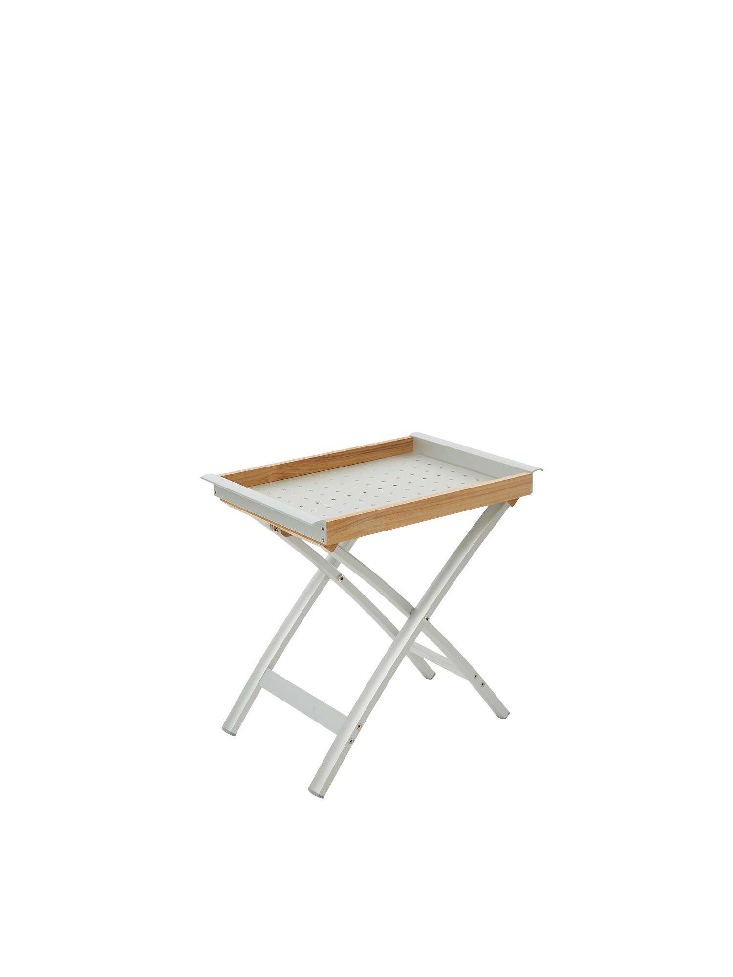 Uncomplicated and light: the foldable Butler's Tray of teak and aluminium matches perfectly our furniture series in aluminium. Quickly drawn up, it offers flexible service with its removable tray.