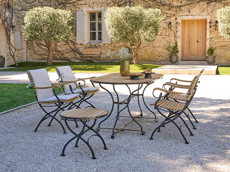 Classics made of teak and steel take the Belle Époque flair to new heights. Today's generation, easily foldable or adjustable, impresses with contemporary comfort and superb craftsmanship. Every detail has been perfected to meet discerning tastes. Diverse tables, deck chairs and lounge furniture augment the repertoire: a classic introduces its extensive family.