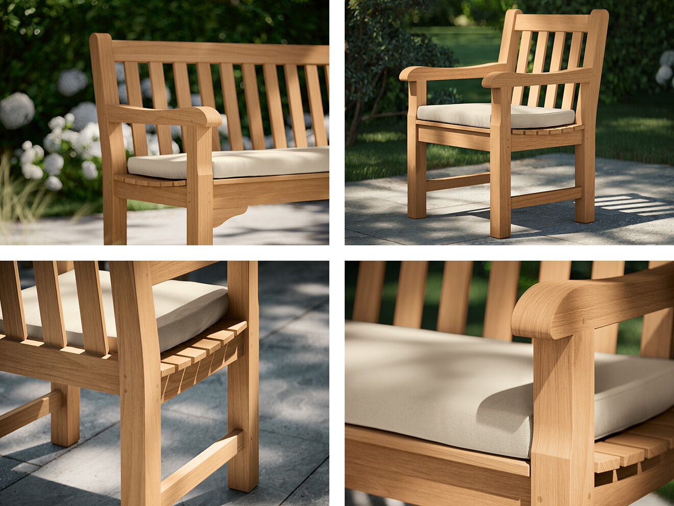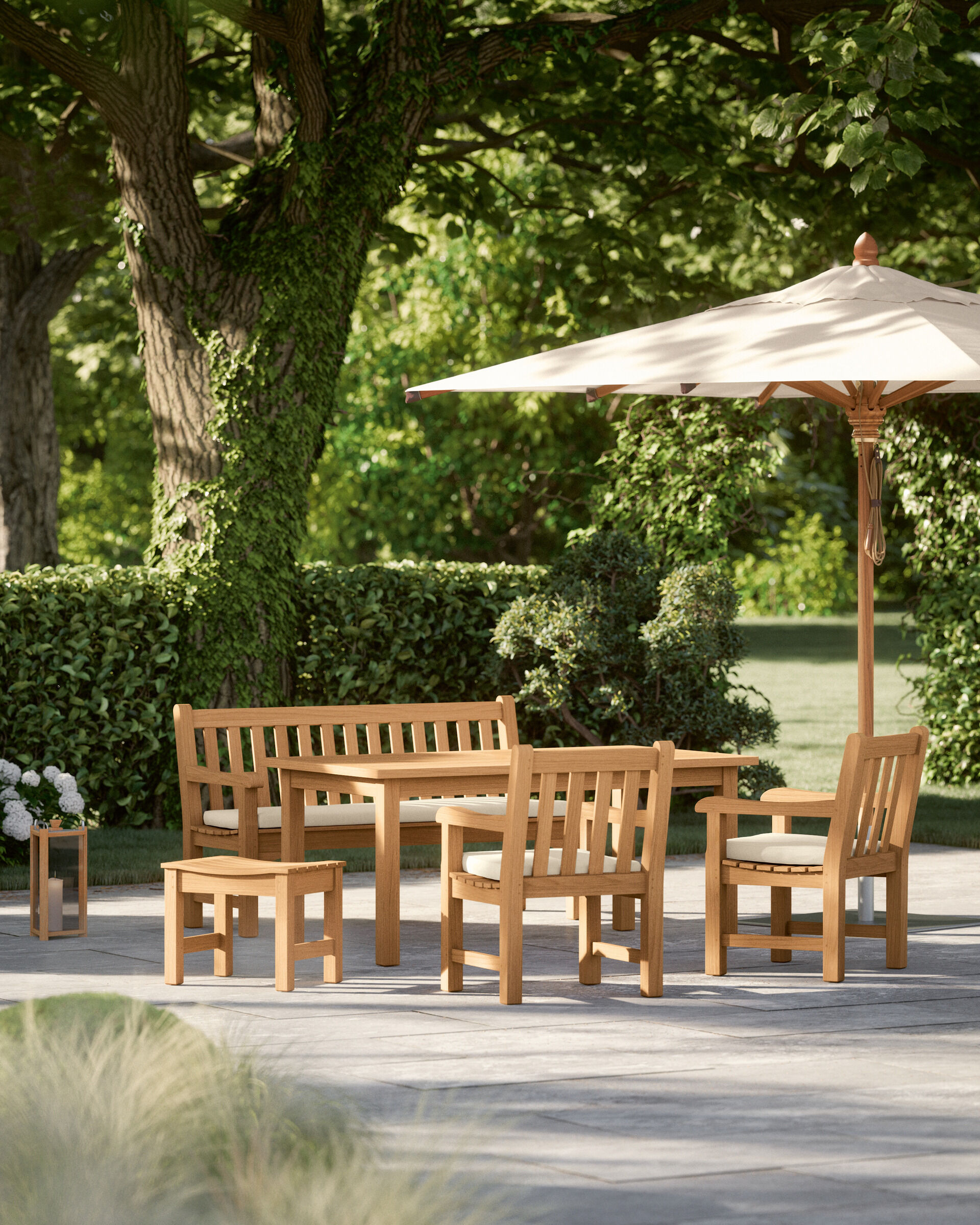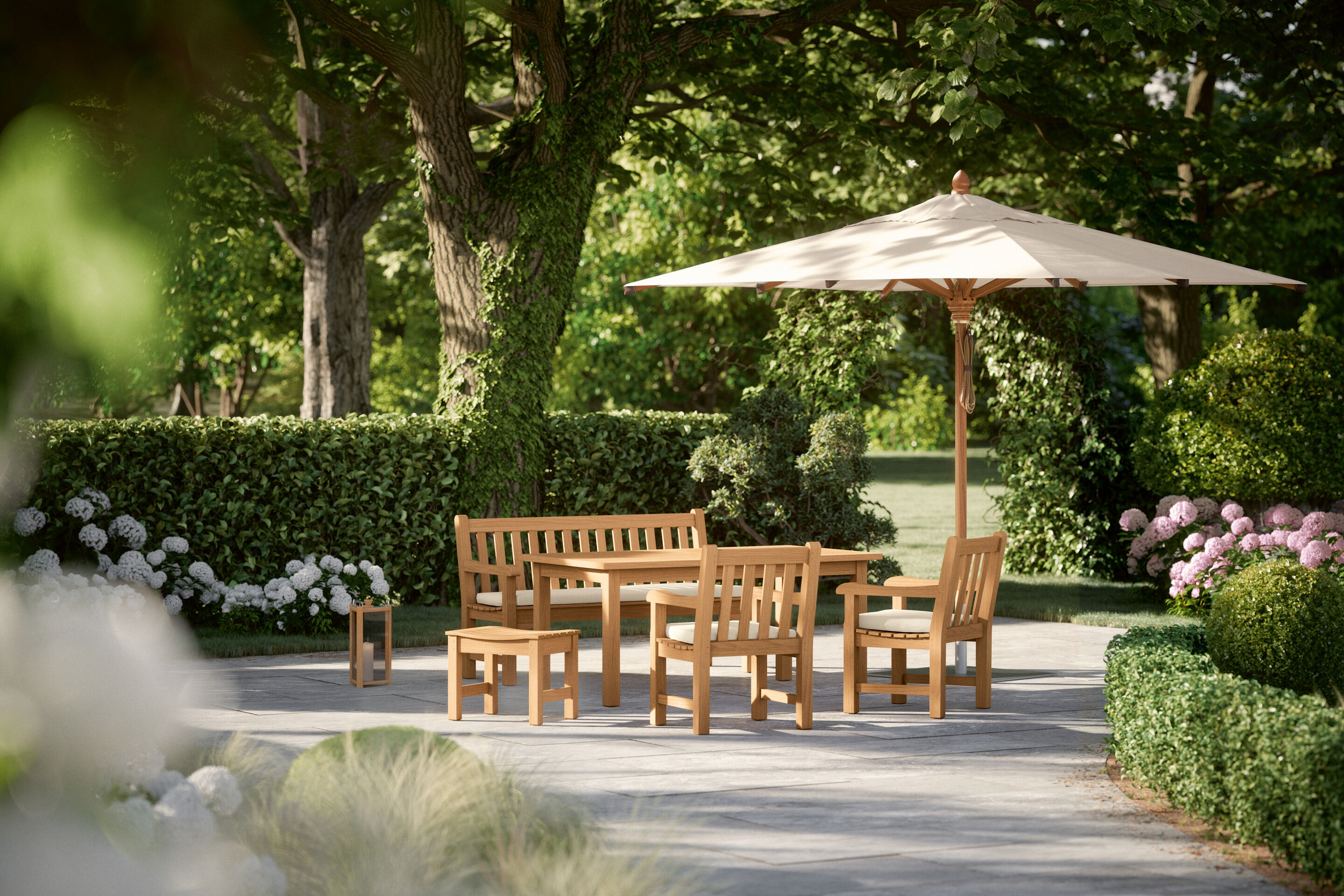 Summerfield has its origins in the great country garden tradition. Continuing in this spirit, the classic teak furniture is naturally beautiful, and like its famous forebears, indestructible, yet today so much more comfortable.