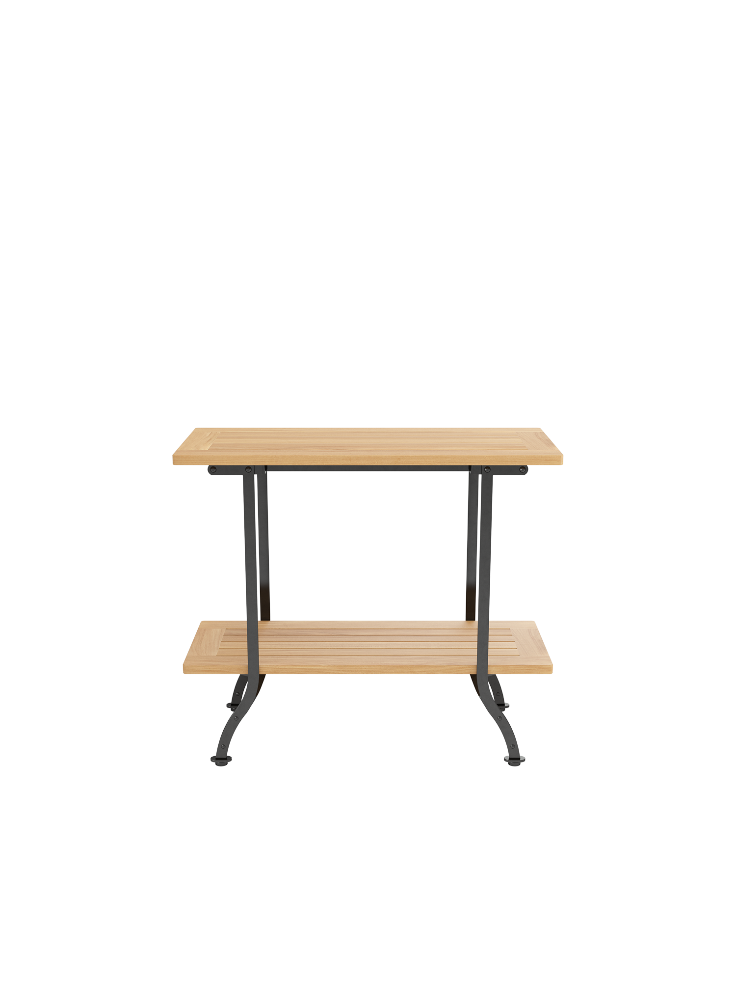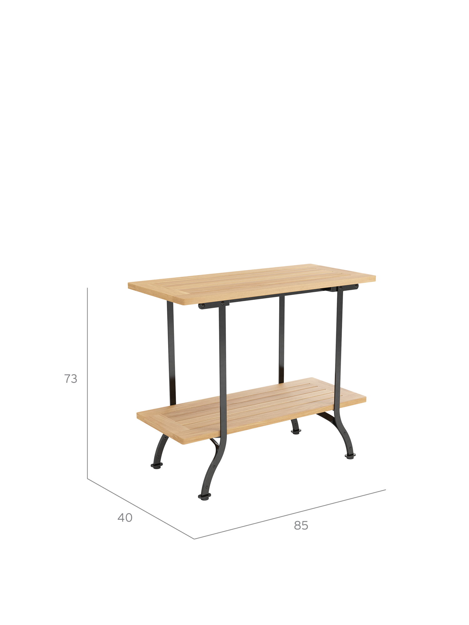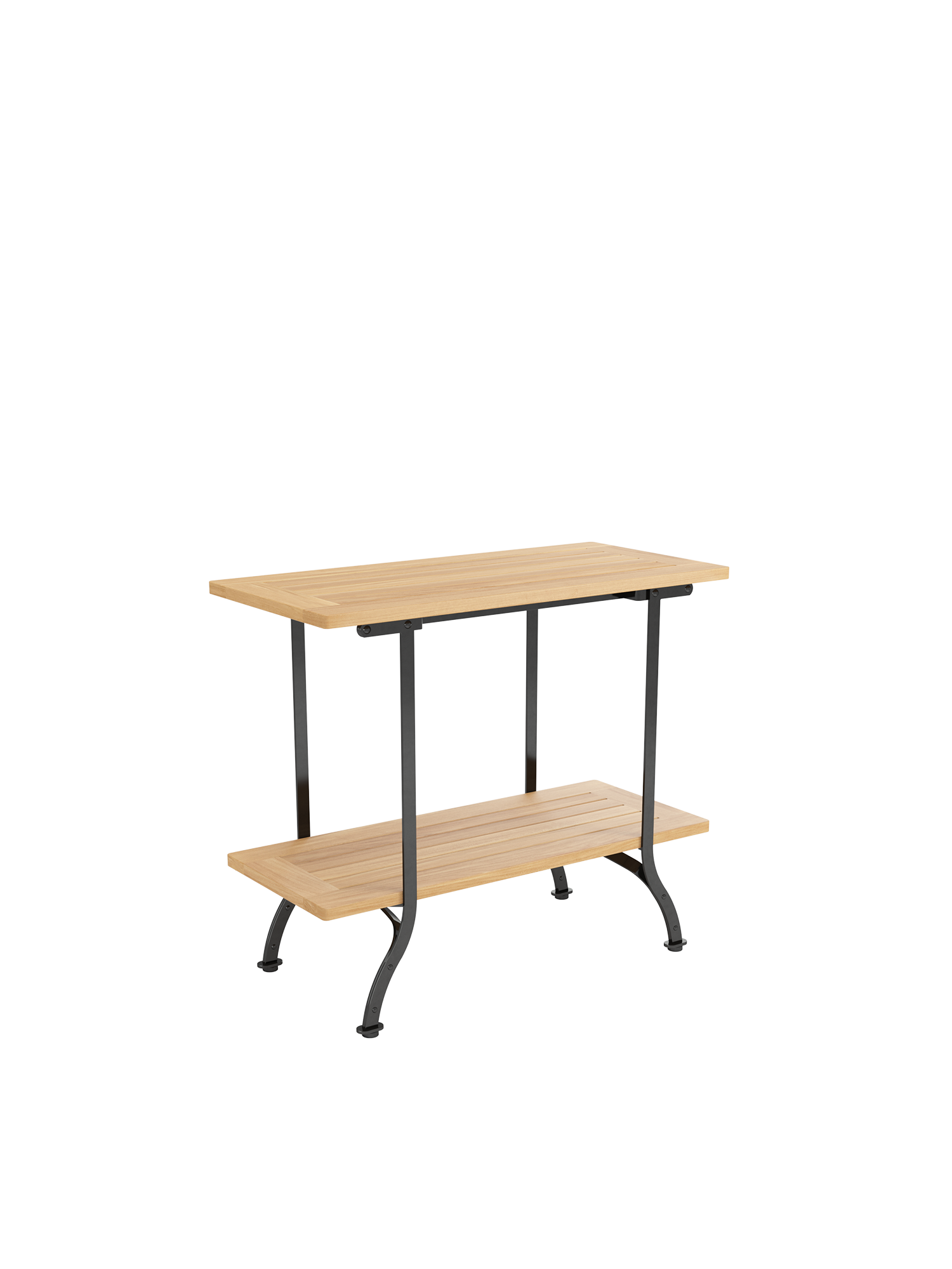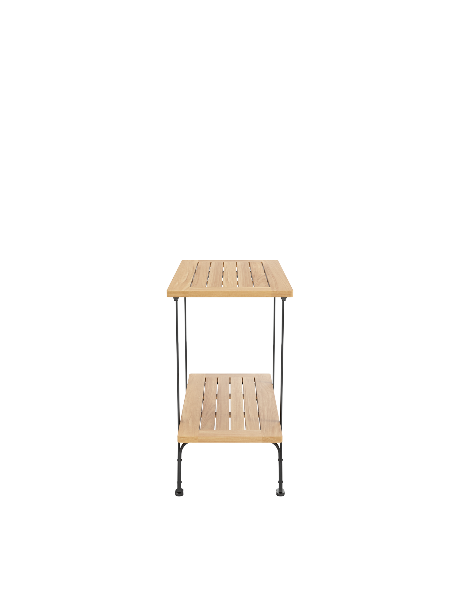 The console table complements the Fontenay series. Its frame is made of galvanised, and therefore rust-protected, powder-coated steel. On two teak levels it offers ample space for tableware and accessories and can be used as an elegant extension for many Fontenay tables – their measurements are perfectly matched. Floor gliders of hard-wearing synthetic material protect valuable flooring from scratches.