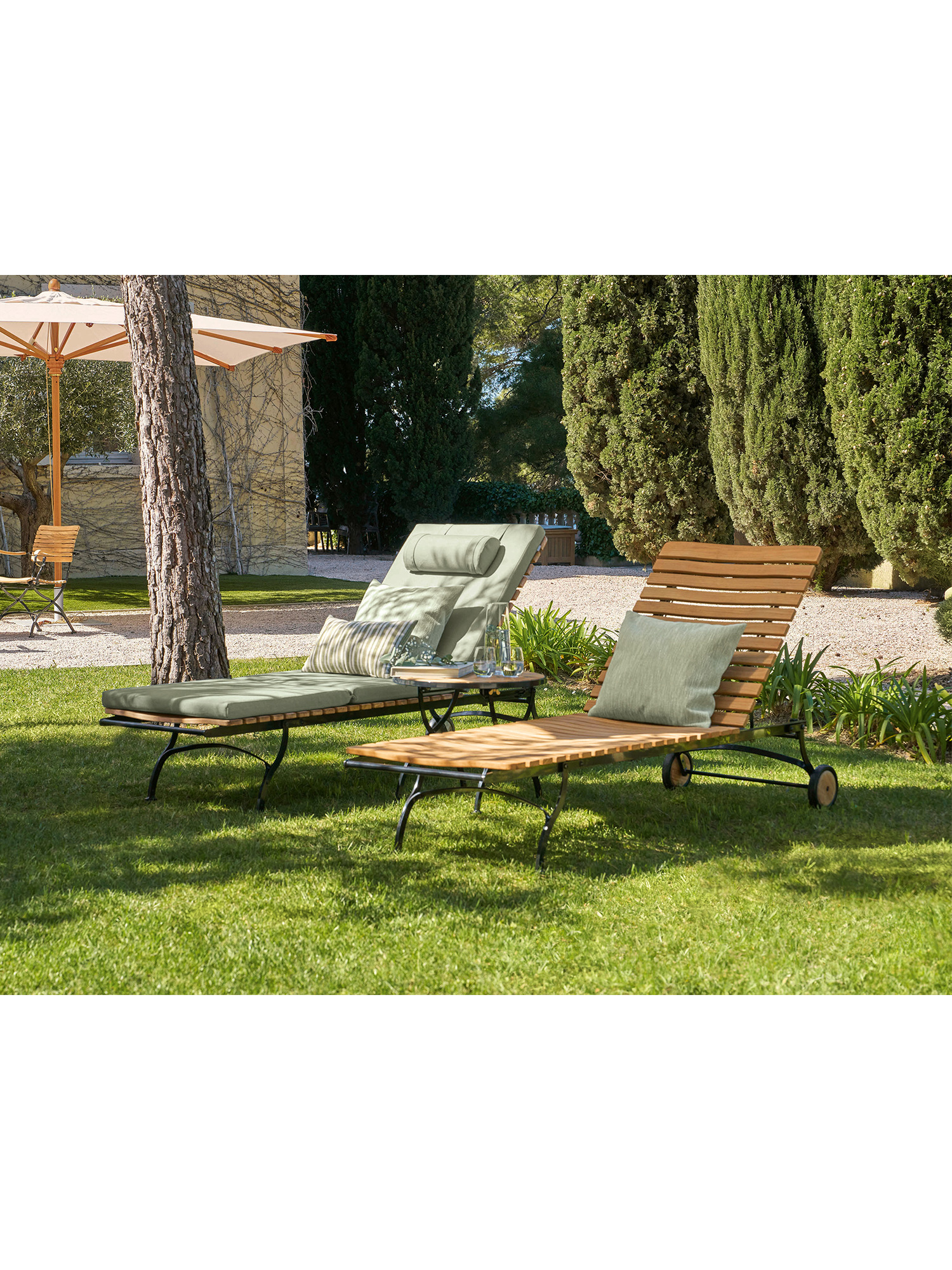 The distinctive design of the garden lounger combines traditional forms with the advantages of contemporary craftsmanship.