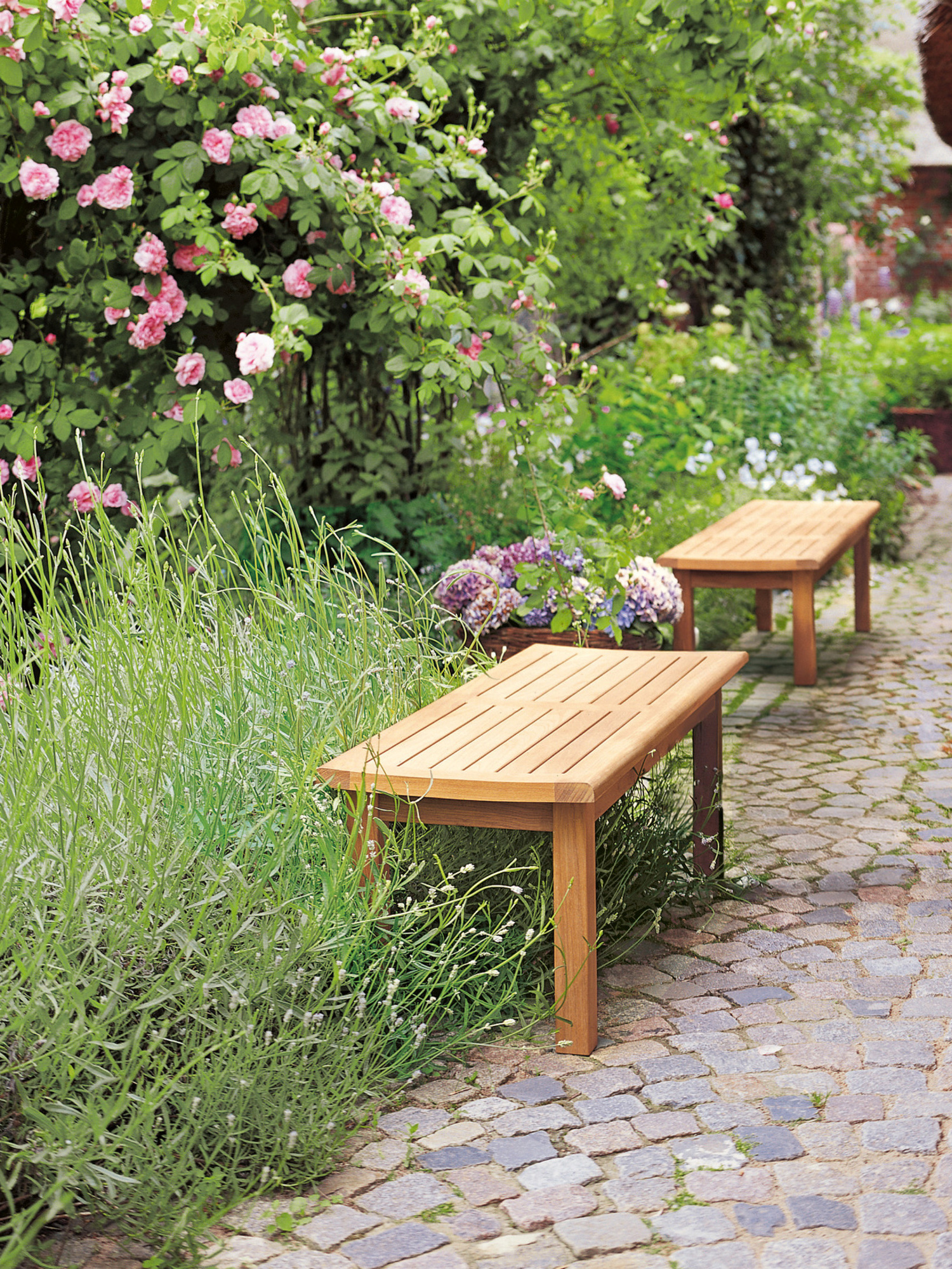 Also without armrests our benches cut a fine figure. Gallery, of solid teak, is equally beautiful as a soloist or as an uncomplicated addition to a table setting.