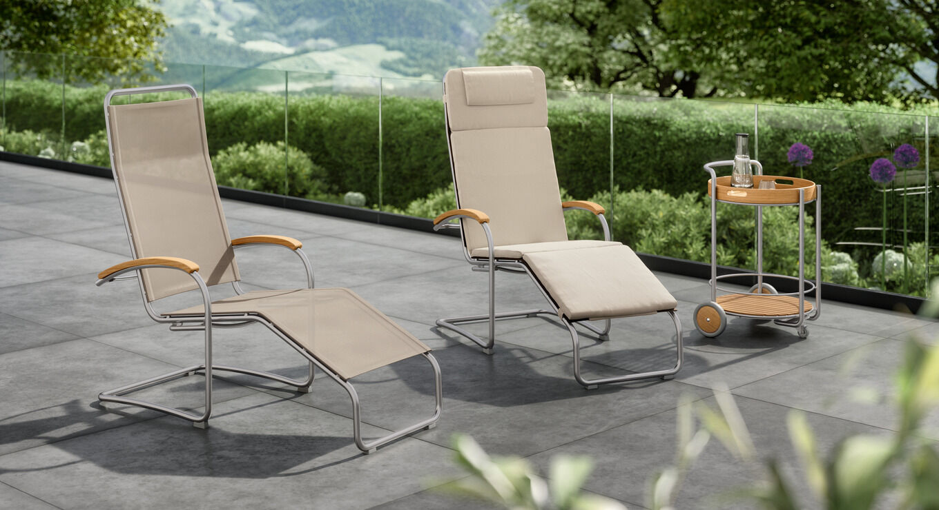 Foldable sun loungers, cosy reclining chairs and deck chairs with removable footrests: create your own personal retreat under the open sky and set off on a journey towards pure relaxation.