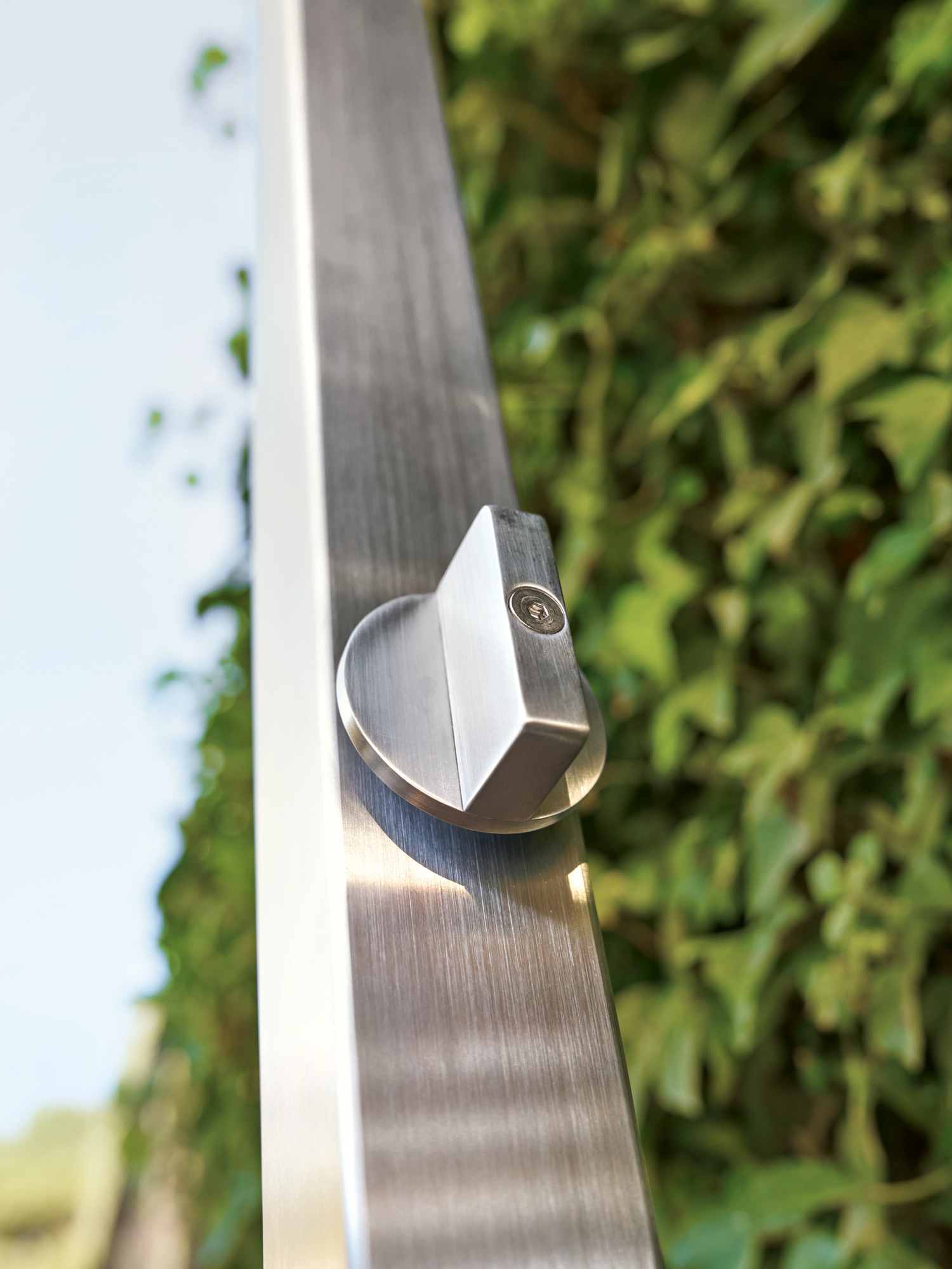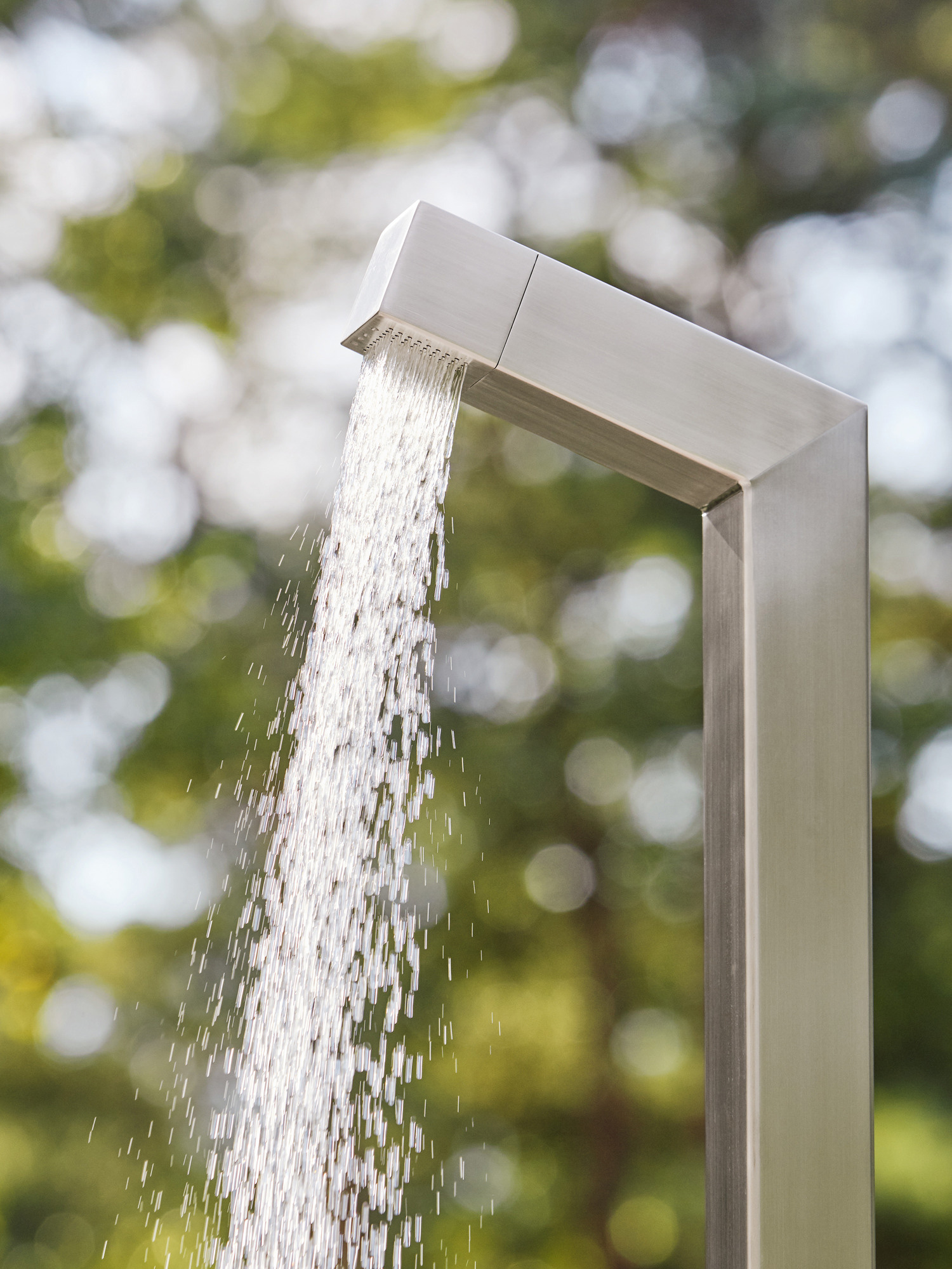 The Garden Shower conserves resources in that showers may also be taken cold – without a gas or electricity connection – the used water then benefitting the garden instead of flowing into the sewage system. To avoid polluting the soil, we recommend showering with natural soap.