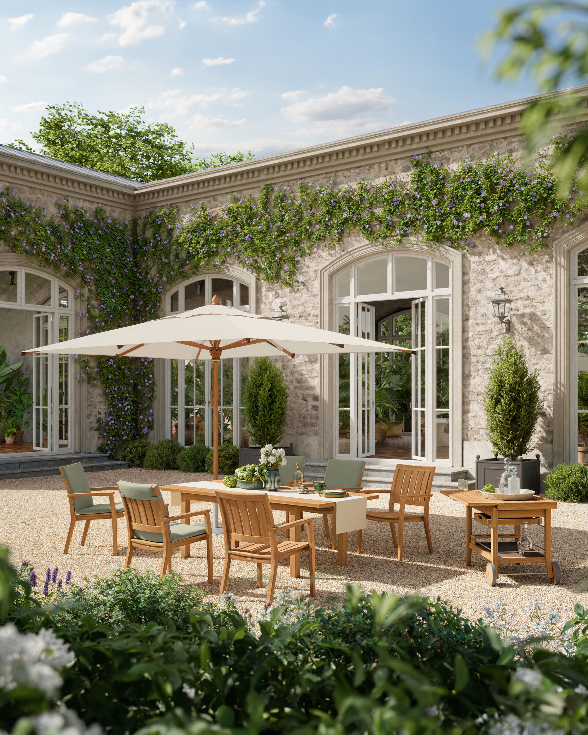 High-quality furniture made of weatherproof teak sets timelessly beautiful accents in the garden or on the terrace. Discover chairs, benches, tables, loungers, and lounge furniture, and design your individual retreat.