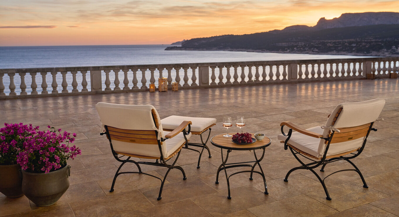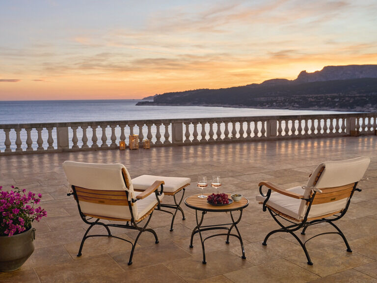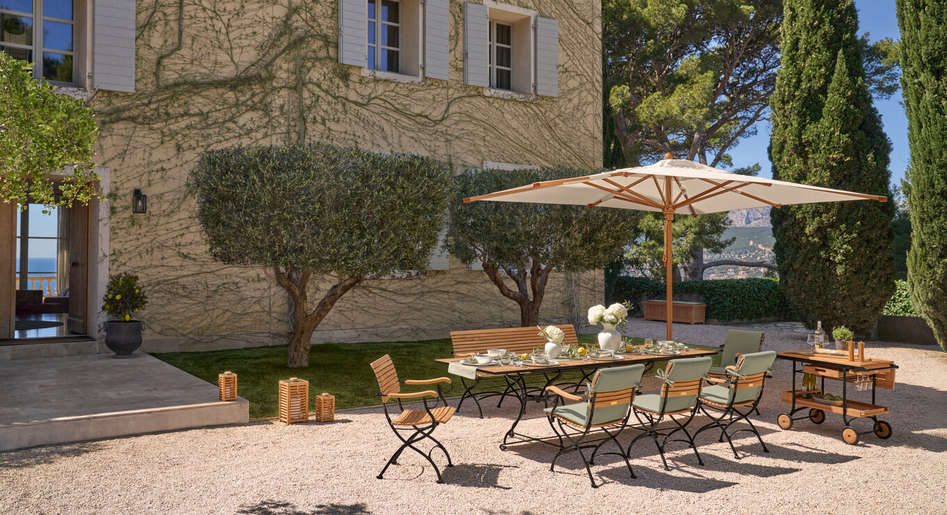 Once the guests have arrived, it's time for an aperitif. At the beautifully laid table, glasses are raised in a toast – to the evening together and the luminescent lightness that suffuses the summer air.