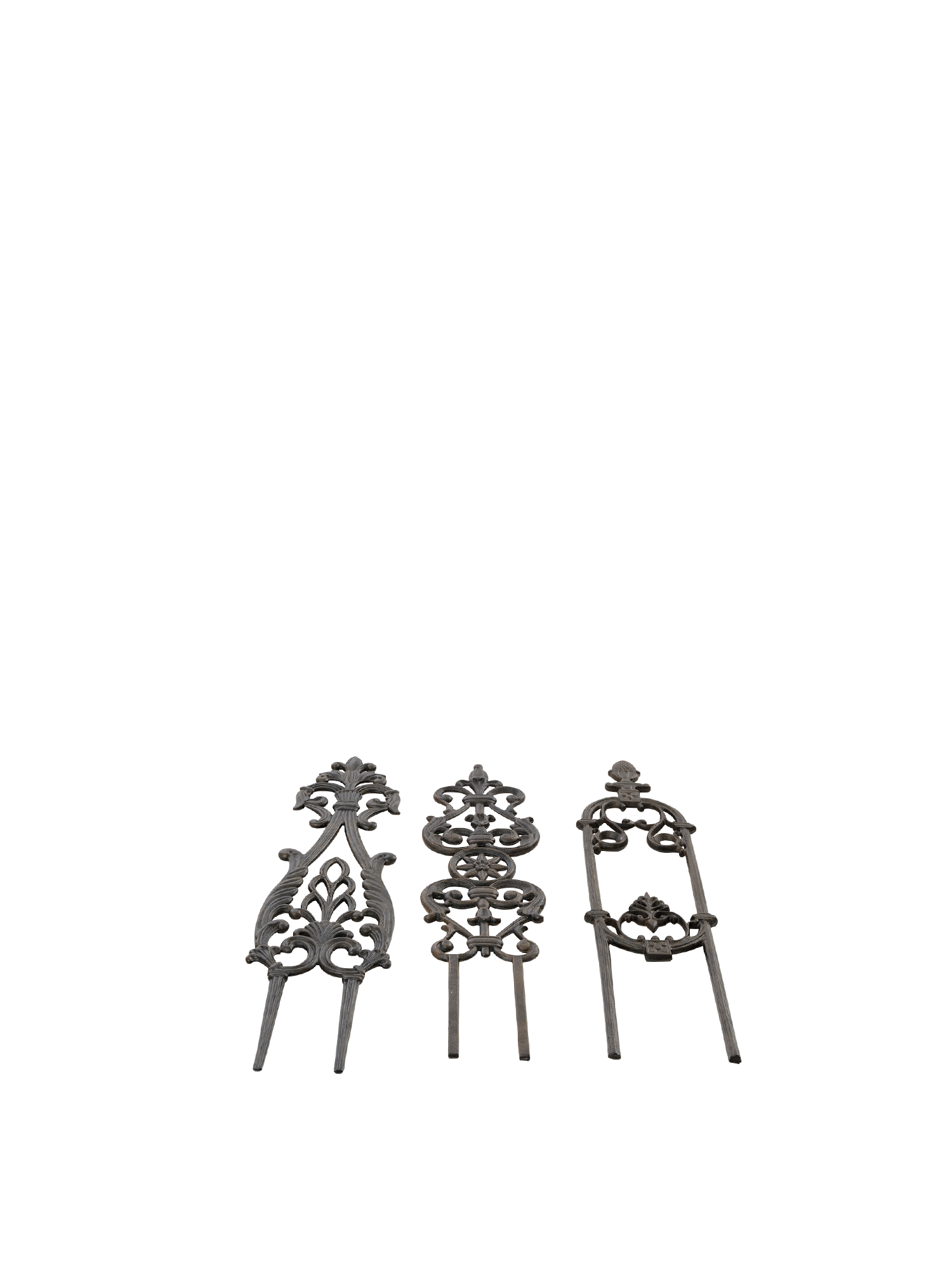 The ornaments of fast-rusting iron are an attractive support for flowering plants.