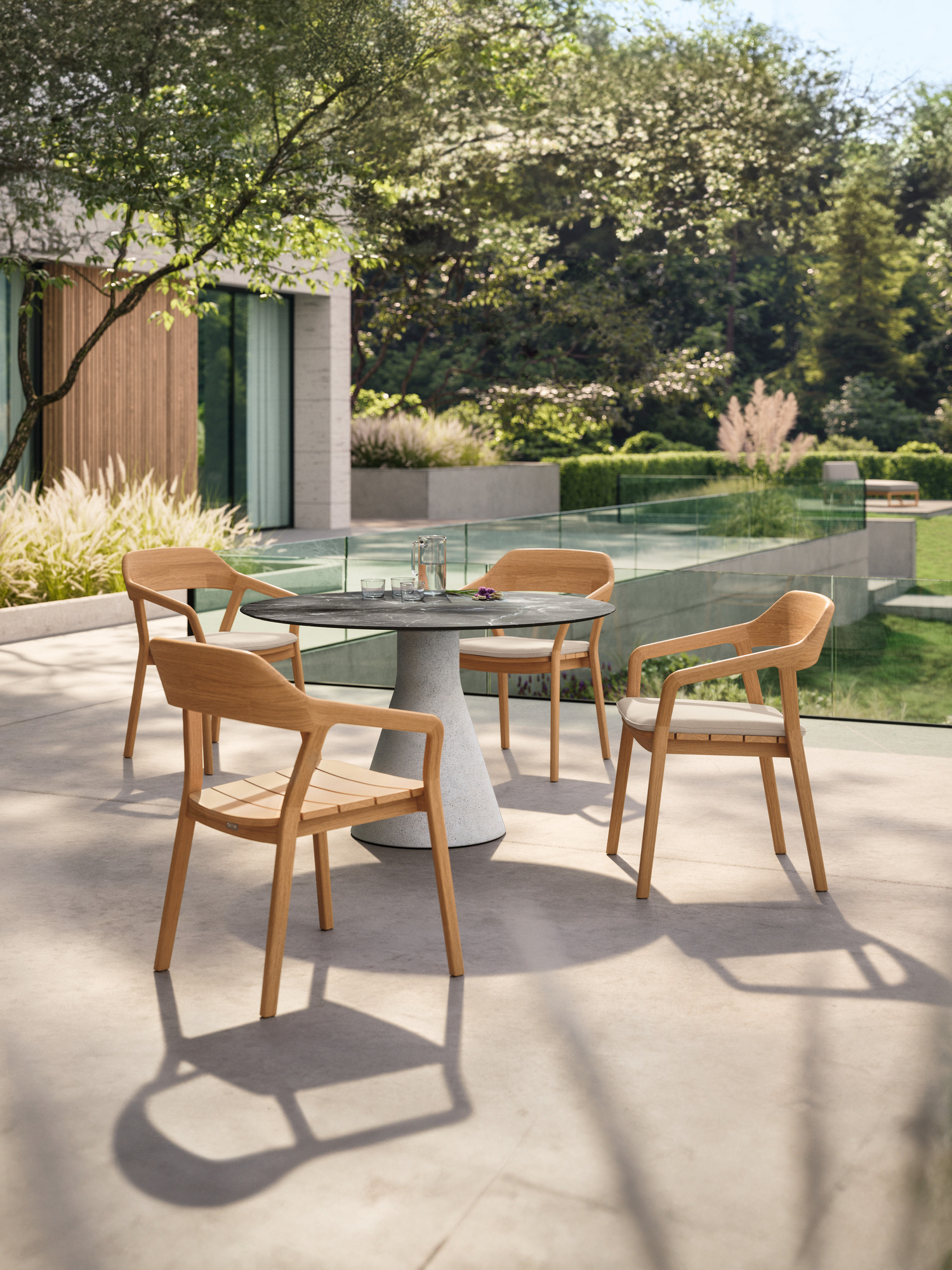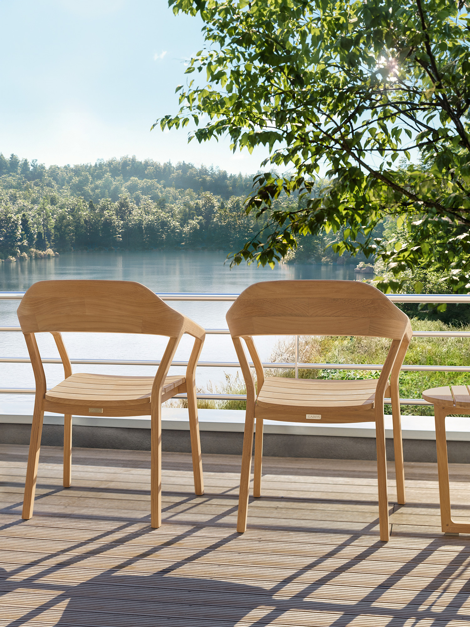 The purist design – the Luton armchair is made entirely of weatherproof teak wood – offers a multitude of combinations with tables from the Portland, Namur, Clark and Benton series. Create a harmonious whole: with Luton and the table of your choice.