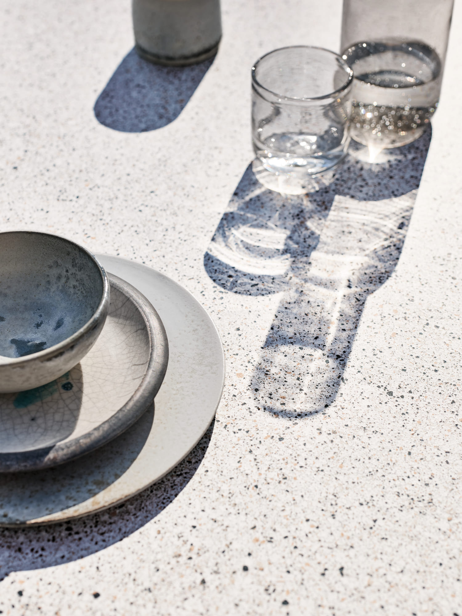 The choice combination of materials – a central base made of lightweight concrete and ceramic top with terrazzo mosaic – affords astonishing scope for a whole range of settings. Numerous chairs from the Garpa collection harmonize with the Namur single-pedestal table – for example, the modern-looking Derry, Temper and Pan series. Real classics such as the Bolero cantilever chairs also find an excellent match in the Namur single-pedestal table.