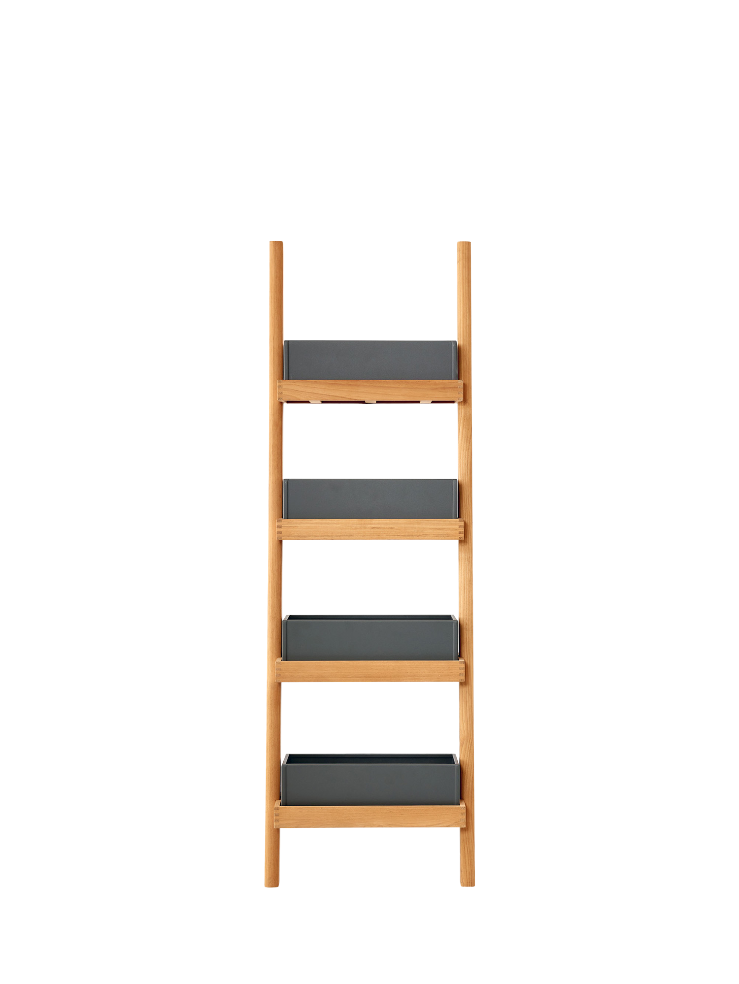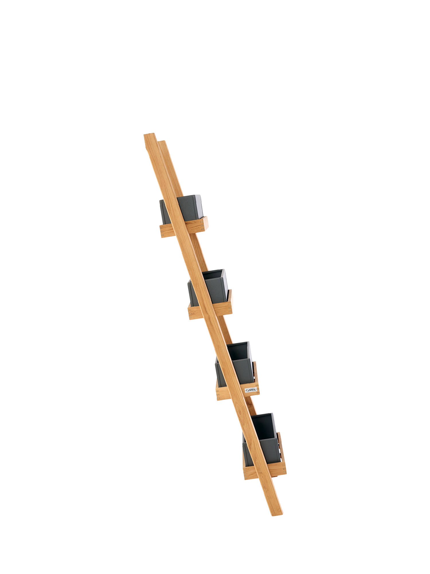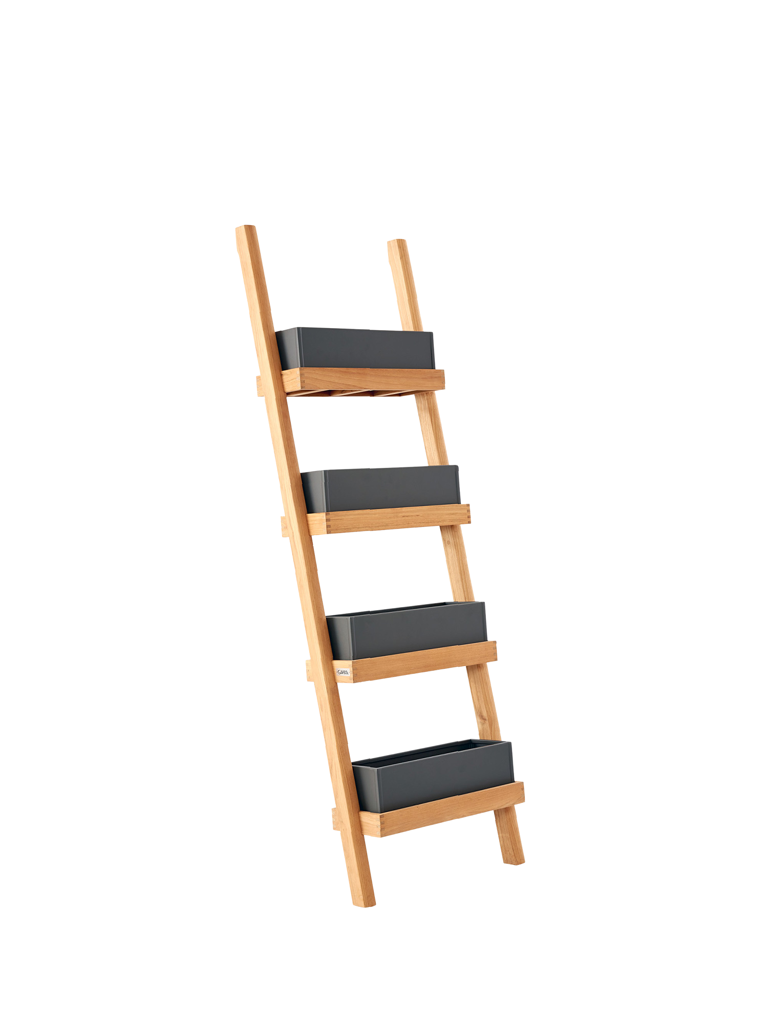 Leaning against a wall or free-standing with a mounting set, the plant ladder made of teak allows the horticultural darlings of the city and balcony gardener to virtually rise above themselves. In four boxes made of graphite-coloured aluminium, smaller shrubs and flowers can be grown and kitchen herbs kept ready for picking. The trough planters each have each have four drainage holes for tap water or rain water to pass through. Matching drainage hole seals are included.