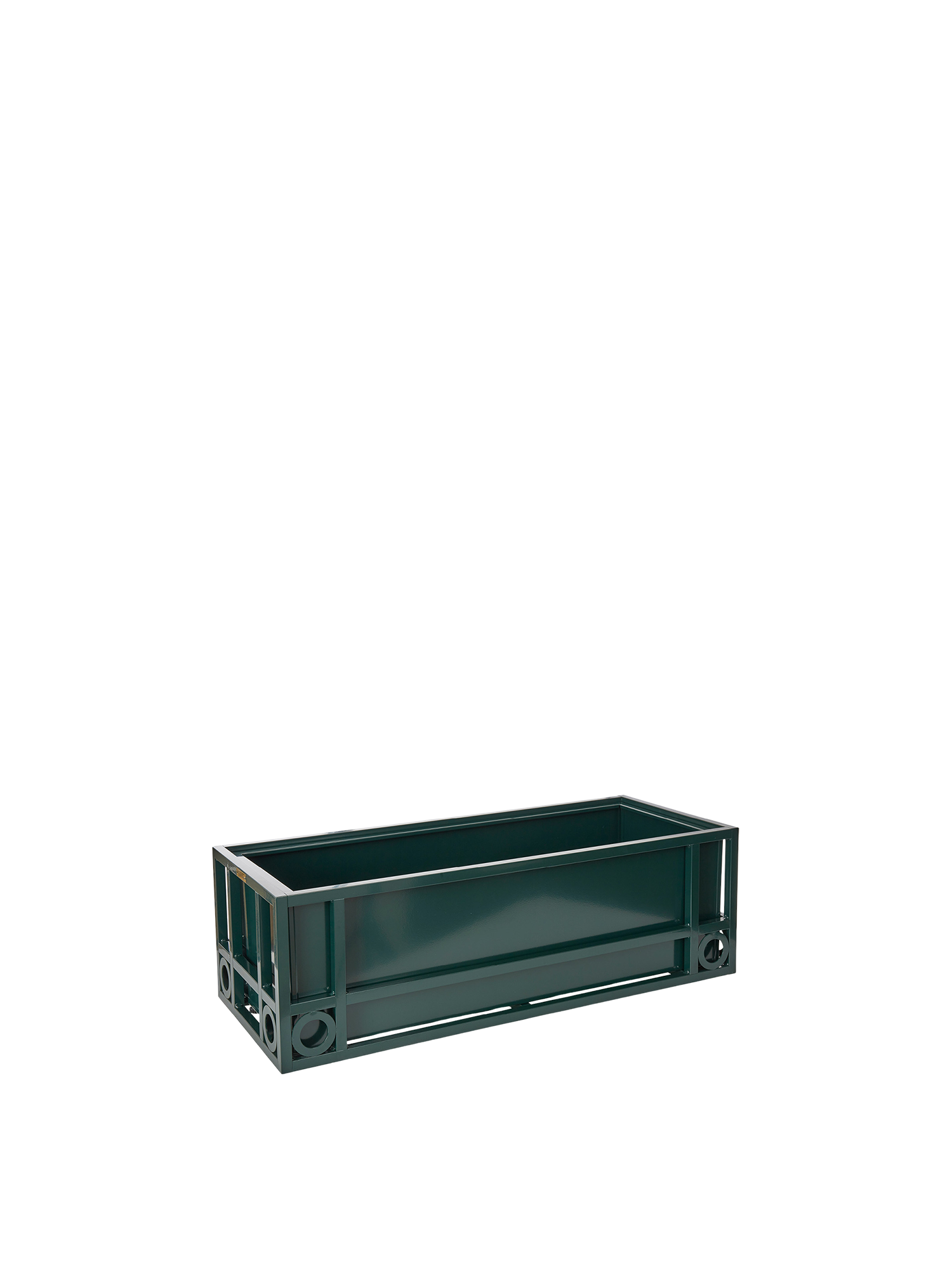 A screen of climbing flowers which, with its pretty diamond pattern, is an eye-catcher even in winter. The trellis and planters of the Orangery are available in two widths. Whereas the planters can be used separately, the supports must be securely mounted to the back of the planters or fixed between them. The material is of greenish black, powder-coated, weatherproof aluminium. Drainage holes in the bottom prevent waterlogging and four height adjusters take care of uneven surfaces.