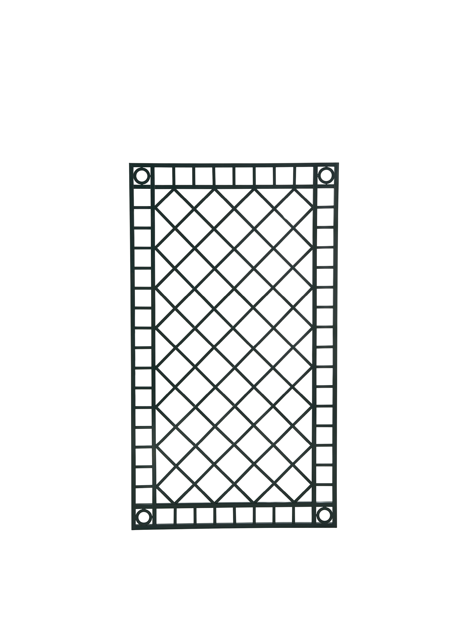 A screen of climbing flowers which, with its pretty diamond pattern, is an eye-catcher even in winter. The trellis and planters of the Orangery are available in two widths. Whereas the planters can be used separately, the supports must be securely mounted to the back of the planters or fixed between them. The material is of greenish black, powder-coated, weatherproof aluminium. Drainage holes in the bottom prevent waterlogging and four height adjusters take care of uneven surfaces.