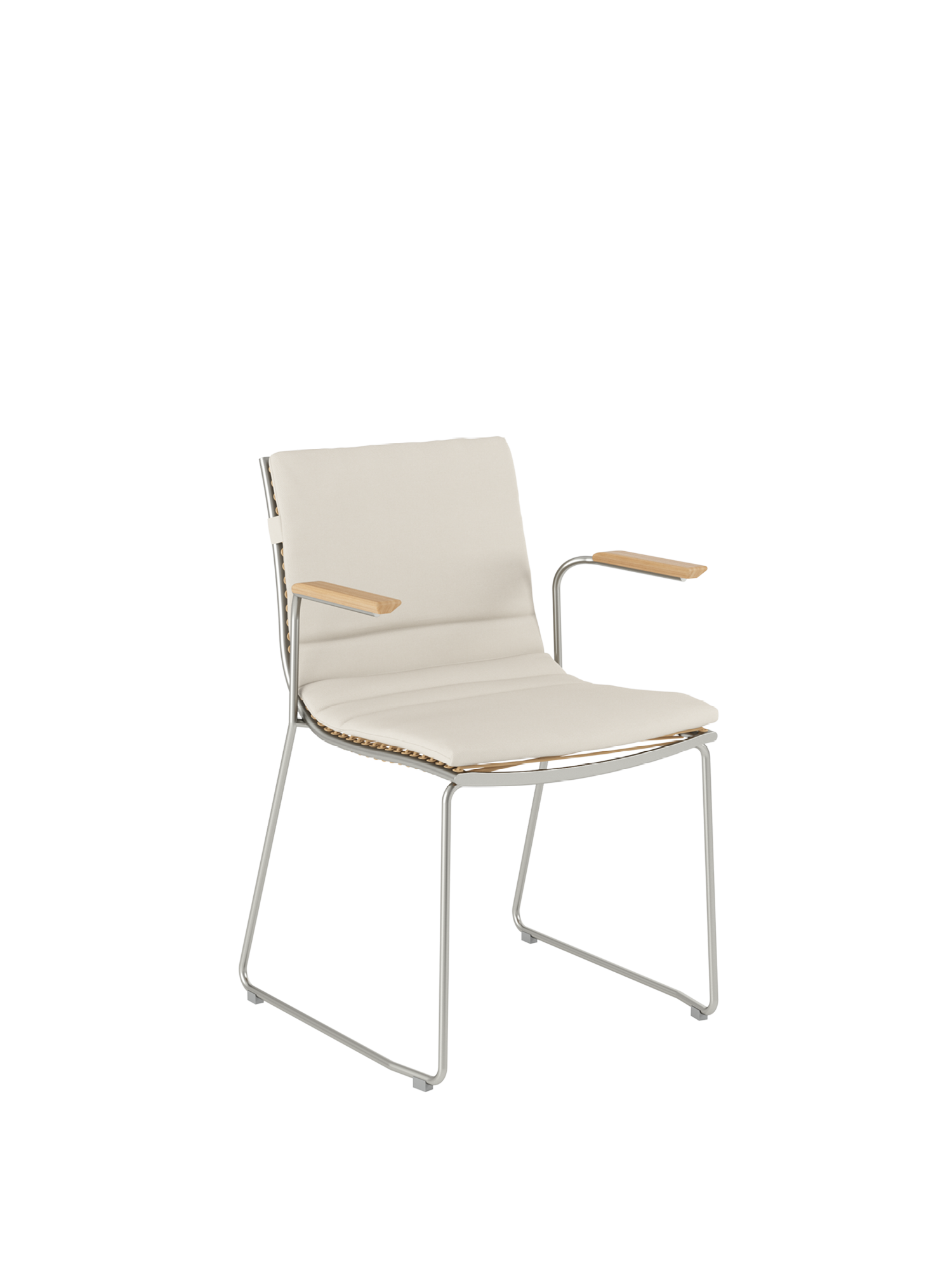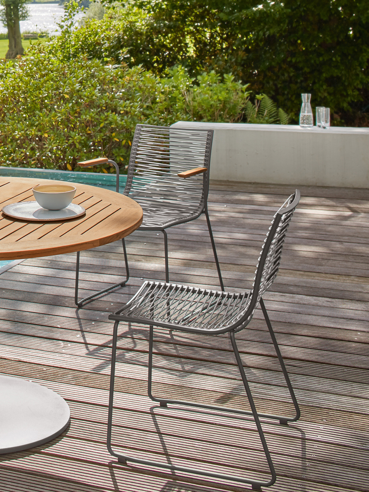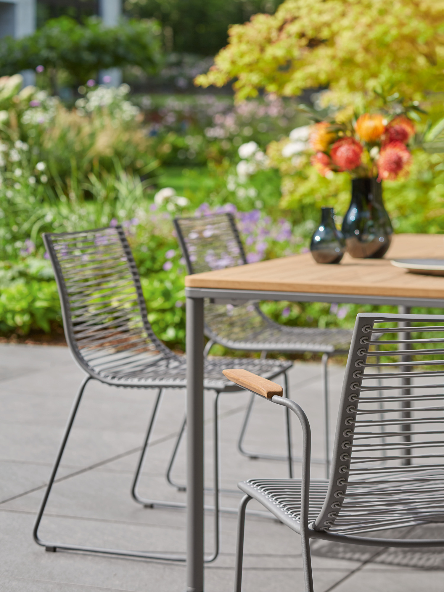 To complete the seating group, matching tables are available in different formats and with teak-slatted tops or tops of synthetic resin (HPL). Pan chairs, with their simple elegance, combine attractively also with other modern tables in our collection. For an overview of all matching tables, click on "Matching tables' further down on this page.