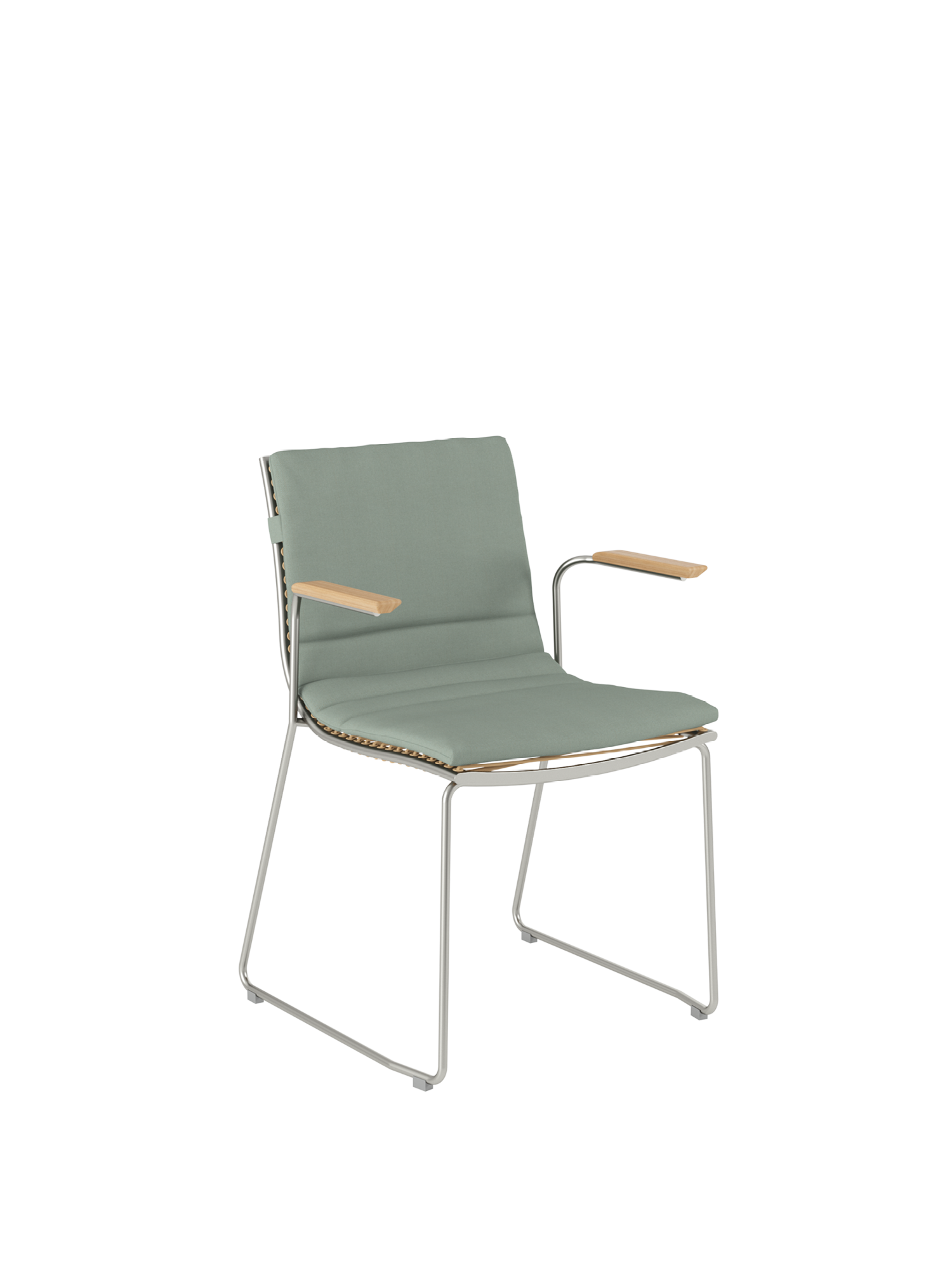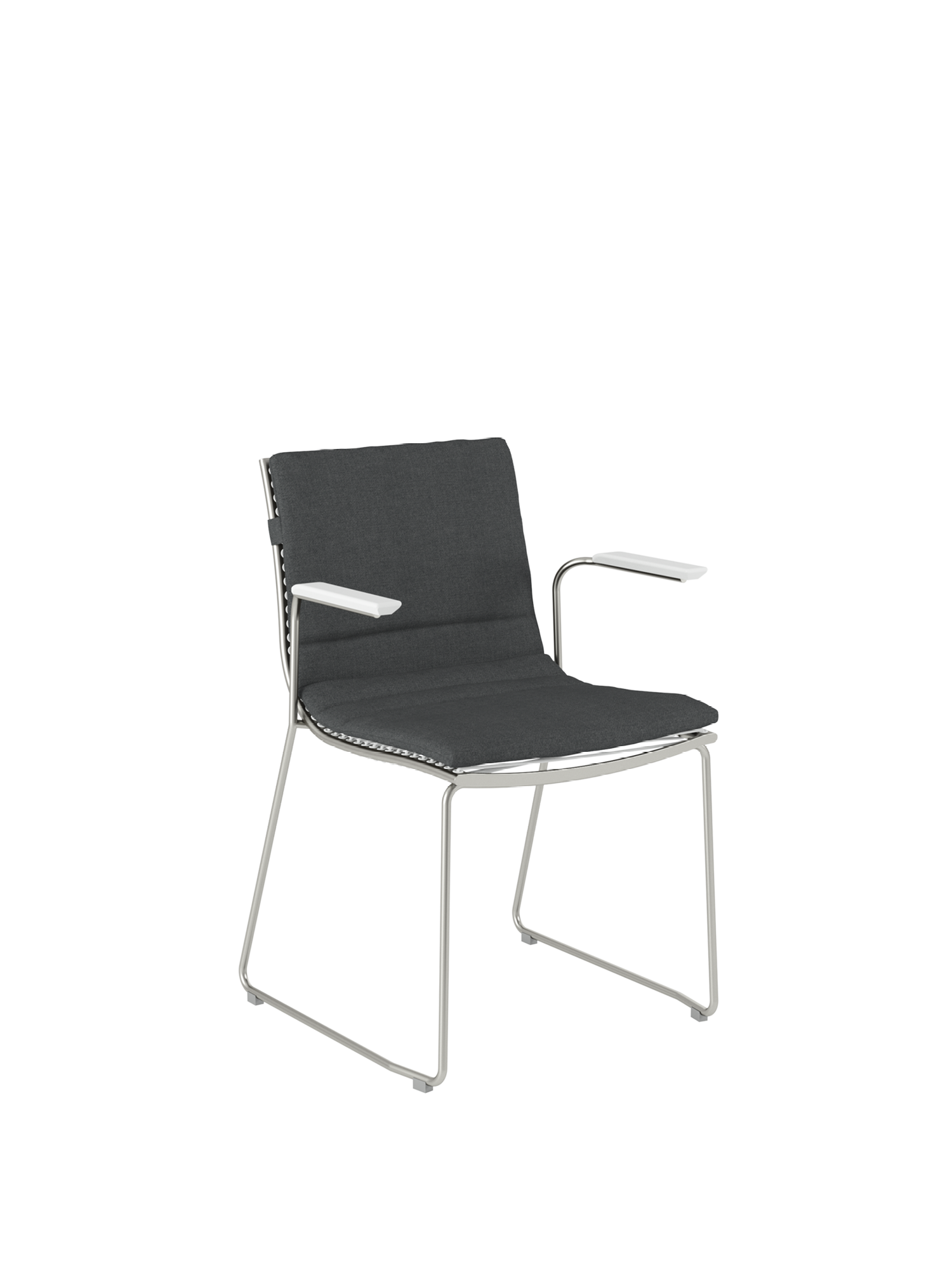 Pan looks as light as a breeze. The elegant, stackable chairs with frames of powder-coated stainless steel have a covering of permanently elastic fibre, which comfortably conforms to the shape of the body.