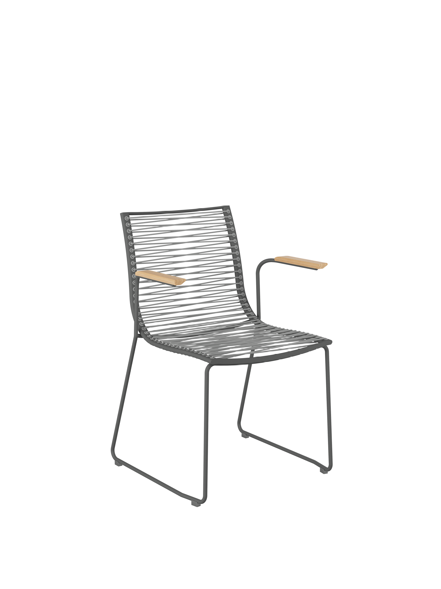 A distinguishing feature of the modern seating furniture is the lacing threaded through eyes in the frame. The synthetic fibre is UV- and frost-resistant, and retains its tautness even when constantly in use.