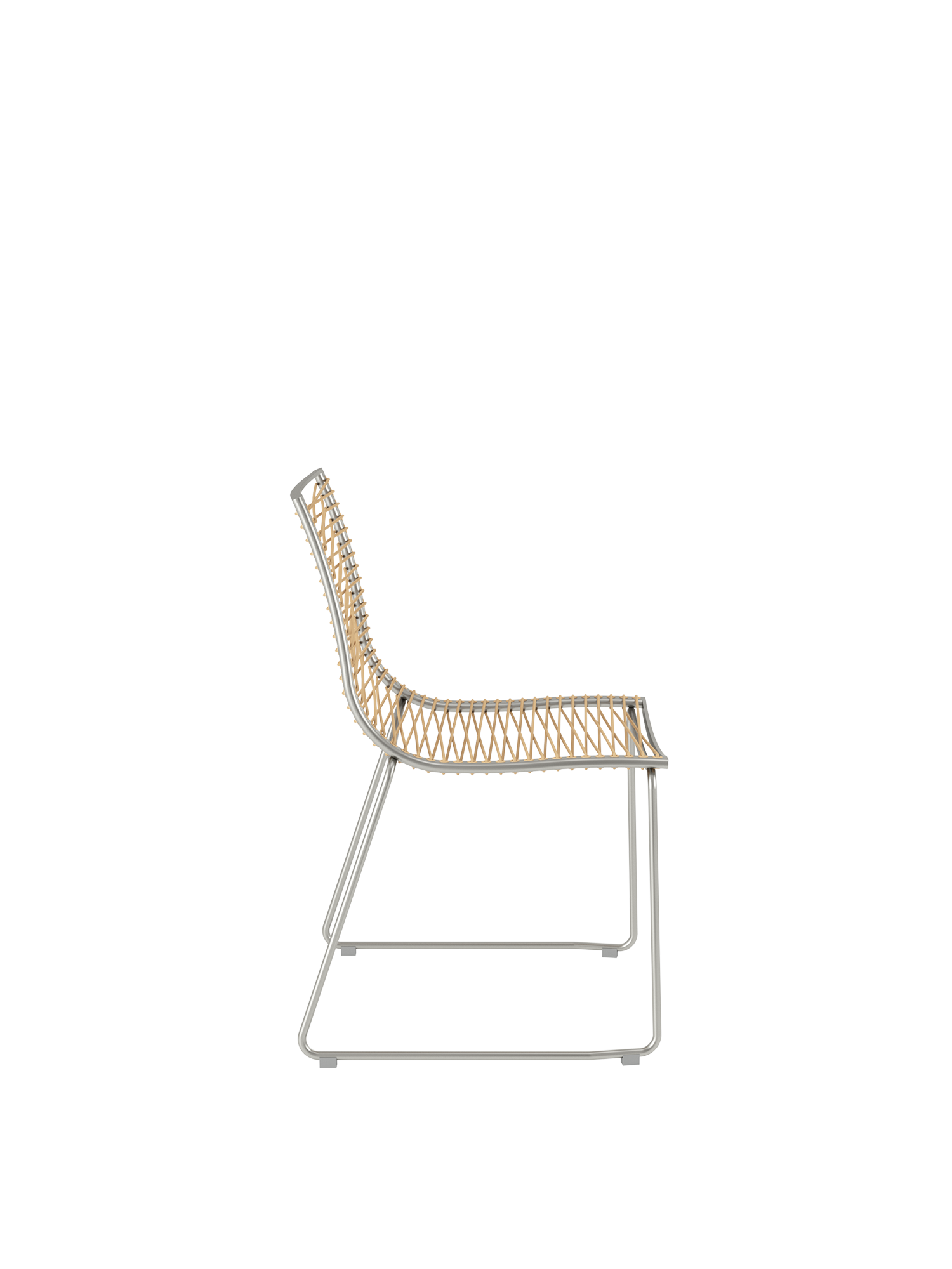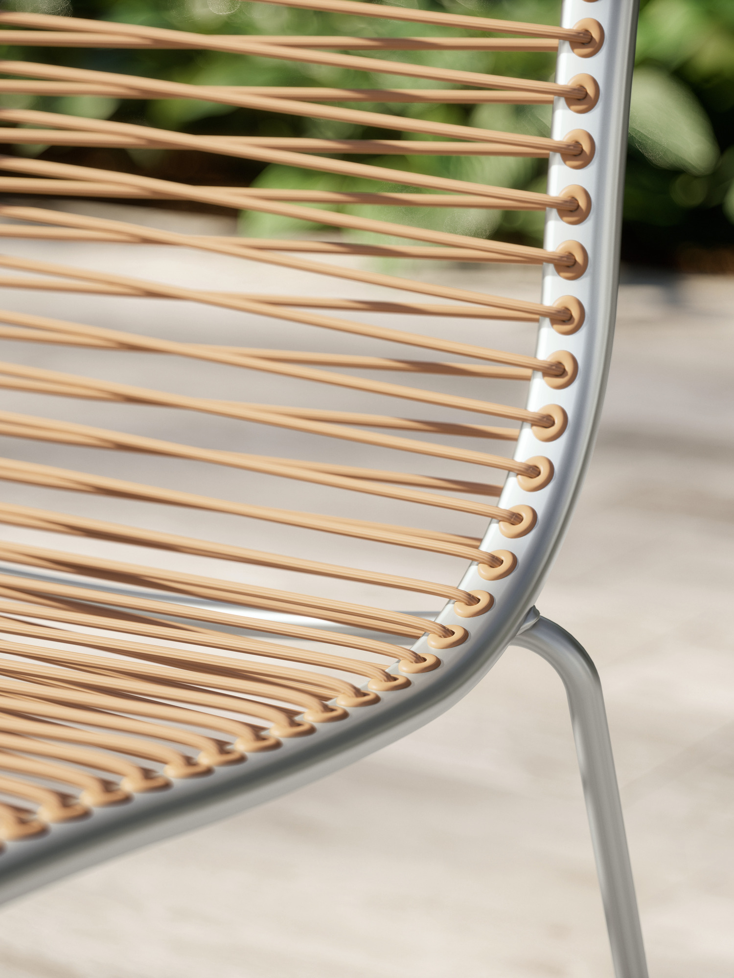 A distinguishing feature of the modern seating furniture is the lacing threaded through eyes in the frame. The synthetic fibre is UV- and frost-resistant, and retains its tautness even when constantly in use.