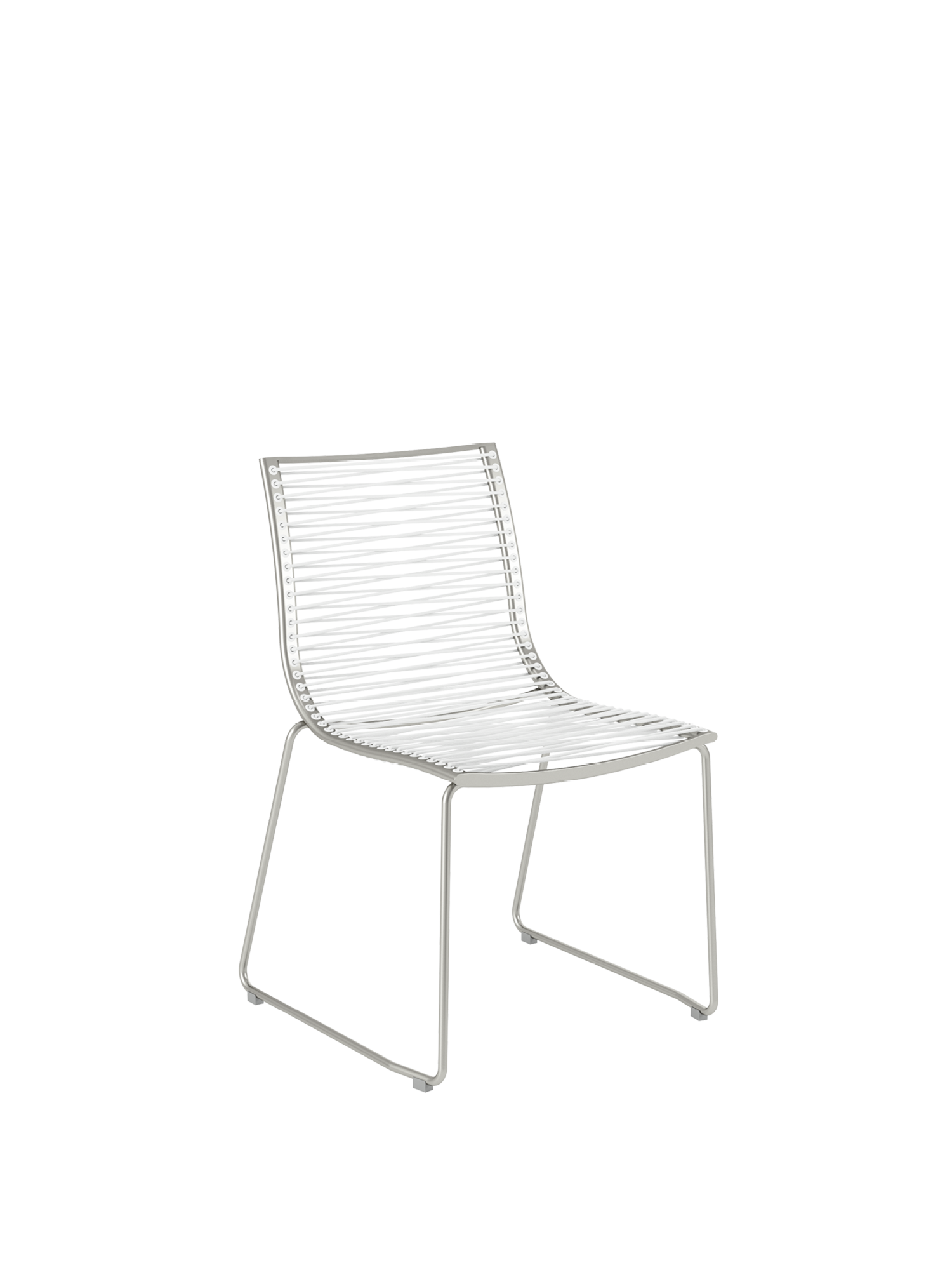 Pan looks as light as a breeze. The elegant chairs with frames of stainless steel have a covering of permanently elastic fibre, which comfortably conforms to the shape of the body. The chairs are stackable and also available with armrests.