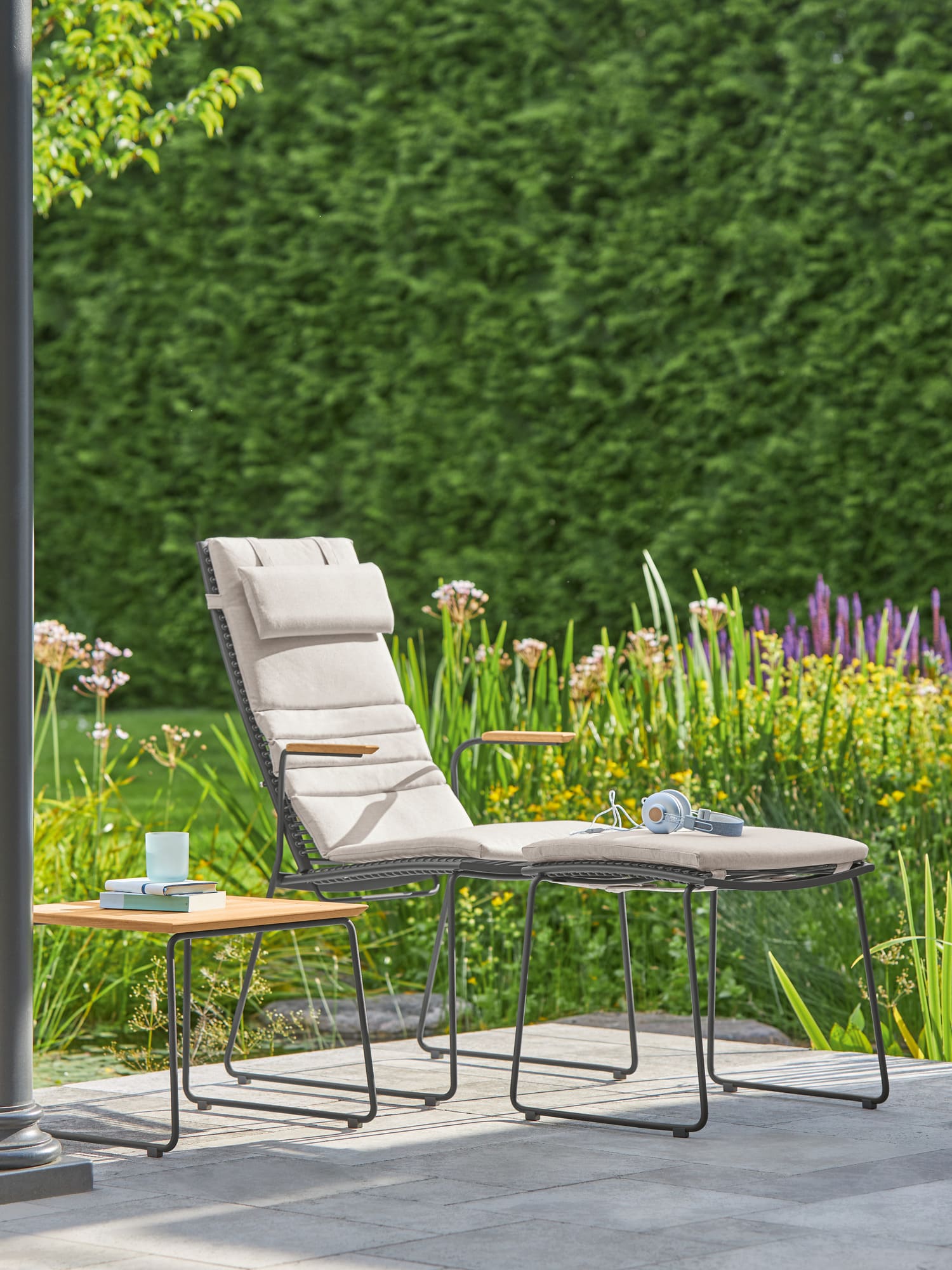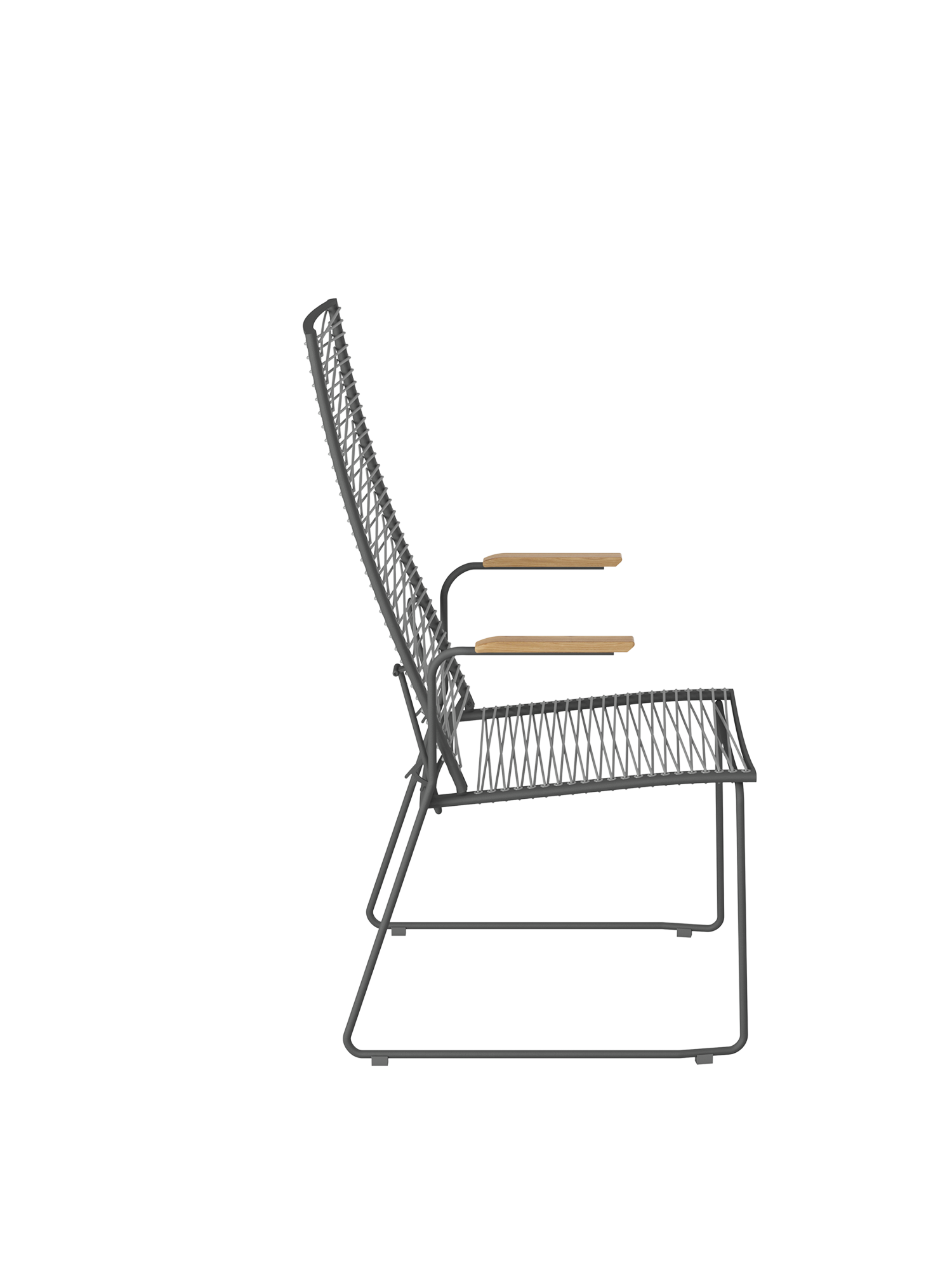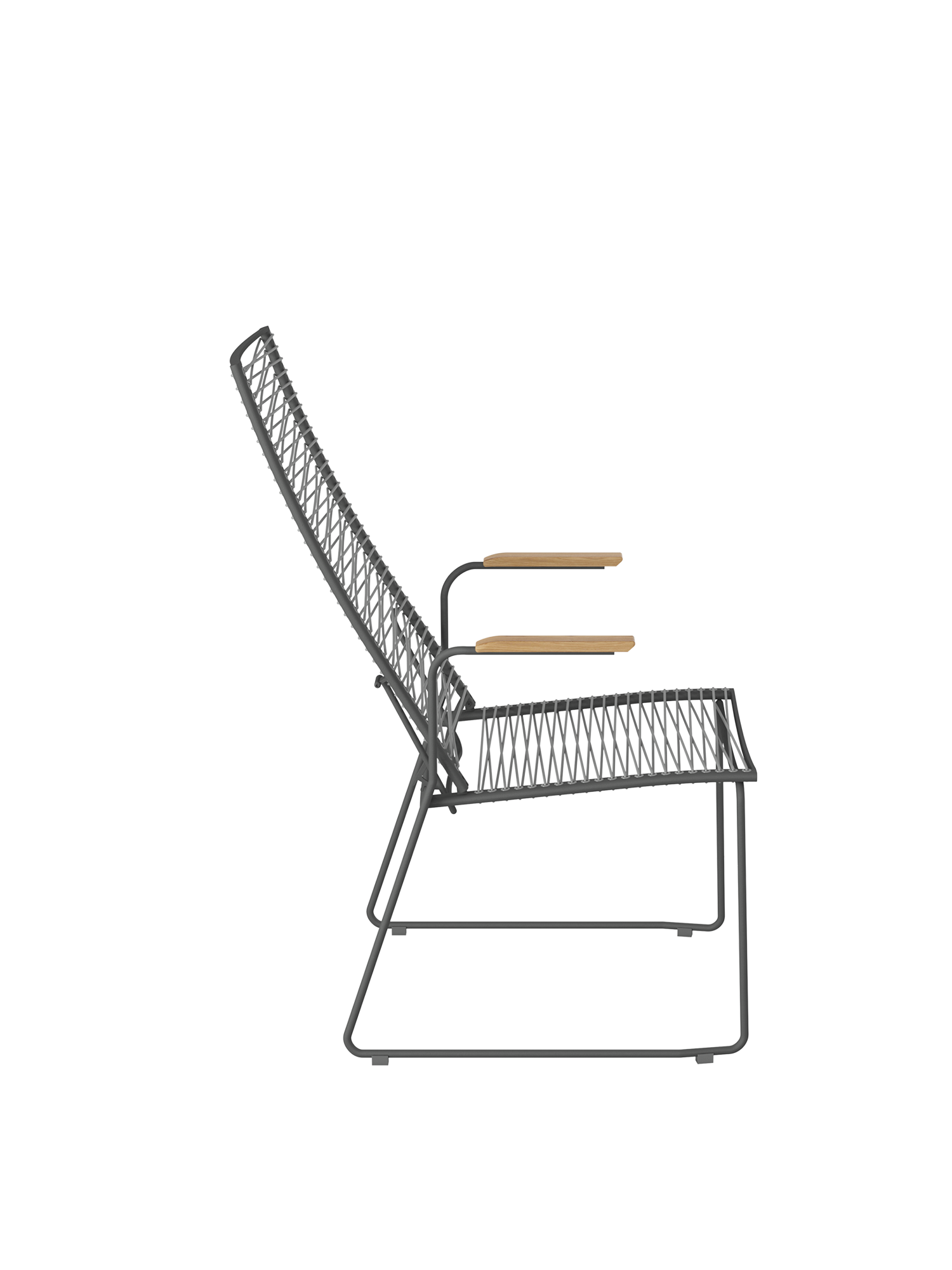 A distinguishing feature of the modern seating furniture is the lacing threaded through eyes in the frame. The synthetic fibre is UV- and frost-resistant, and retains its tautness even when constantly in use.