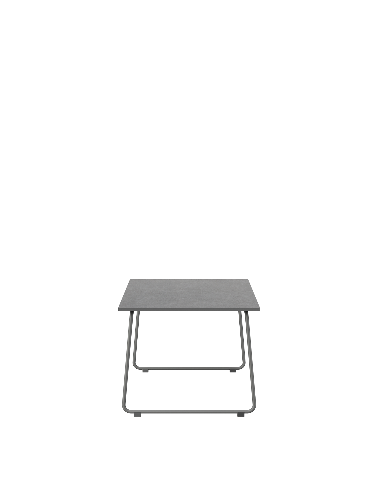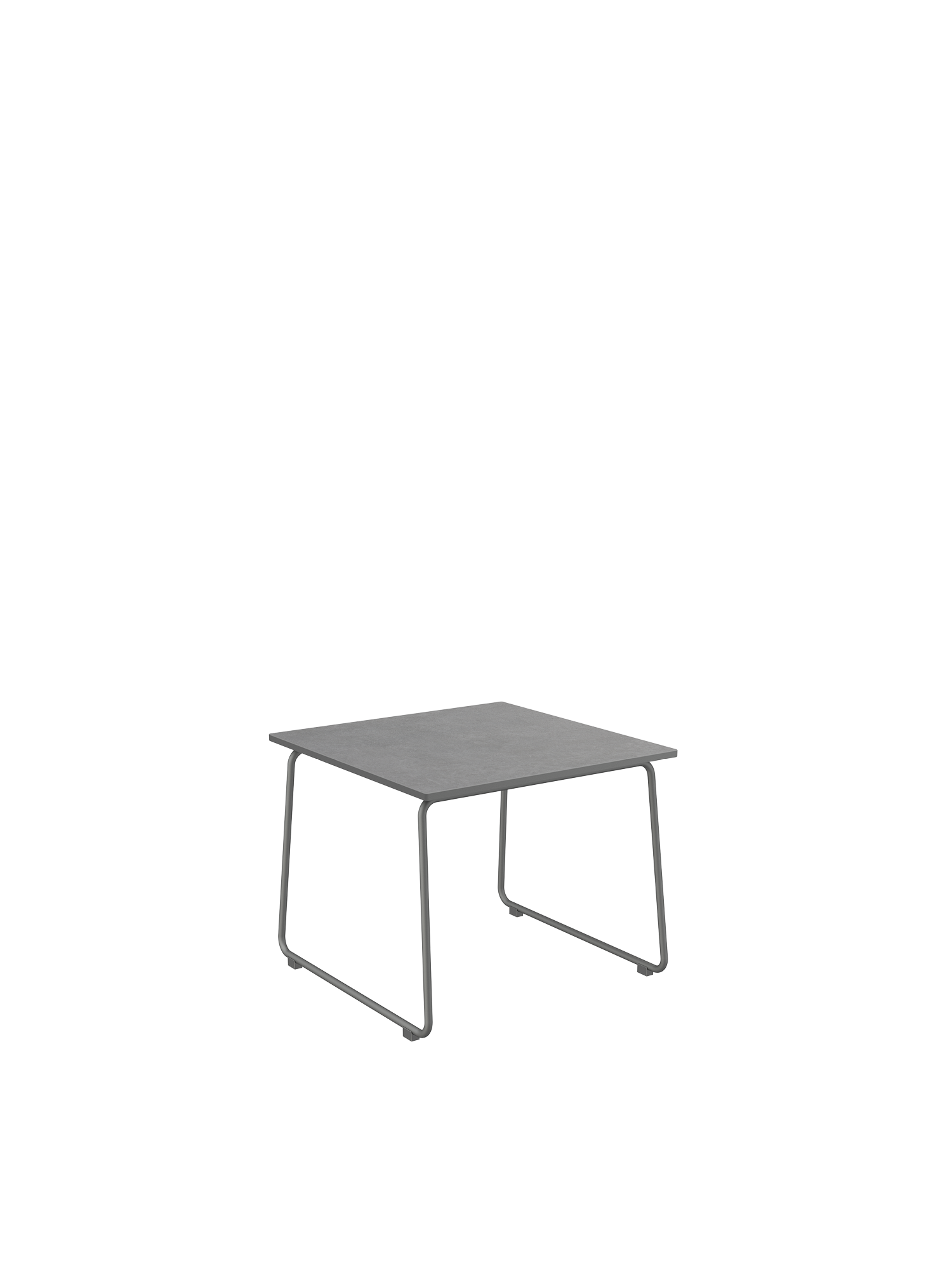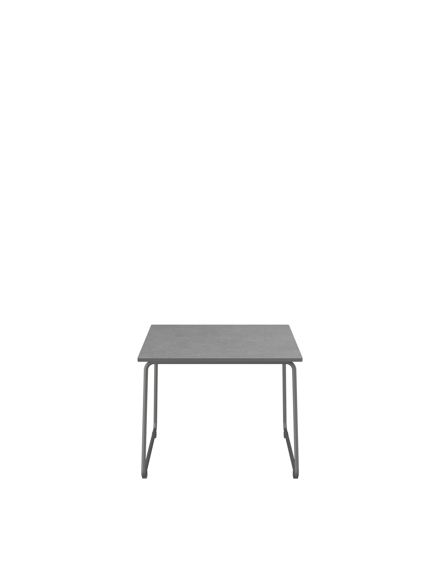 The modern side table has a frame of Graphite coloured stainless steel and a table top of synthetic resin.