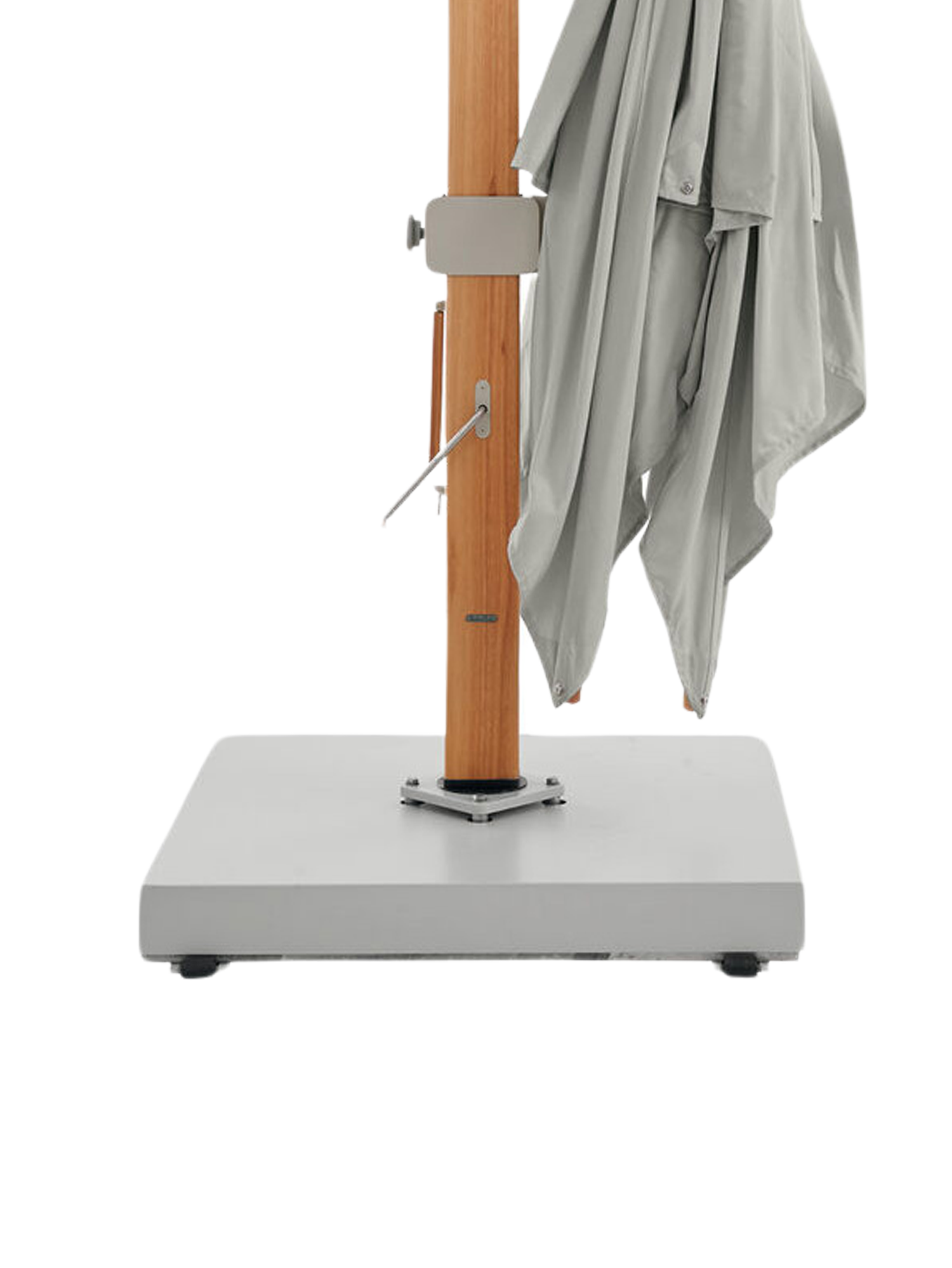 The square stand provides secure support for the Positano parasol. It is weighted with solid plates that are concealed under the covering.