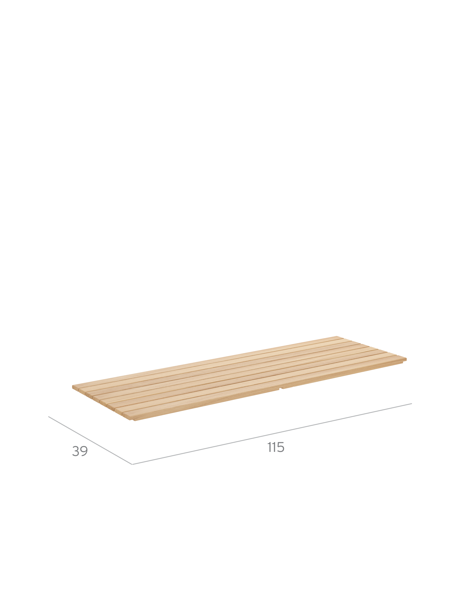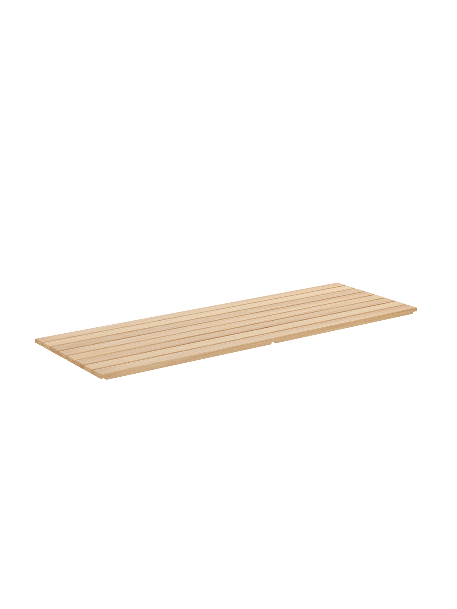 The shelf made of high-quality teak slats can be easily inserted into the frame of the rectangular shelving module of the Rana collection. Three shelves are required for the module. They are available as accessories in teak or ceramic and can be combined as desired.