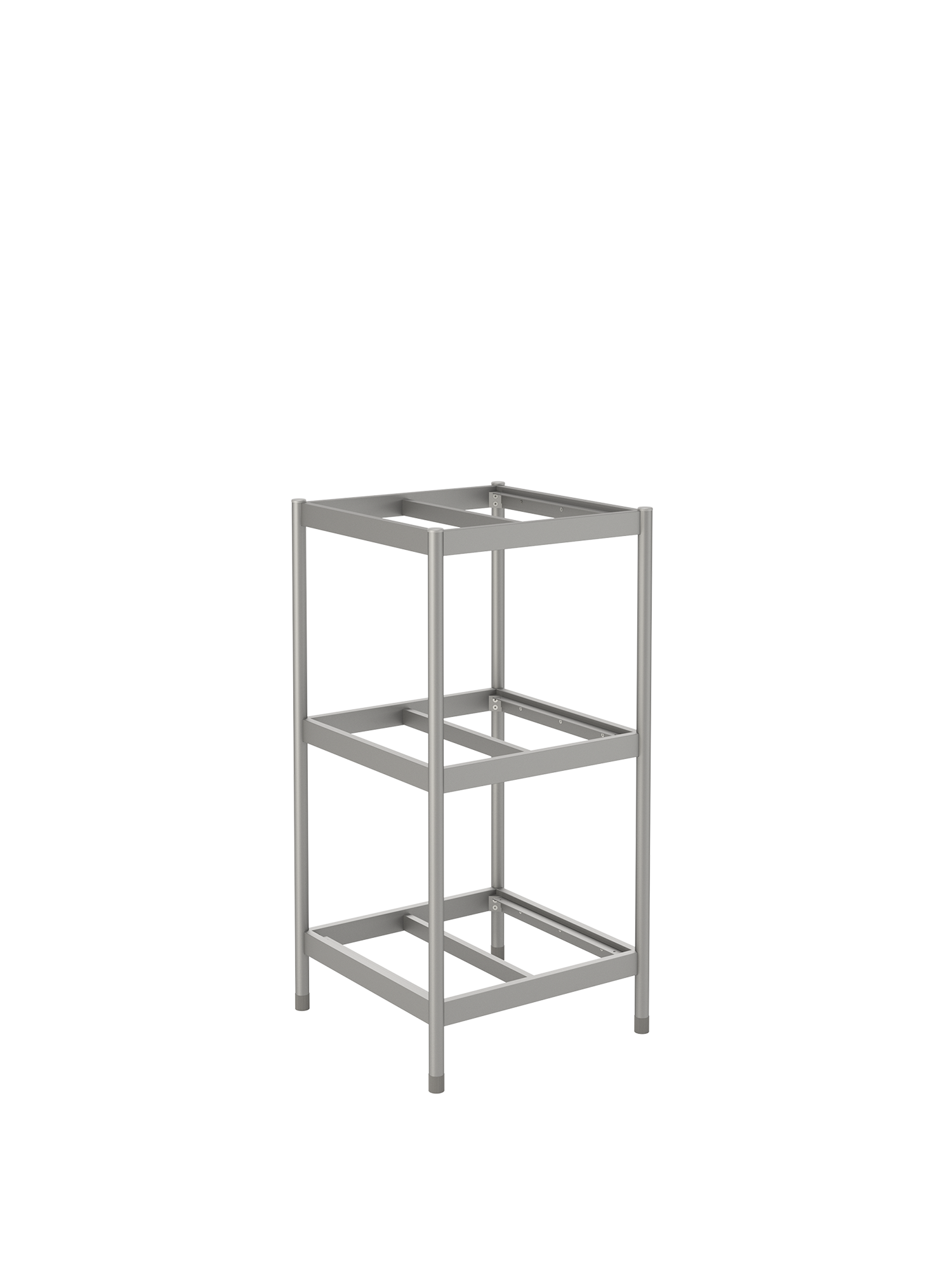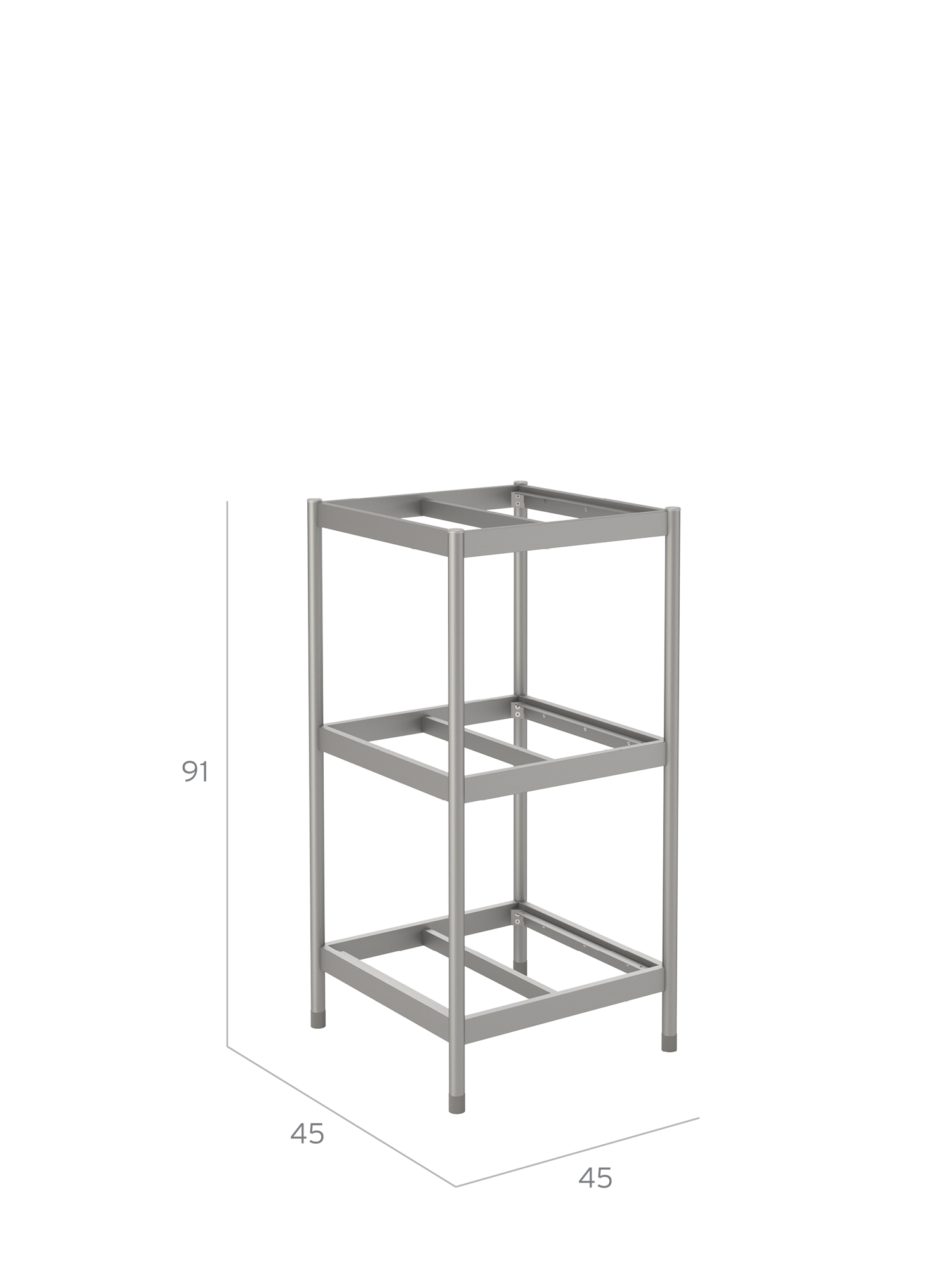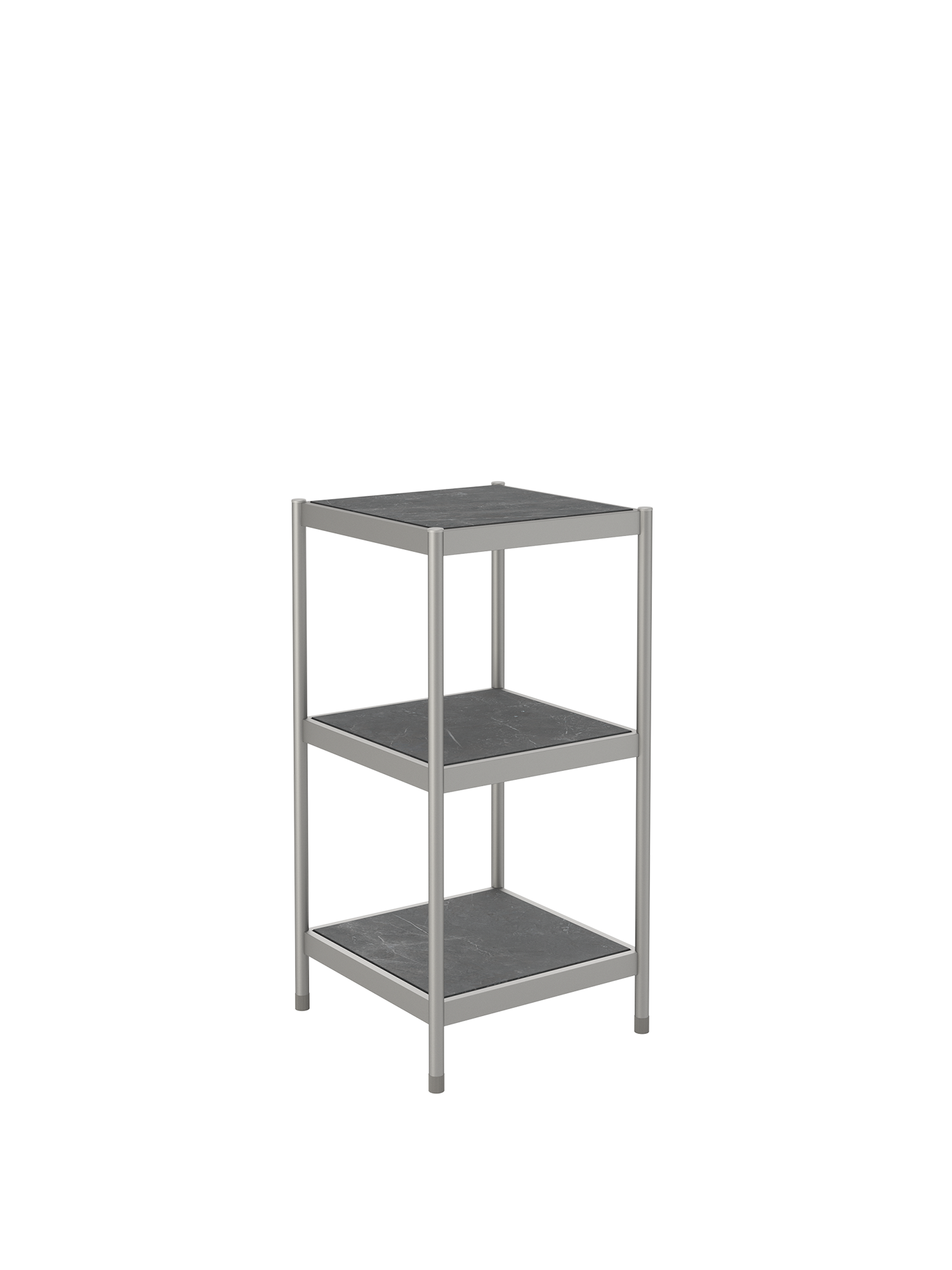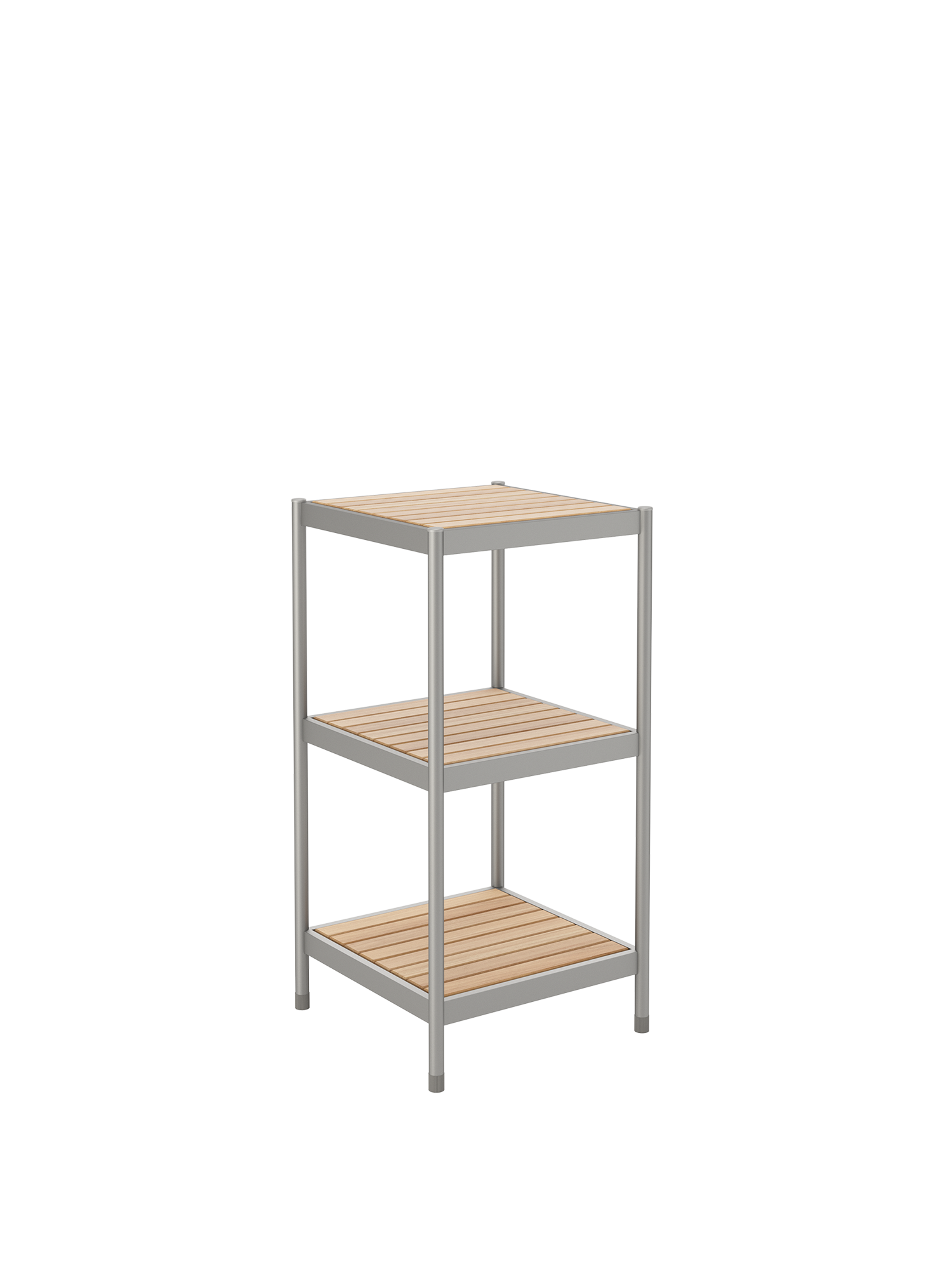 The weatherproof garden shelving module made of anodised aluminium blends harmoniously into any environment with its minimalist design and gently shifting colour nuances. As a solitaire, a slender element in a row or as a corner solution, it can be combined with other modules from the Rana collection, as desired. It offers practical storage space for crockery, accessories or utensils for the outdoor kitchen on three levels, with a choice of shelves in different materials. The shelves have to be ordered separately. Height adjusters on the legs level out any unevenness in the flooring.