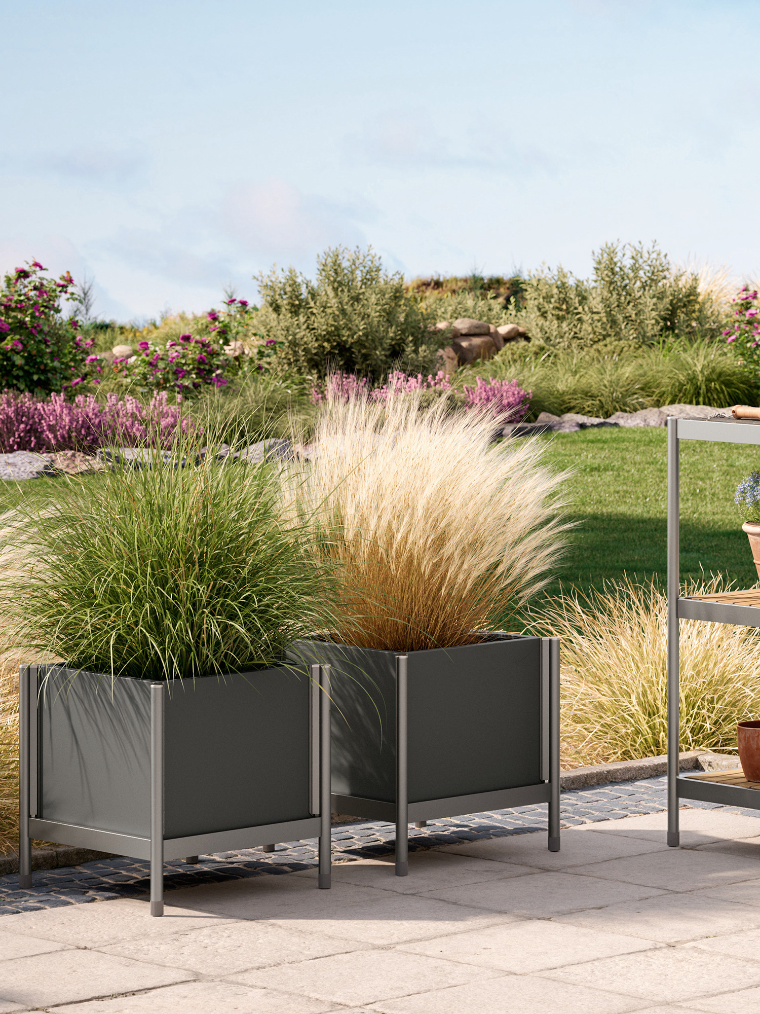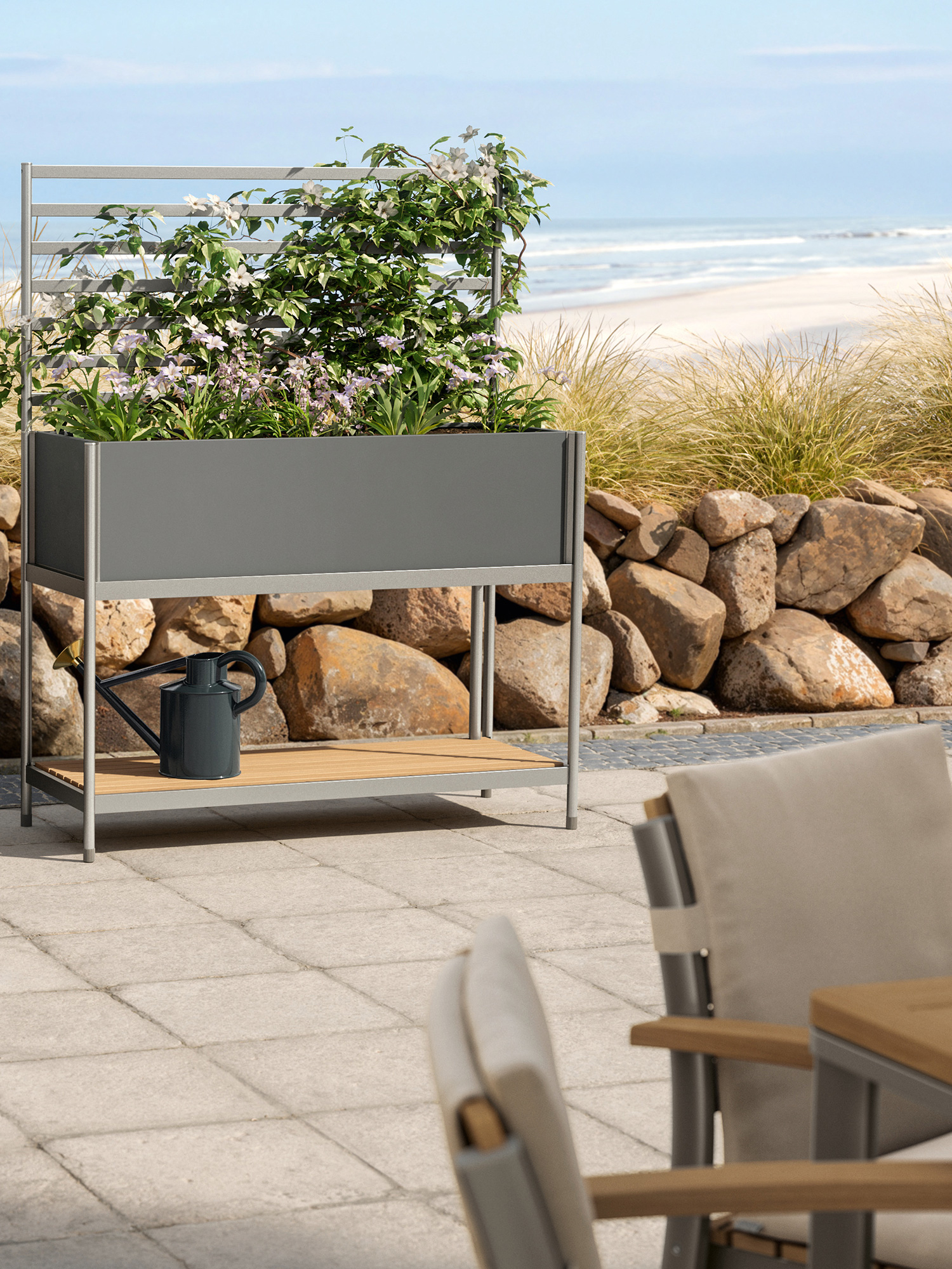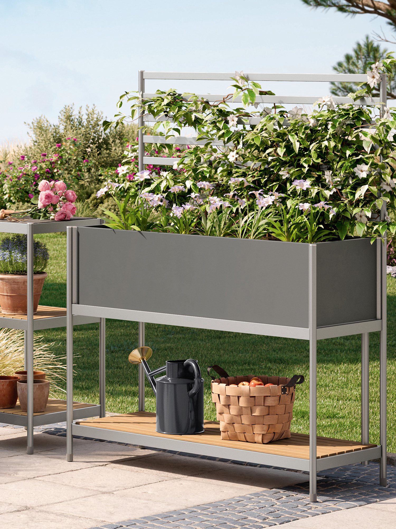 The modular Rana collection includes high-quality shelving modules in two sizes, a raised bed, and a planter of corresponding style. Perfectly designed, with coordinated dimensions and well thought-out functionality, the individual elements also complement each other as an ensemble, create useful storage space and form decorative arrangements.