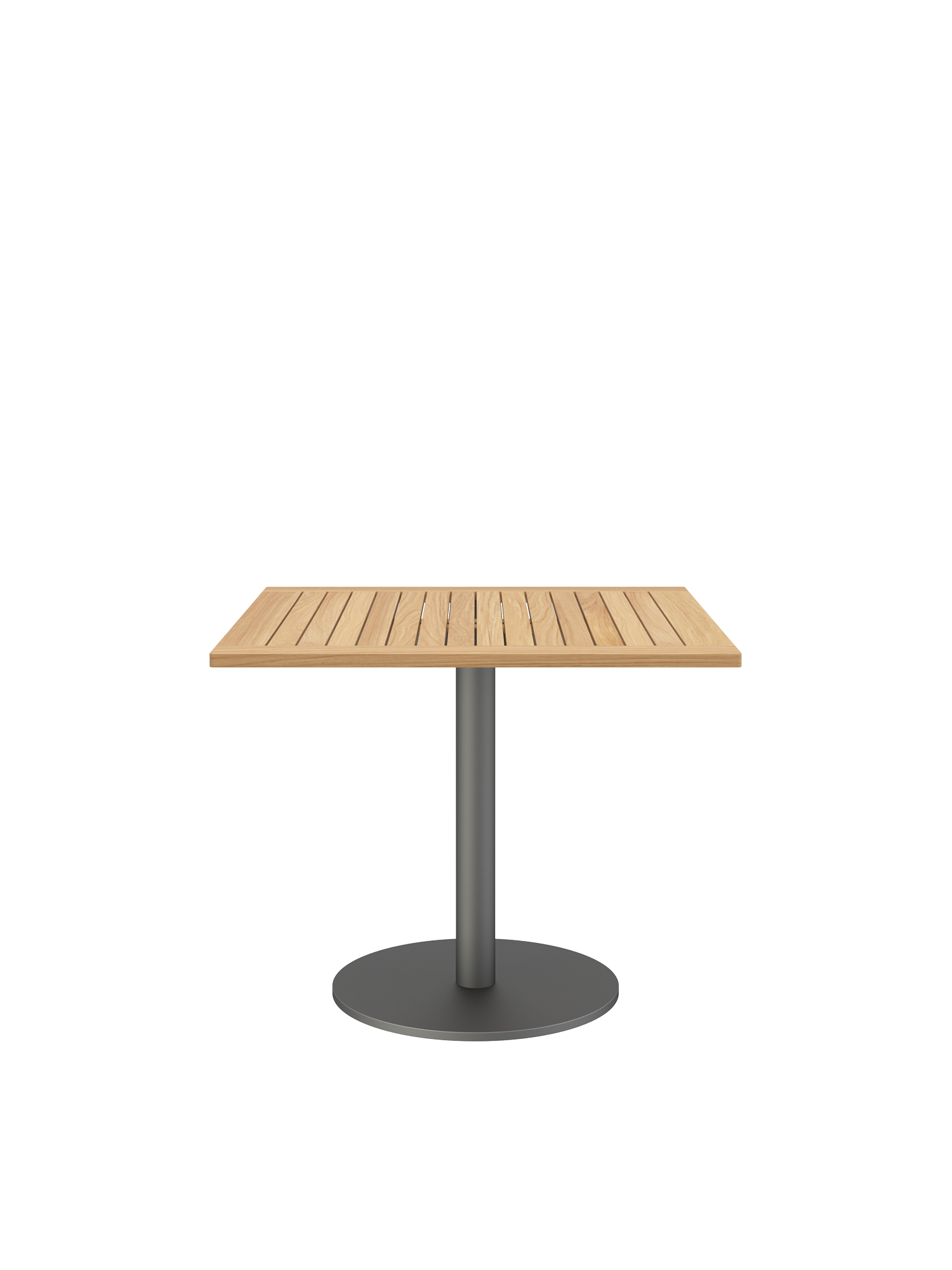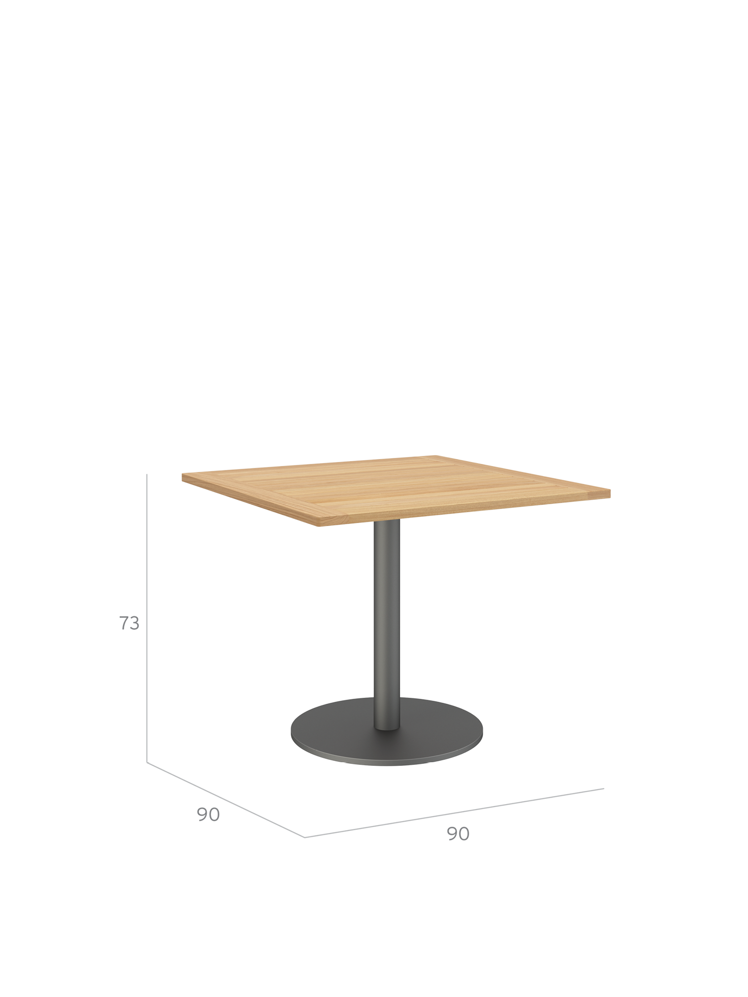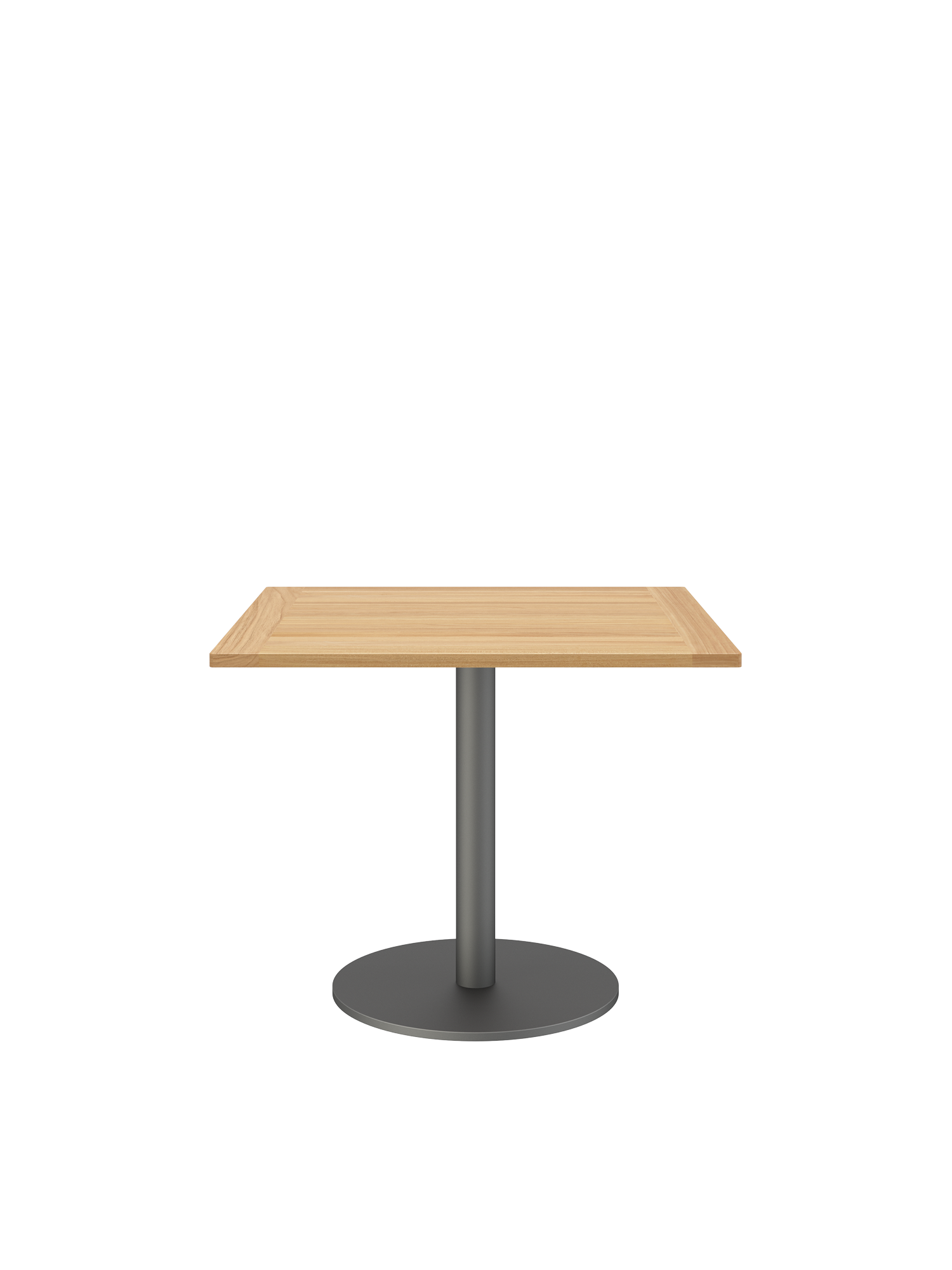 Ronda Single-Pedestal Table Graphite 90 x 90 with teak top