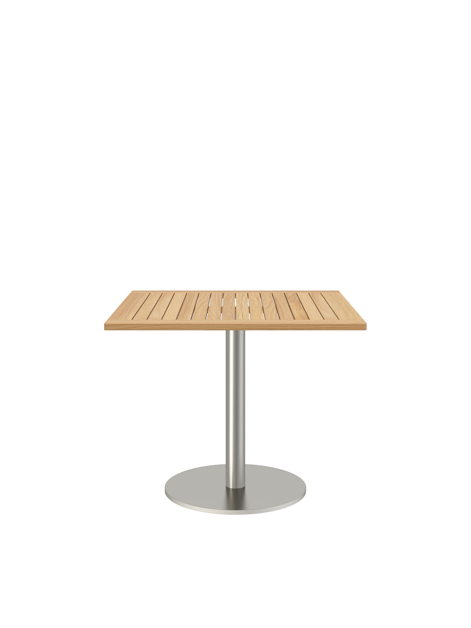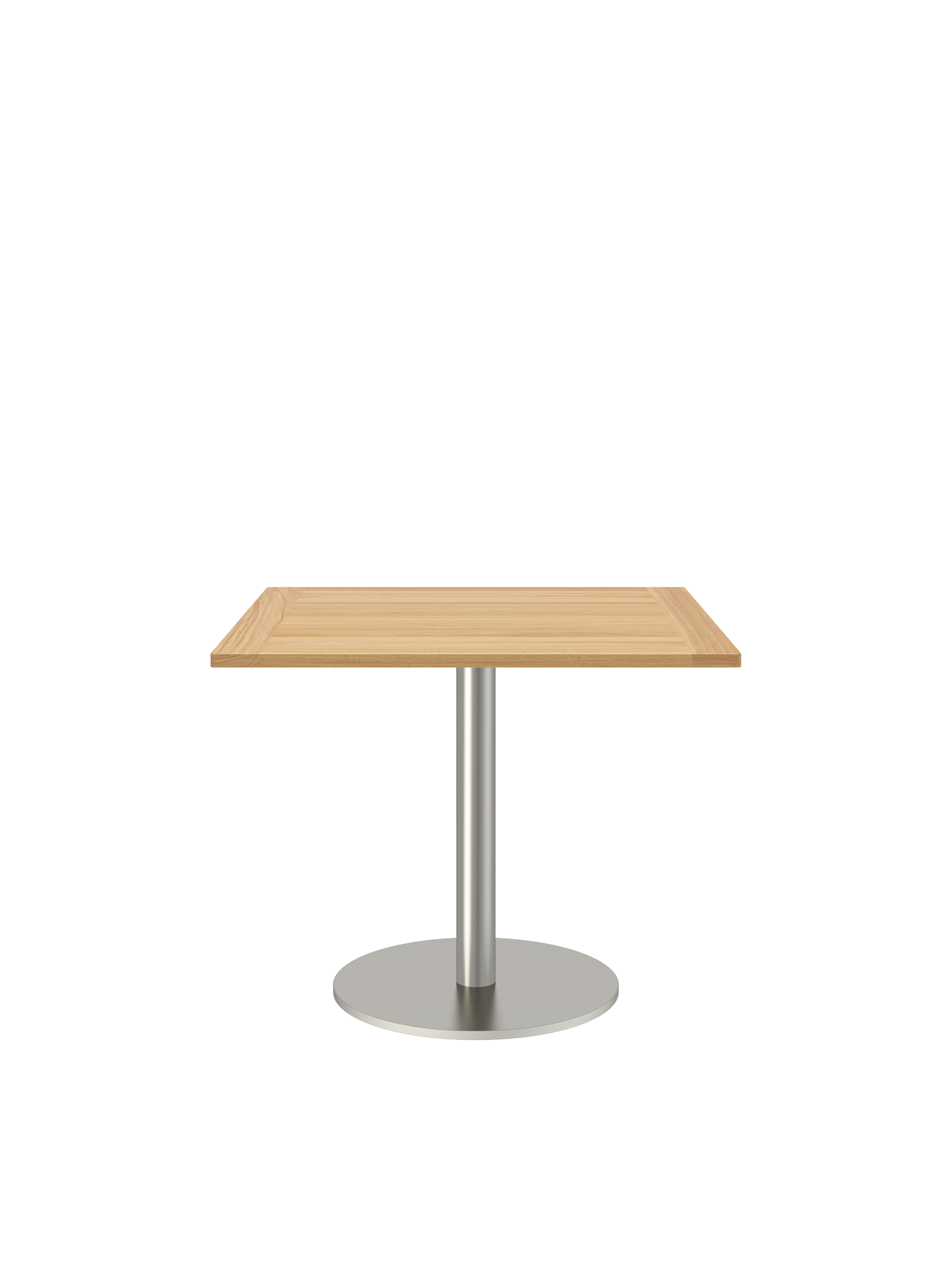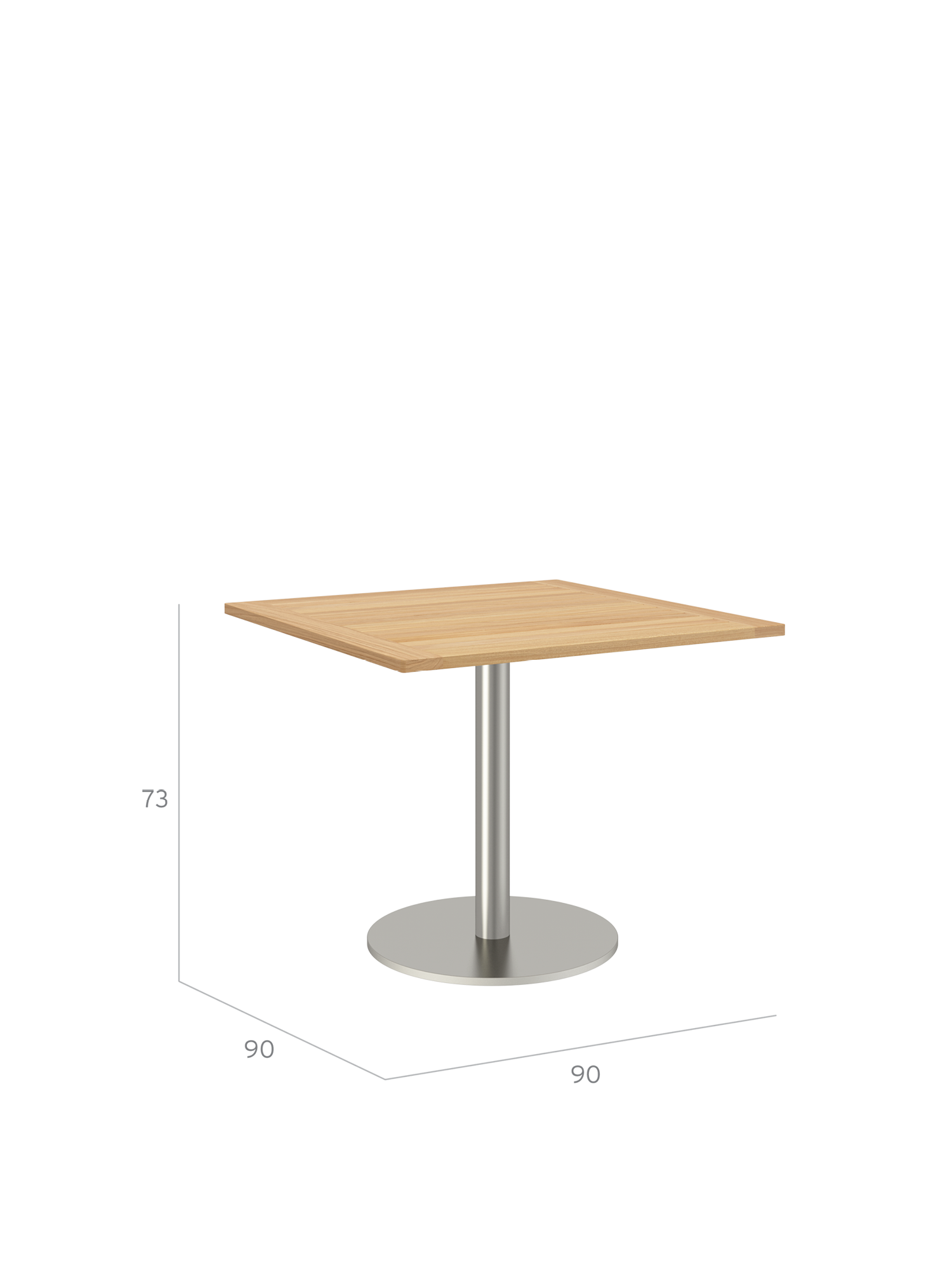 Ronda Single-Pedestal Table Stainless Steel 90 x 90 with teak top