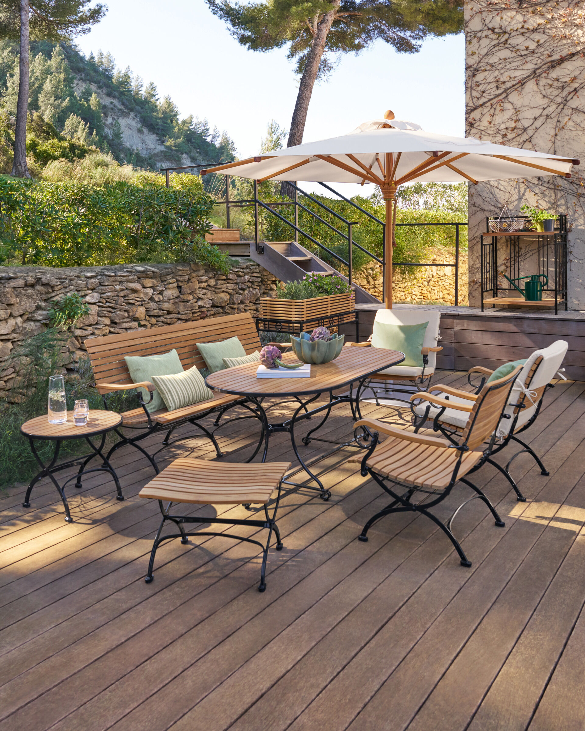 Teak is simply the best and the most endurable wood for furniture which is to remain outdoors indefinitely. It will withstand sun, rain, frost, and snow. Even after years outside in the open air, exposed to all elements, the wood remains stable and maintains its form, changing only in colour. It develops, over the course of time, a noble, silver-grey patina. Its natural beauty will endure for decades; without the help of chemicals. Anything made of teak is truly an heirloom.