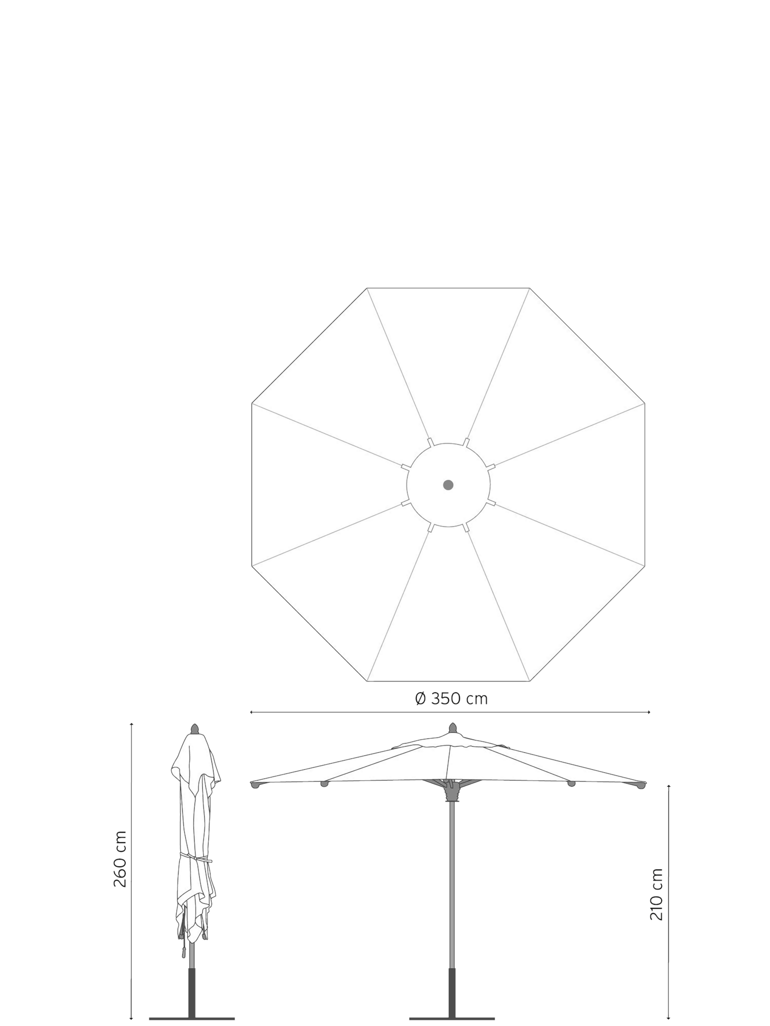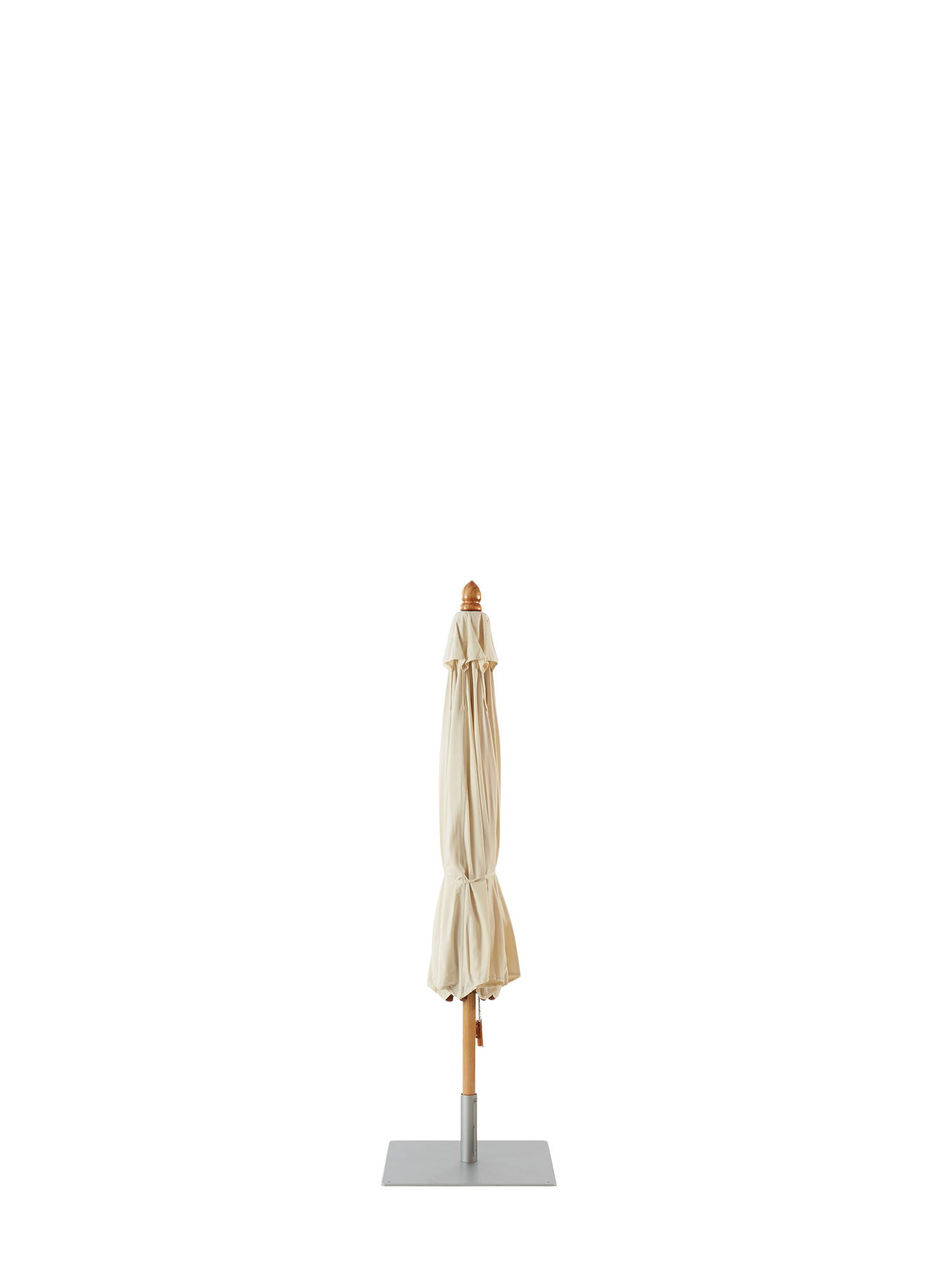 Each Umbria parasol is delivered with a protective polyacrylic cover, making sure the elements can do no harm. If it has already become wet, allow the lightly waterproofed canopy to dry thoroughly before the parasol is furled.
