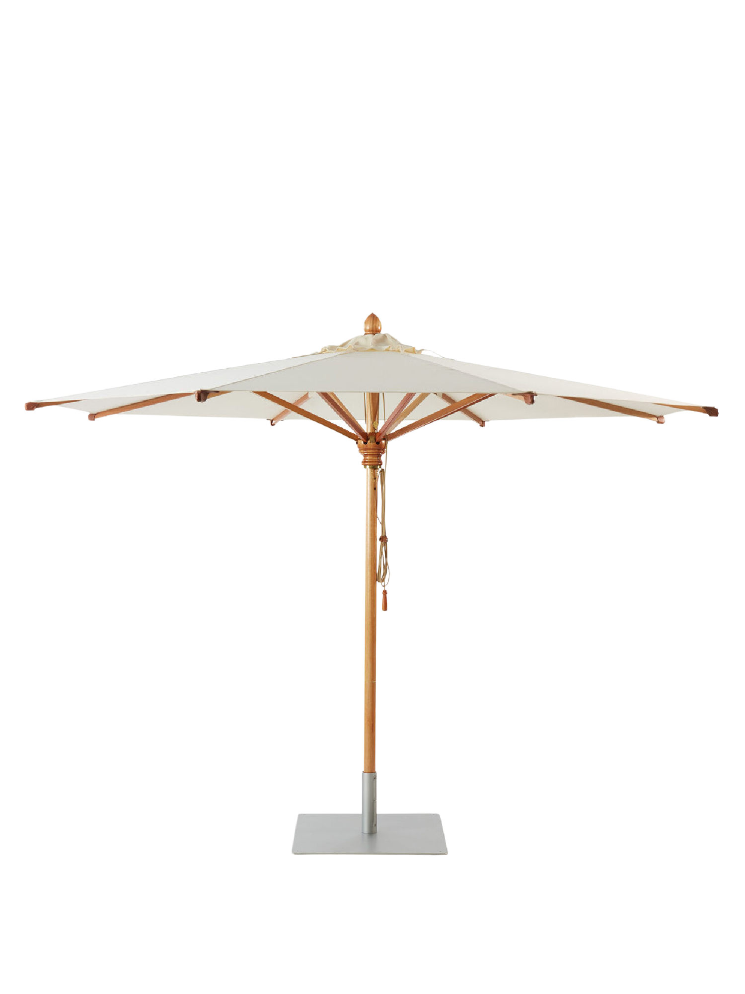 Umbria is available in three shapes and various sizes in the colour Ivory. Whether round, square or rectangular, the parasols are especially suitable for larger gatherings. Umbria harmonises with classic as well as modern furniture.