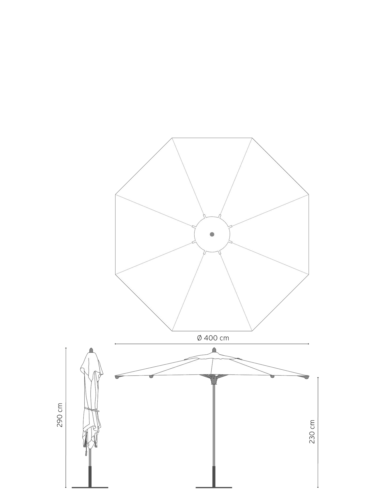 A double pulley makes opening easy, and guides the slider smoothly up the pole. We deliver each parasol with a protective cover of polyacrylic.