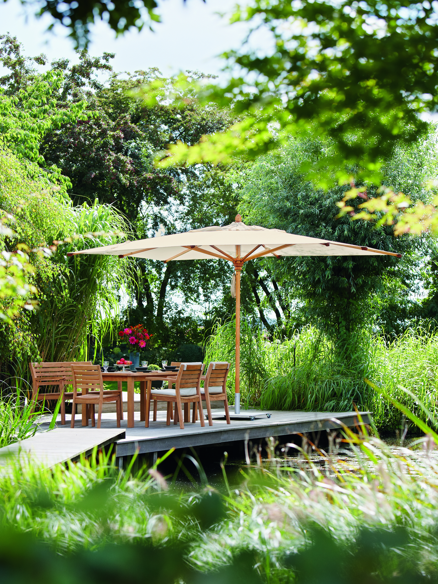 Umbria is available in many shapes and seven sizes. Whether round, square or rectangular, the parasols are suitable for specially large gatherings.