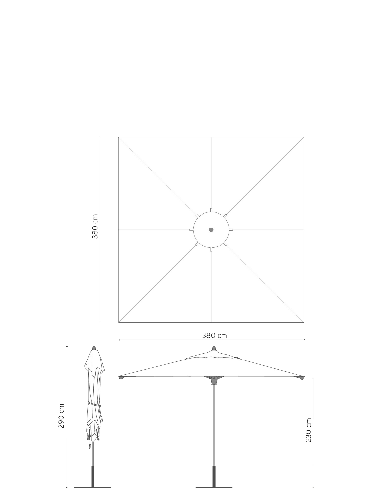 A double pulley makes opening easy, and guides the slider smoothly up the pole. We deliver each parasol with a protective cover of polyacrylic.