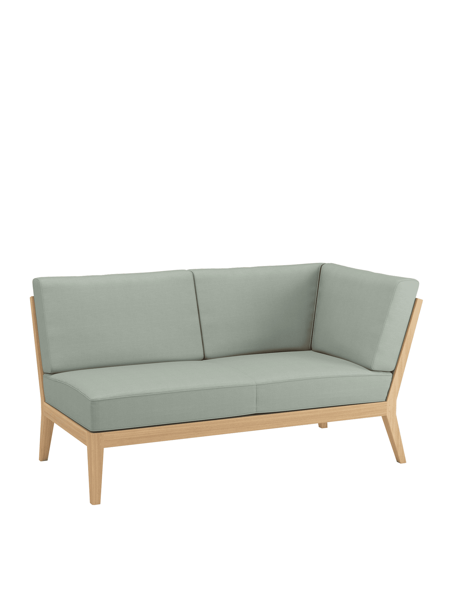 At the side of the pool or edge of the terrace, on a city balcony or in the middle of the garden: the elements of the Valencia lounge furniture create an oasis of tranquillity in every airy location of adequate size. Extra wide and especially deep, chaise longues, middle elements and corner modules made of teak with angled legs, and transversely aligned seat and backrest slats, offer plenty of space for relaxing. Thick upholstery with welted seams and feather cushions in fresh colours set summery accents.