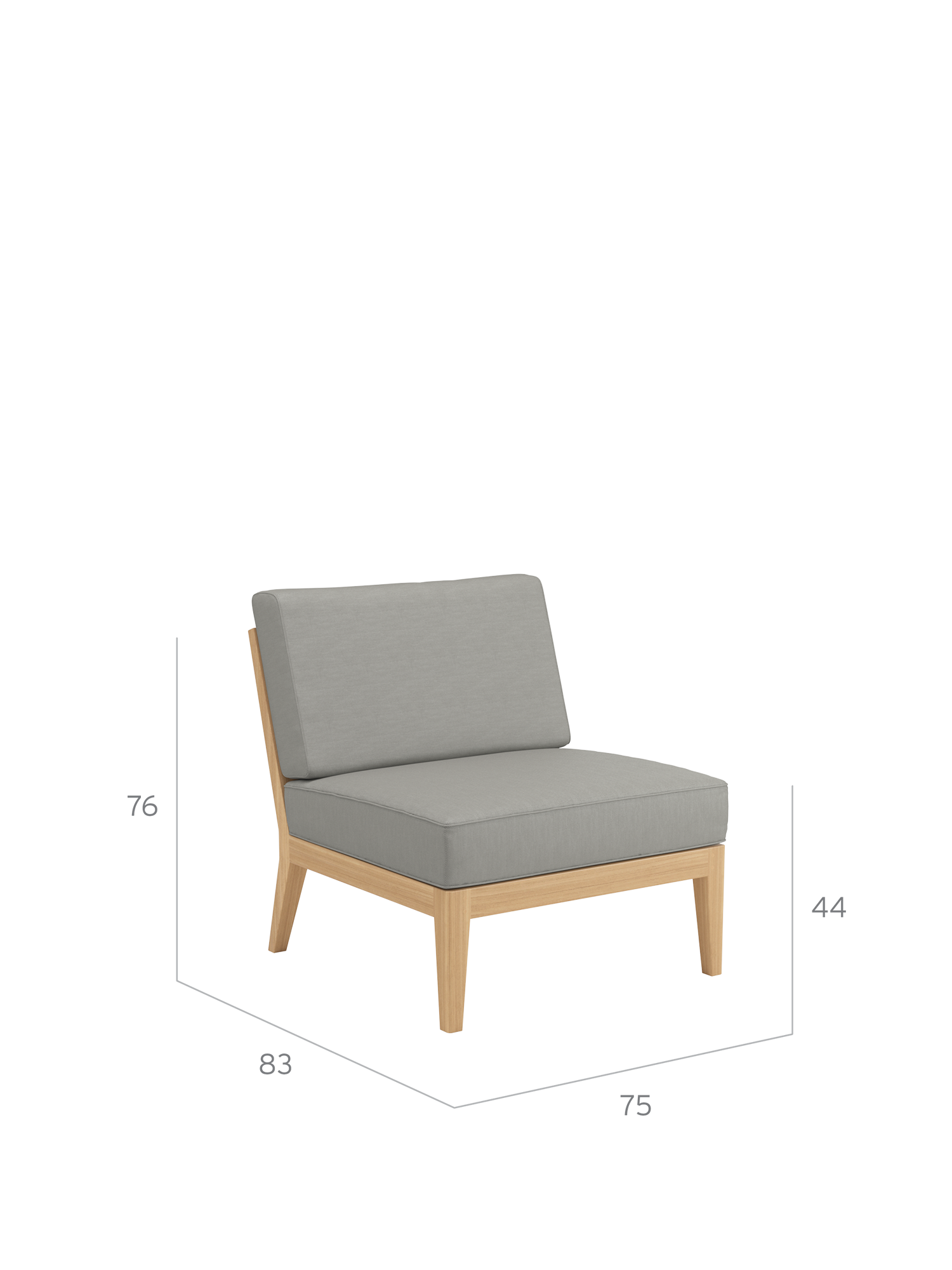 Please note: large lounge furniture can be ordered only with the matching cushions. In this case, the product is the Valencia Lounge middle Element with cushions in the Stone design.