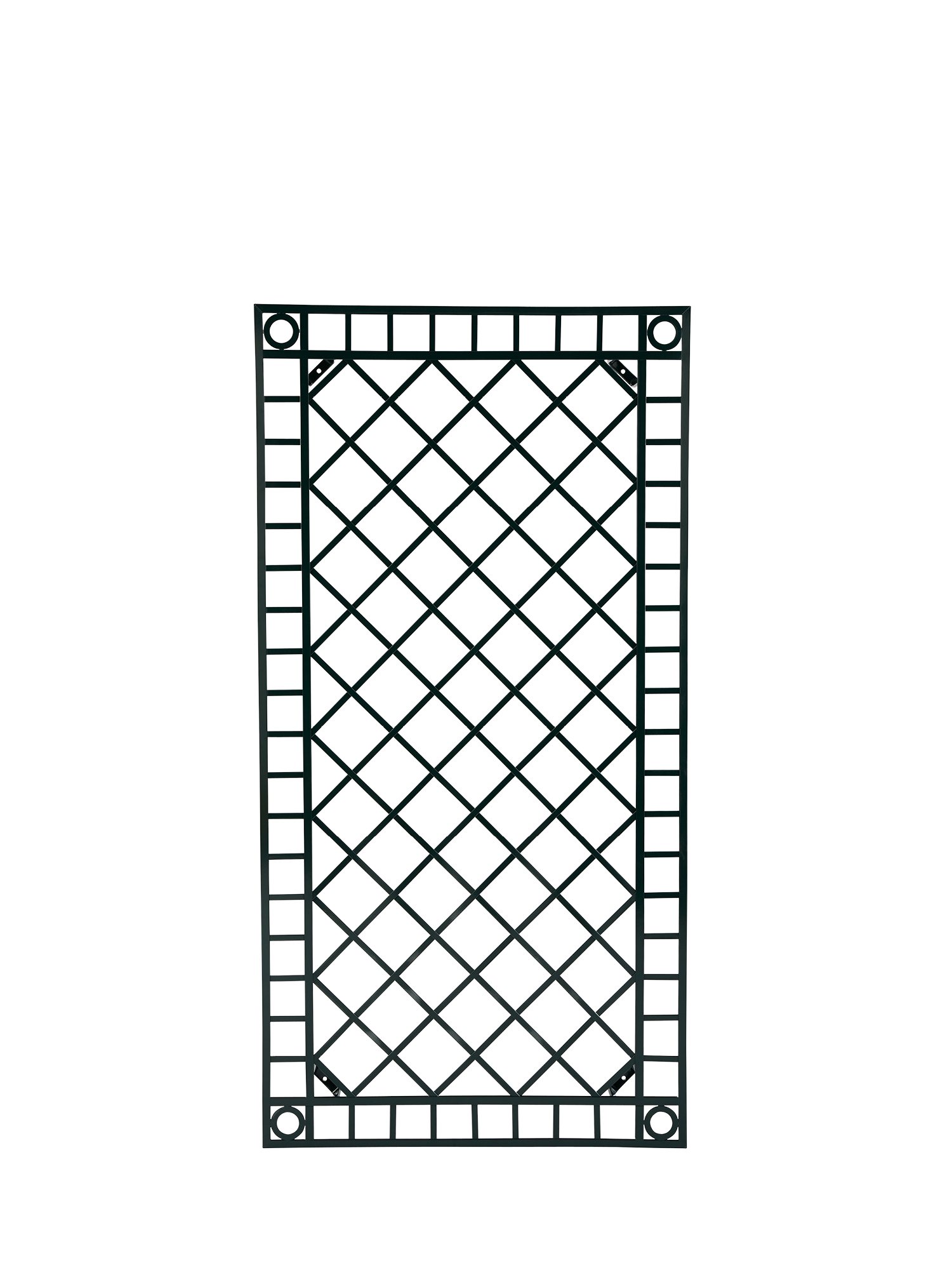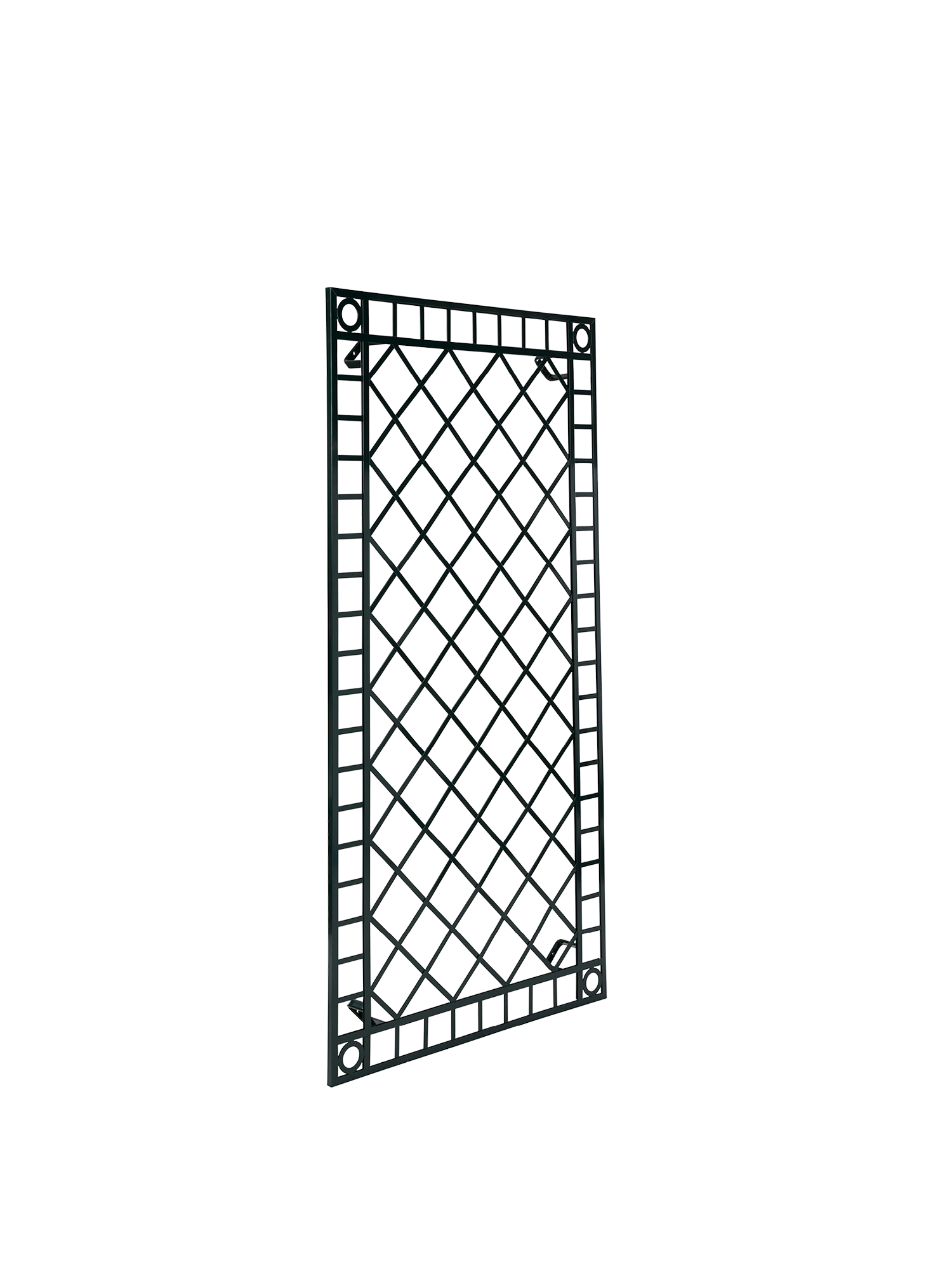 An elegant plant support to beautify a wall. The wall trellis is of weatherproof aluminium with dark green powder-coating. Strong mounting at the back ensures the right distance from the wall, providing the plant with air as well as grip. The trellises are available in two widths. Please note that mounting cannot be undertaken by our forwarding agent.